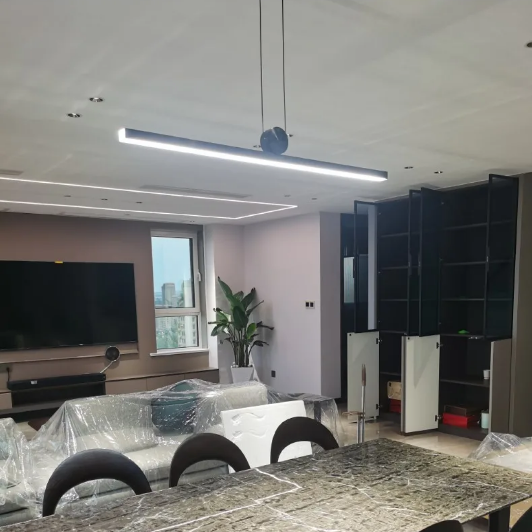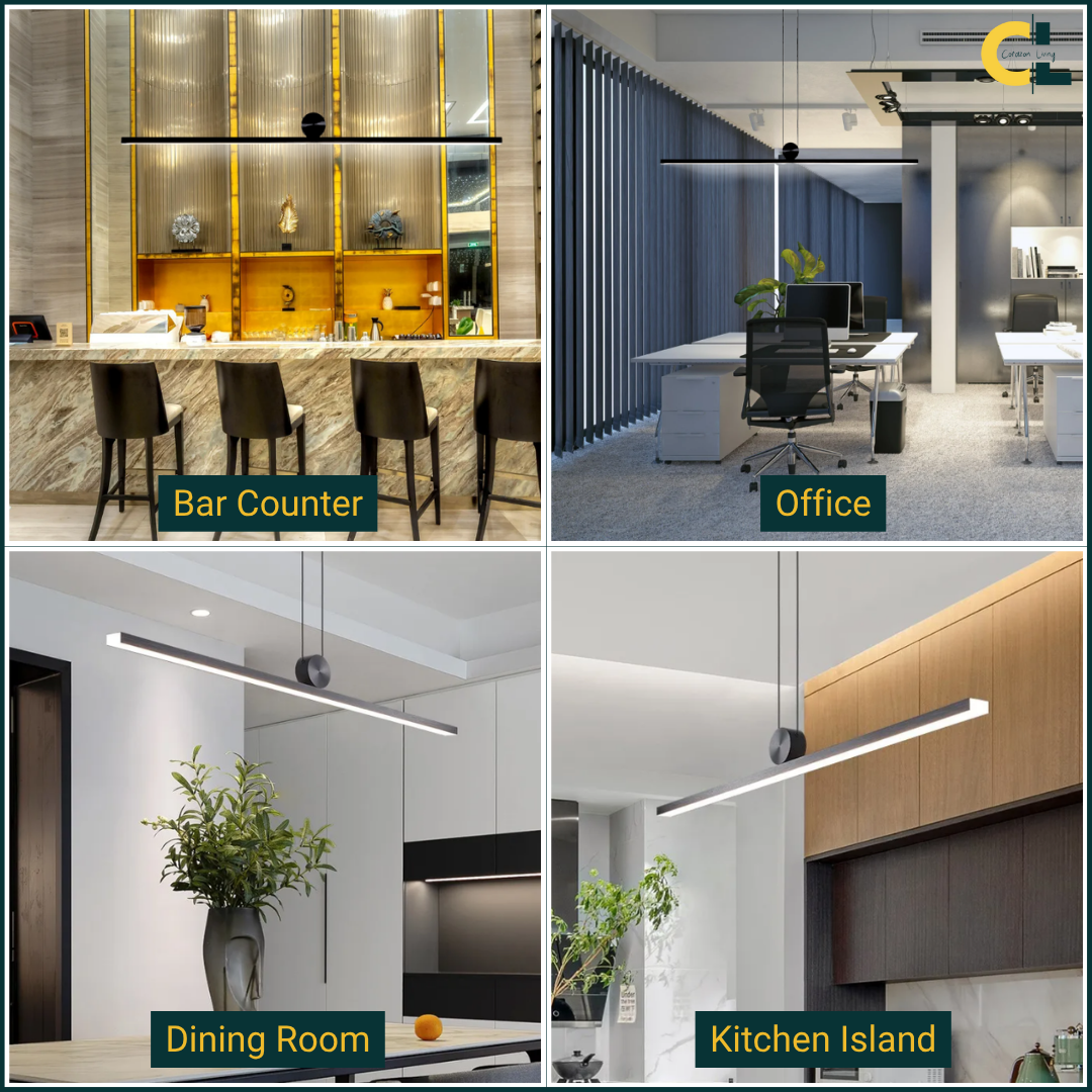 Long Strip Pendant – Perfect for elongating spaces and creating linear lighting effects.