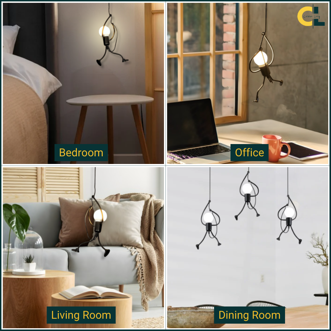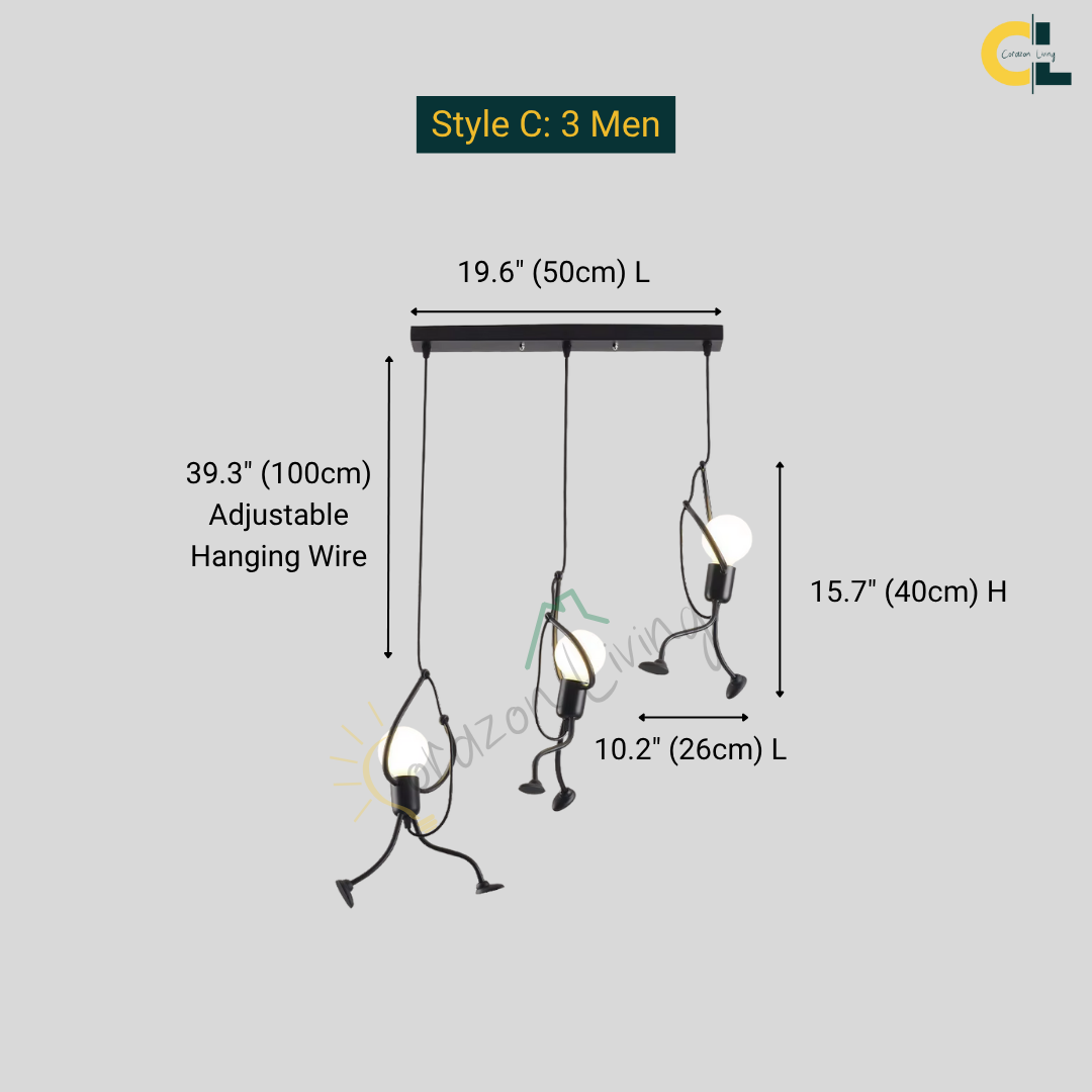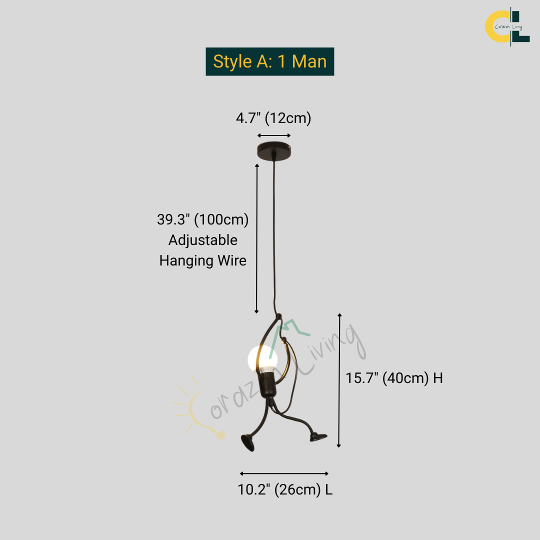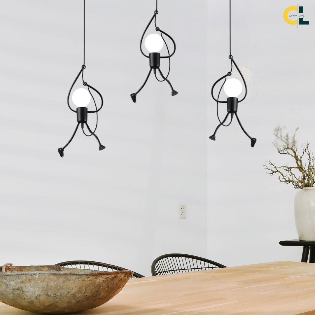 Add a touch of creativity and charm to any space with the Artilux E27 Little Man Hanging Lamp, a playful yet stylish iron swing pendant light designed to captivate both kids and adults. Featuring a cartoon-inspired climbing man or robot figure, this combines vintage and retro aesthetics with modern creativity. Crafted from durable iron, it's ideal for children’s rooms, study areas, restaurants, cafes, bars, clothing stores, or dining spaces. Compatible with standard E27 bulbs, this pendant lamp offers functional lighting while serving as a fun and eye-catching decor piece.