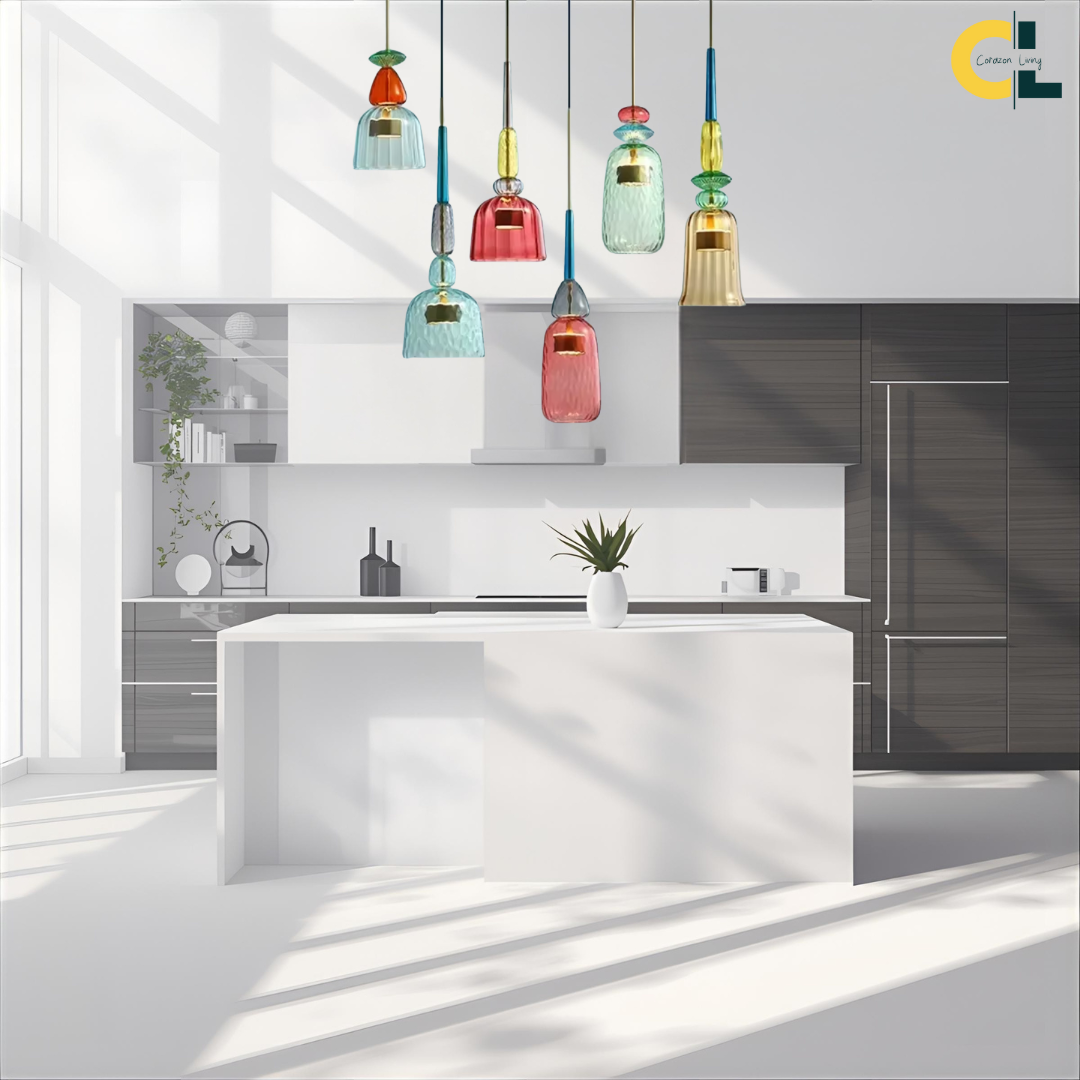Modern Nordic design with colorful glass shades