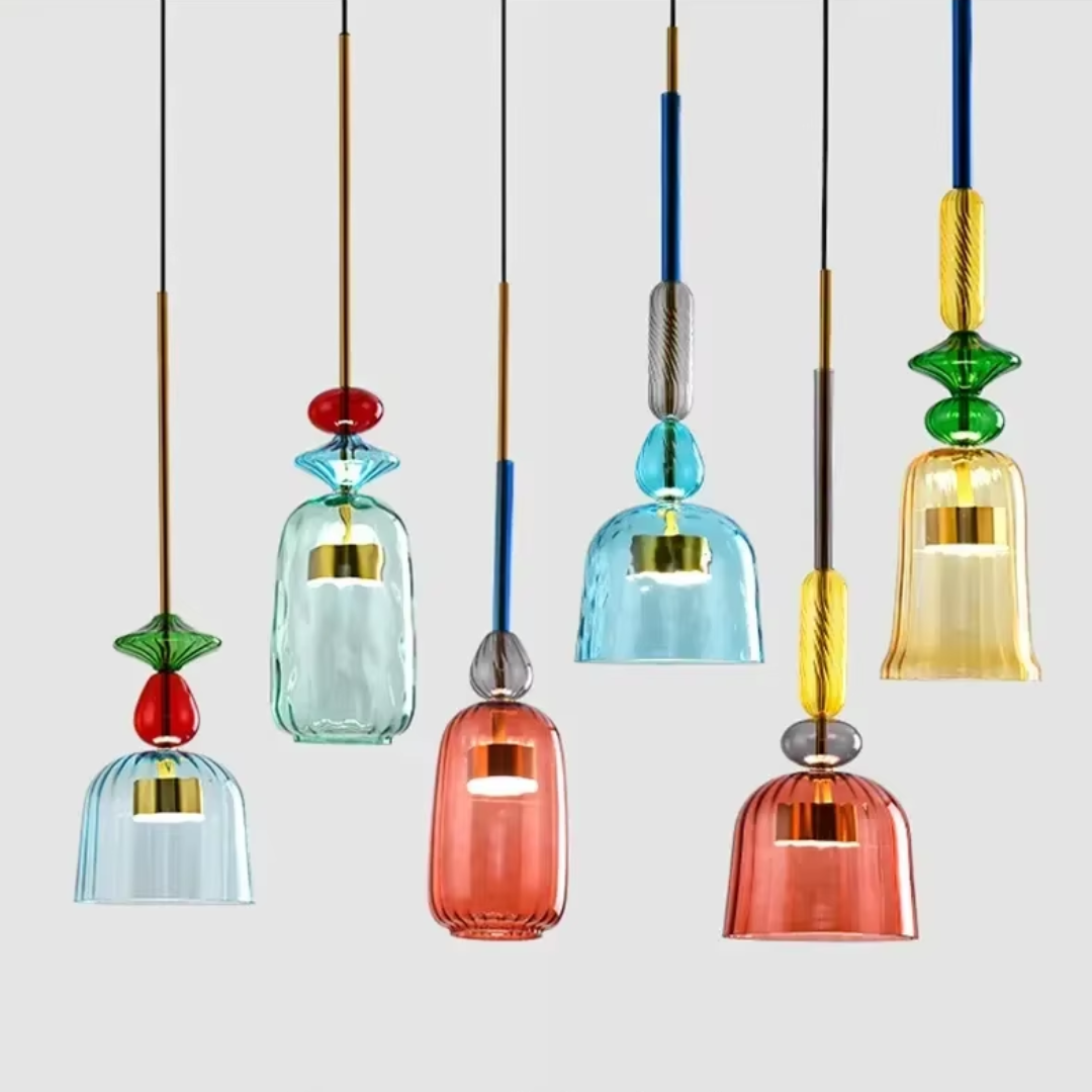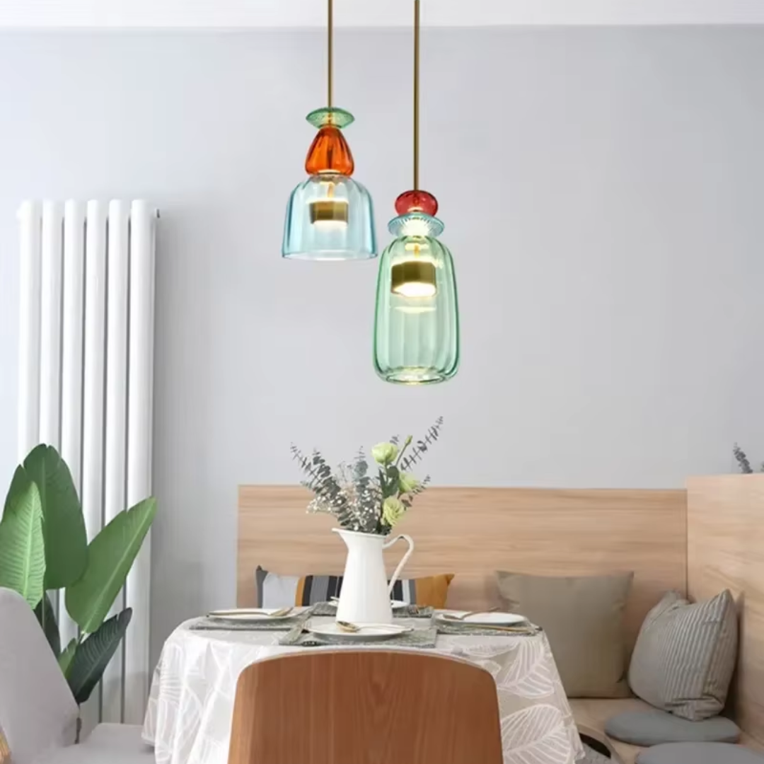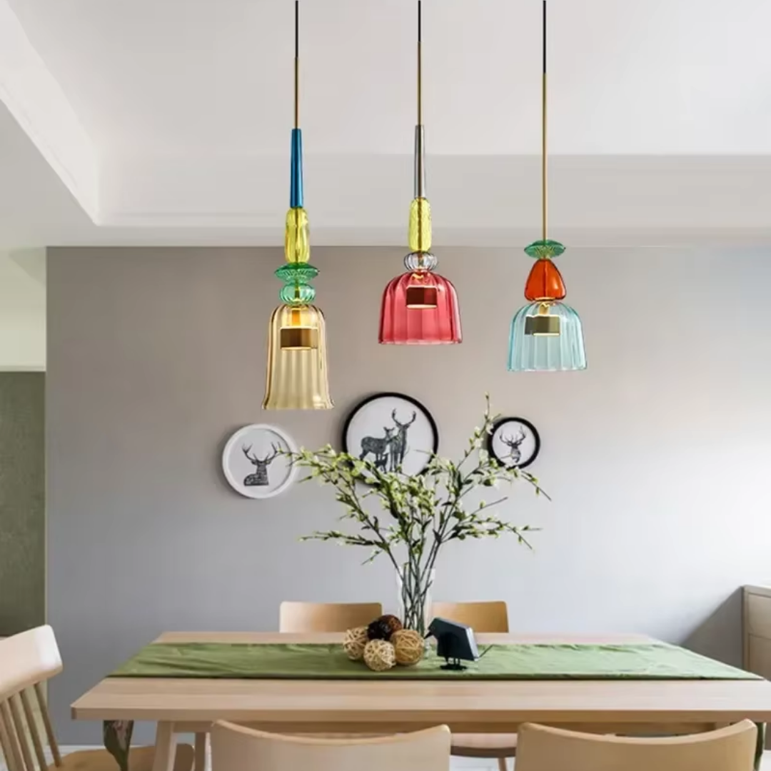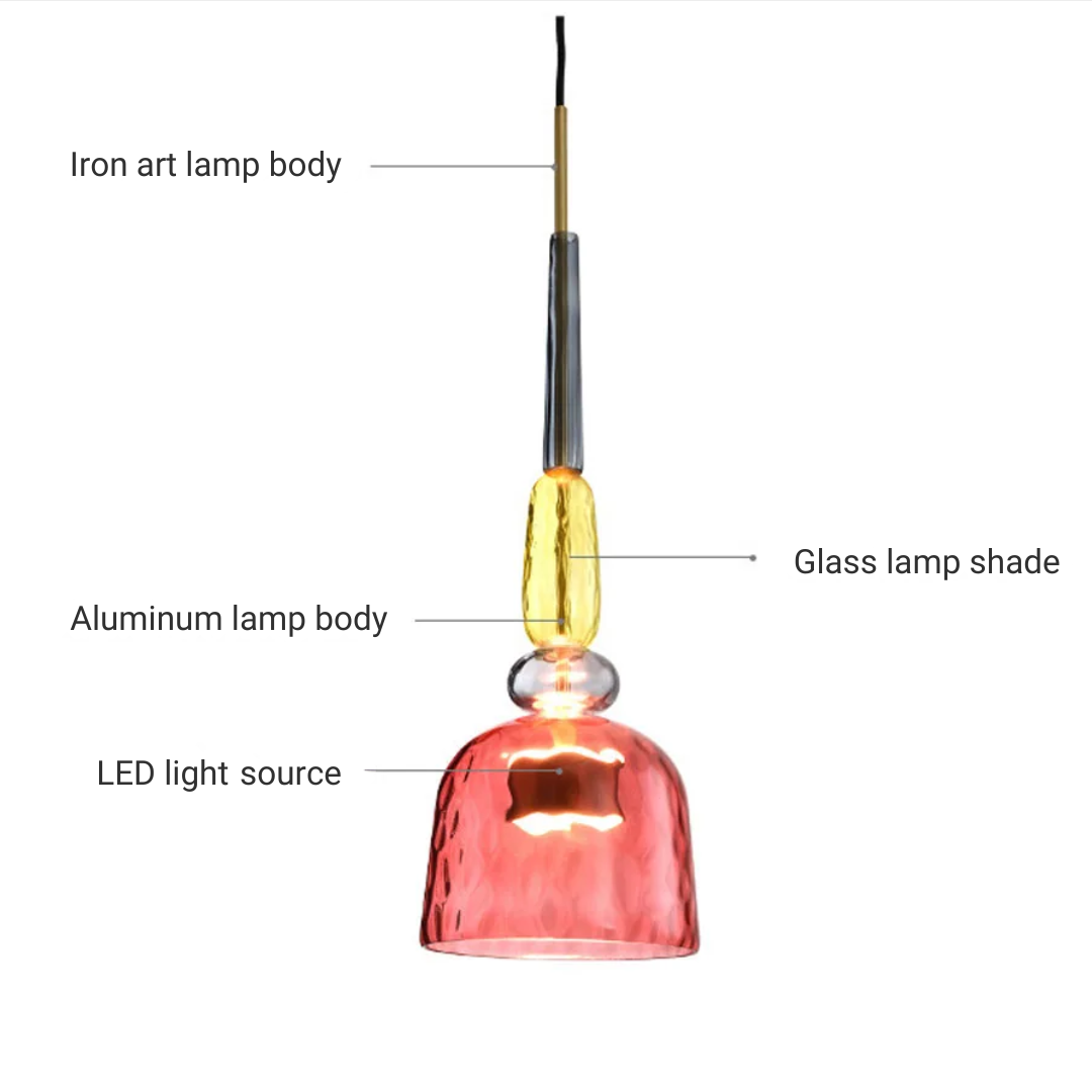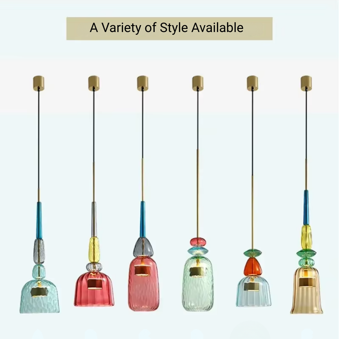 Brighten your interiors with the Bellara Post Modern LED Colorful Glass Pendant Light, a playful yet elegant lighting solution that brings color and style to any space. Designed with a Nordic-inspired macaron aesthetic, this pendant lamp is available in six unique styles with vibrant candy-colored glass shades, perfect for creating a lively and inviting atmosphere. Ideal for kitchens, dining room islands, restaurants, cafes, or bedrooms, the Bellara pendant combines modern design with energy-efficient LED lighting for long-lasting performance. Elevate your home or commercial space with a statement chandelier that balances fun, sophistication, and functionality.