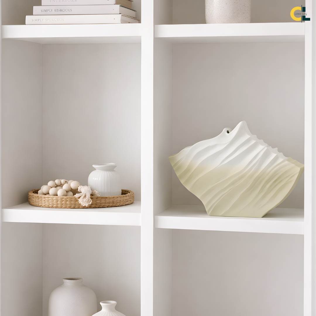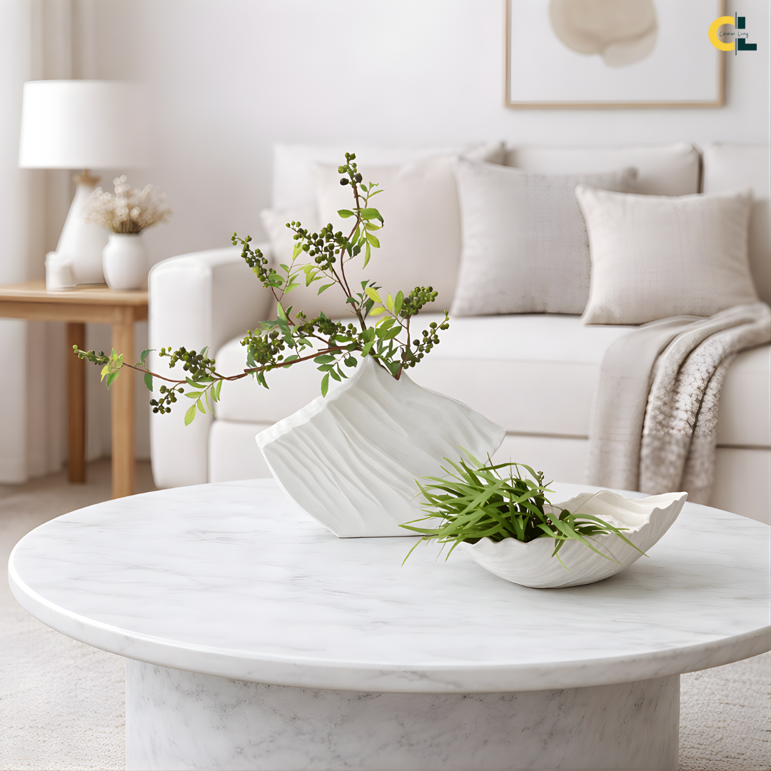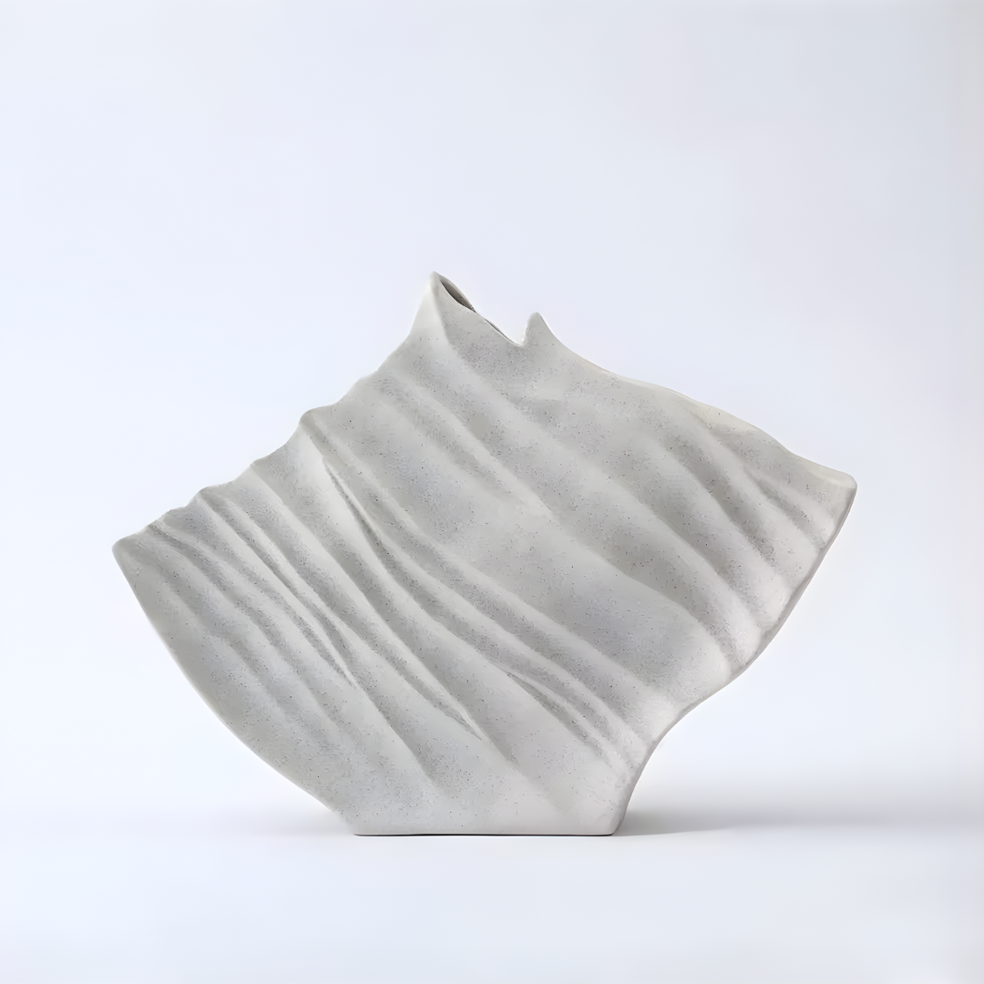 Blythe is a Nordic modern ceramic flower vase with a sculptural, folded silhouette that brings calm texture to your space. The matte white finish keeps the look clean and refined, while the rippled form adds depth that feels quiet, not busy.