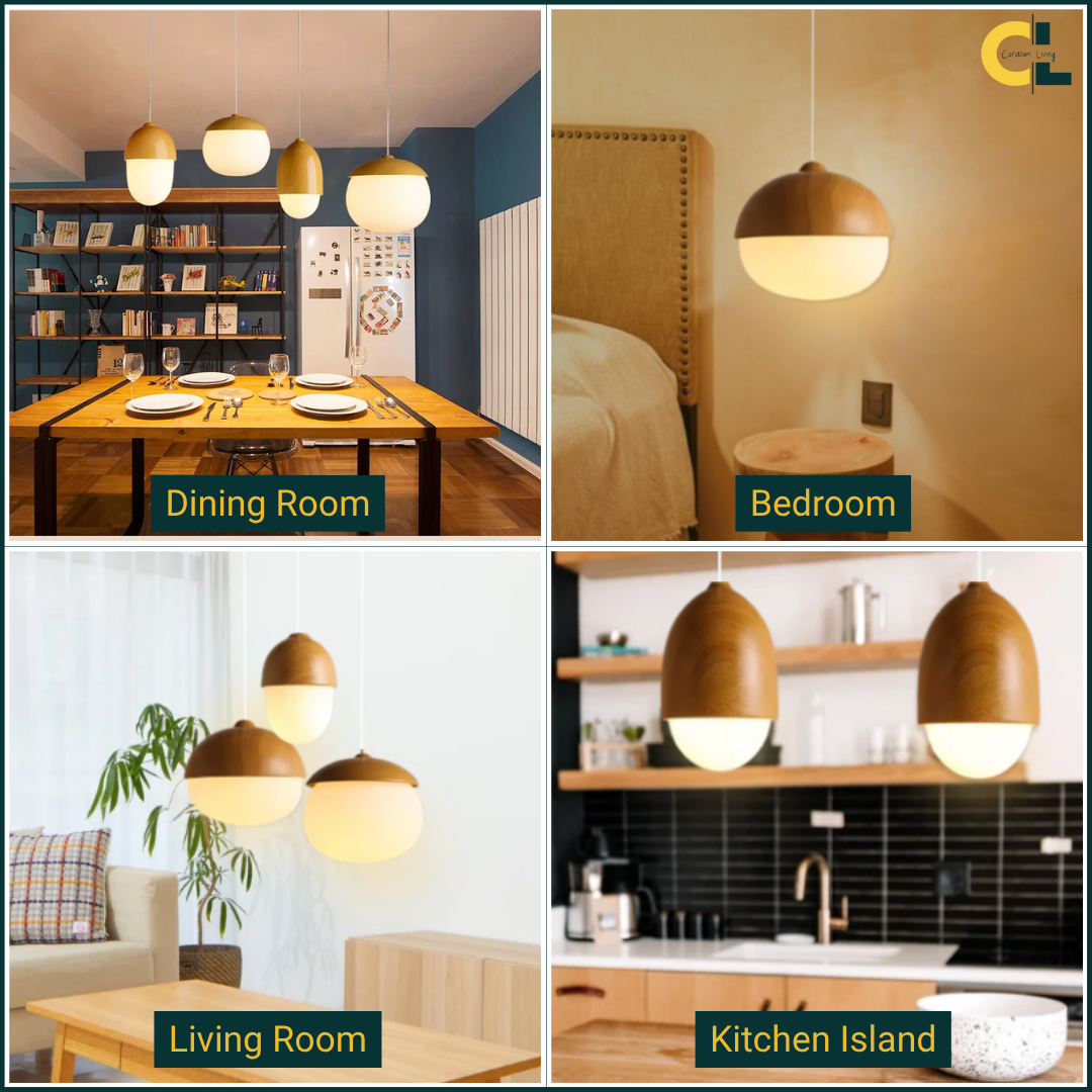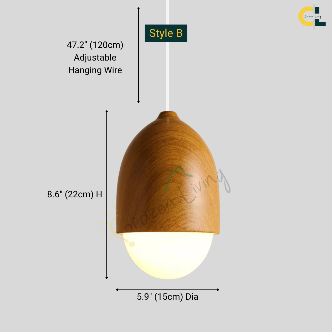 Bring warmth and natural elegance into your interior with this Borken Nut-Inspired Nordic Glass Pendant Light, featuring a rounded glass diffuser and wood grain finish. Perfectly suited for dining rooms, kitchens, living rooms, bedrooms, or modern cafes, this pendant light blends minimalist design with organic charm. The soft glow from the frosted glass shade adds cozy ambiance, while the E27 socket allows for flexible bulb options to suit your lighting needs.