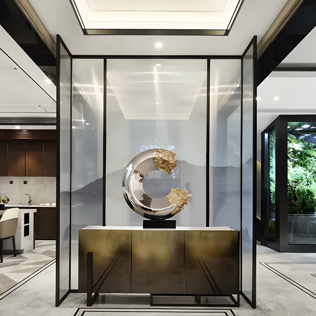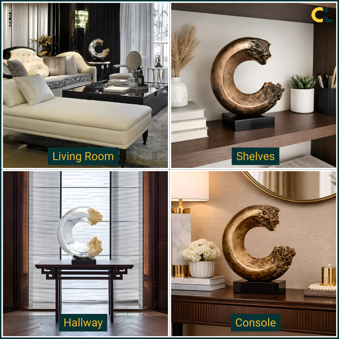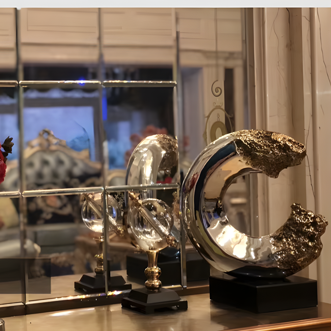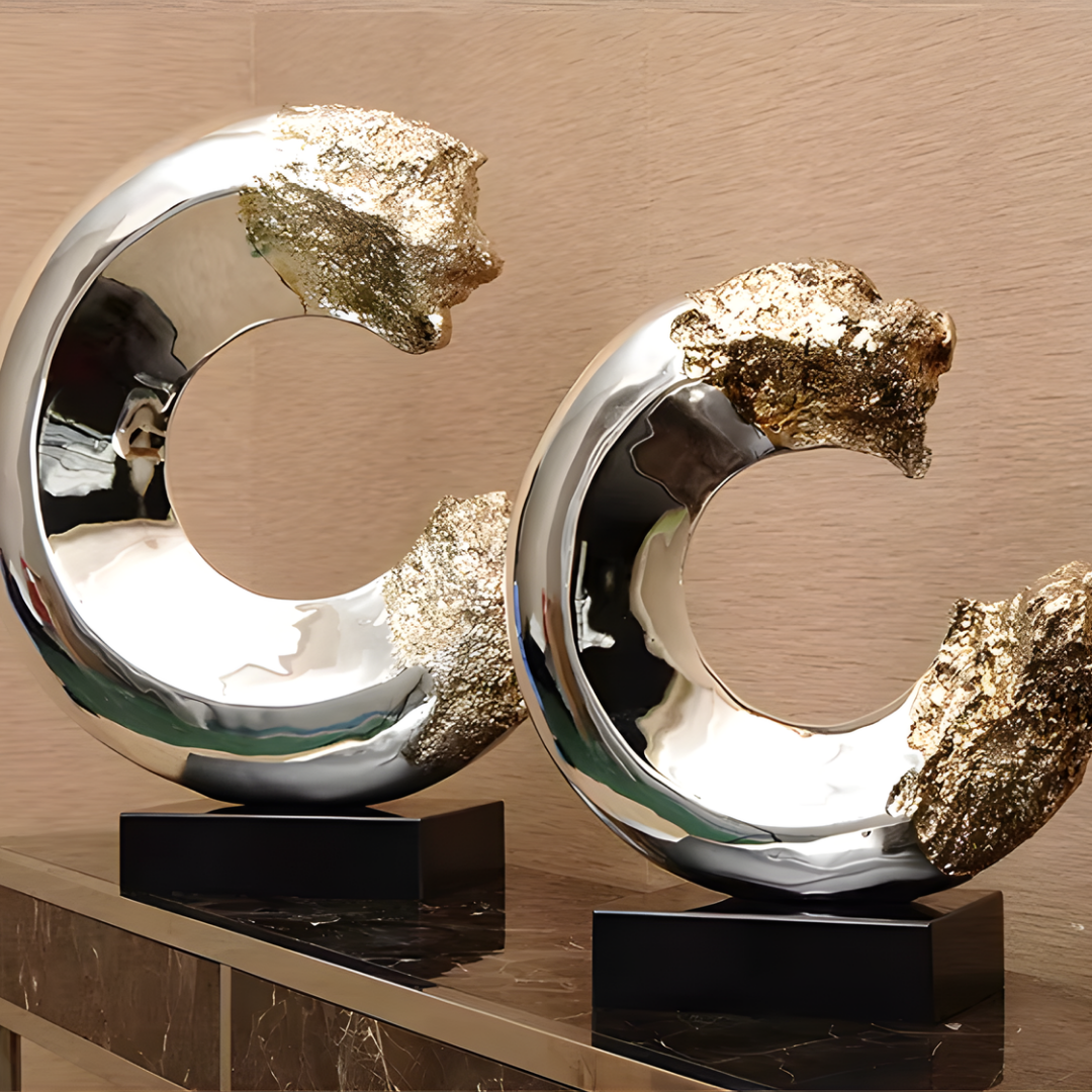 Made from eco-friendly resin and finished with an electroplated metallic sheen, Caspian reflects light with a soft glow that elevates consoles, shelves, desks, and entryway styling. It’s an easy statement piece for modern home decor, luxury office decor, and hotel lobby decor where you want impact without excess.
