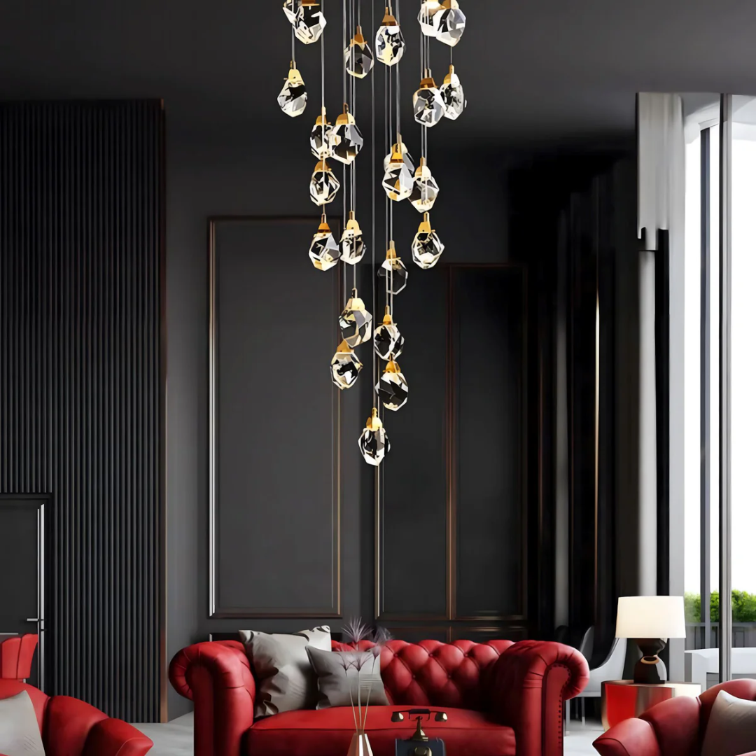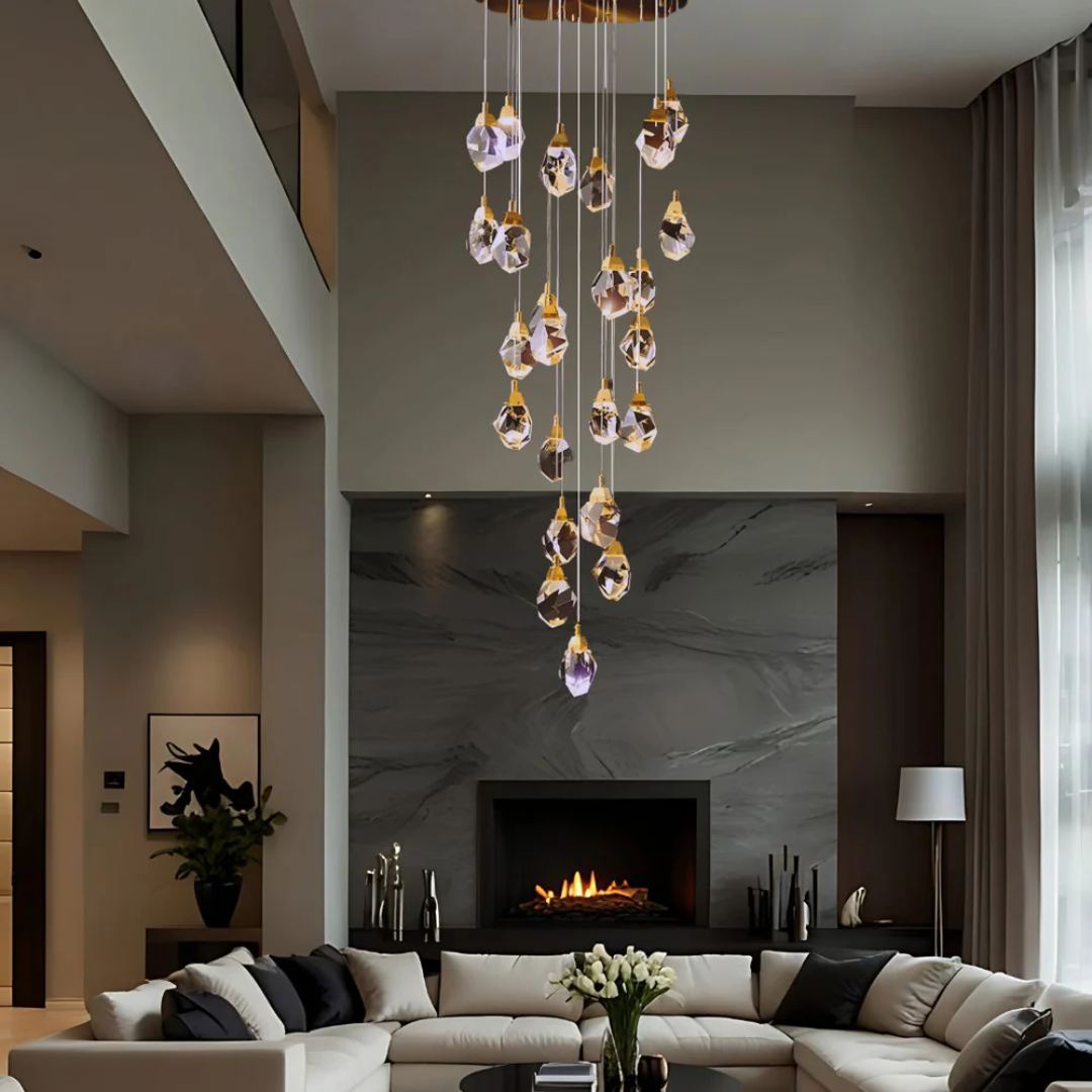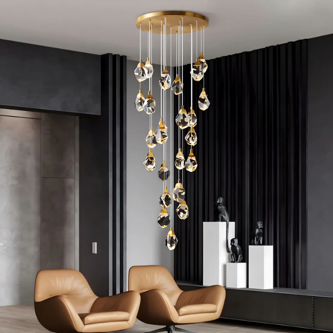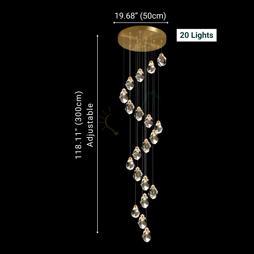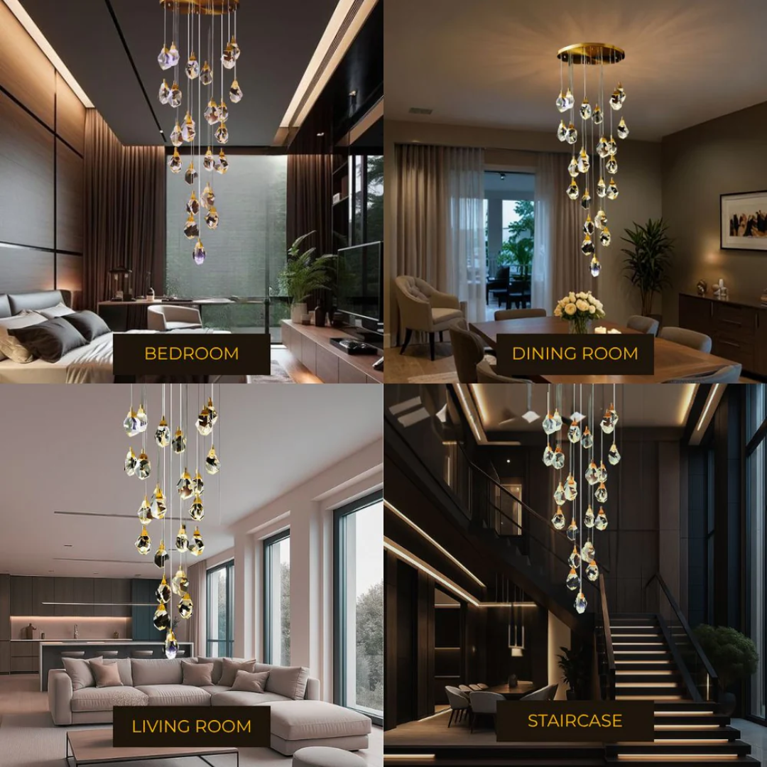 Celestara Drops brings a celestial glow to your space with its dazzling cascade of premium K9 crystals and polished stainless steel frame. Designed to impress in both dramatic stairwells and post modern interiors, this statement chandelier radiates luxury and grace.