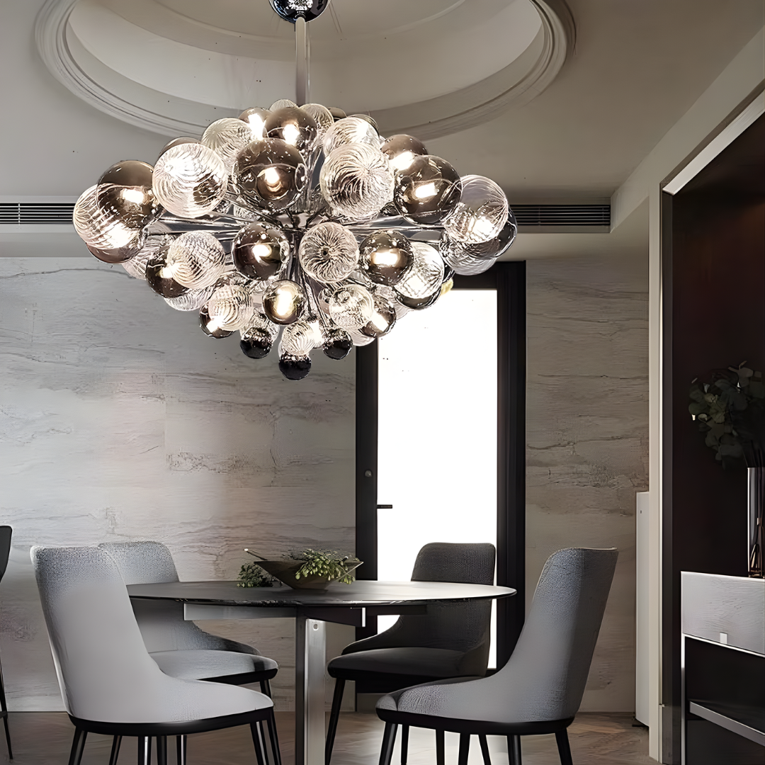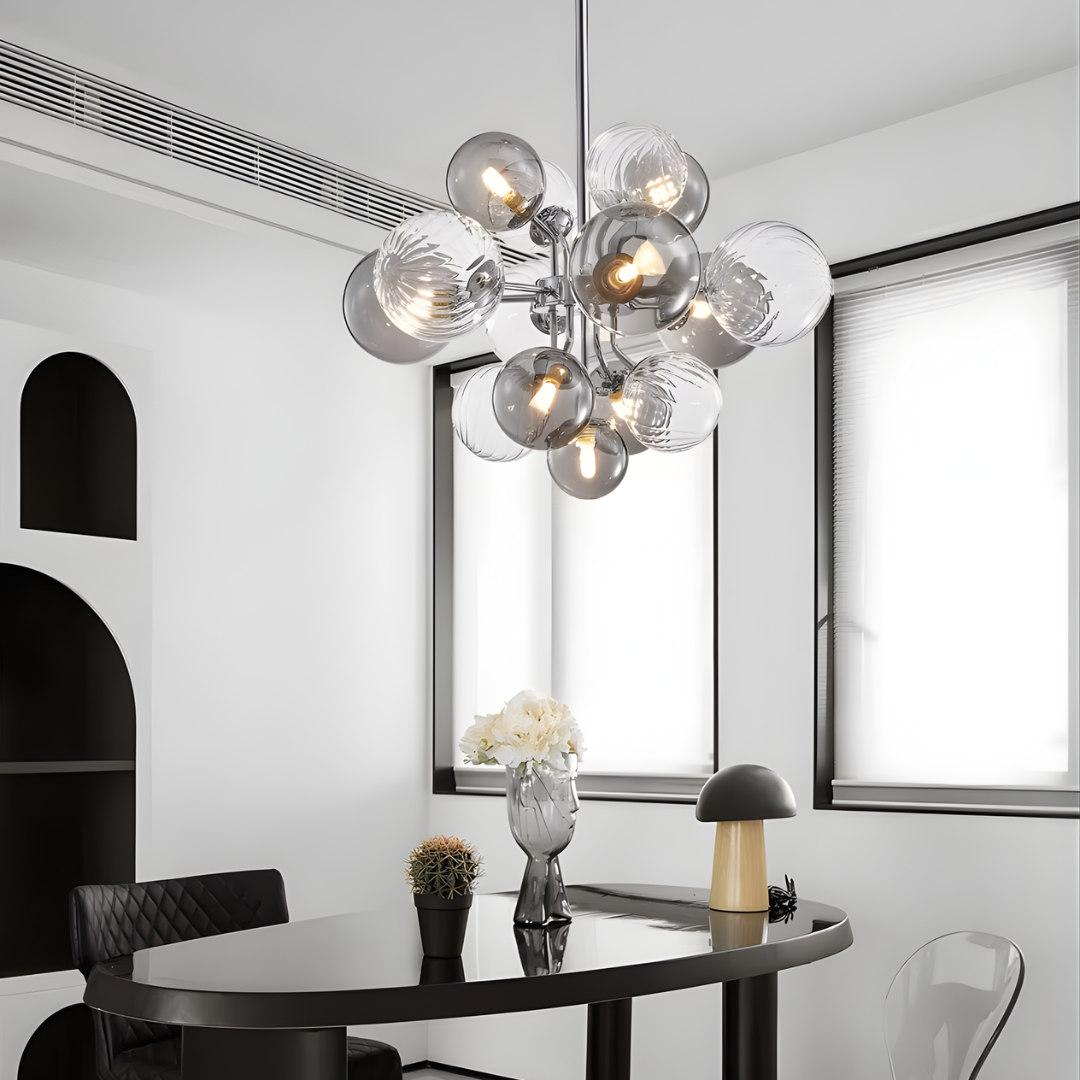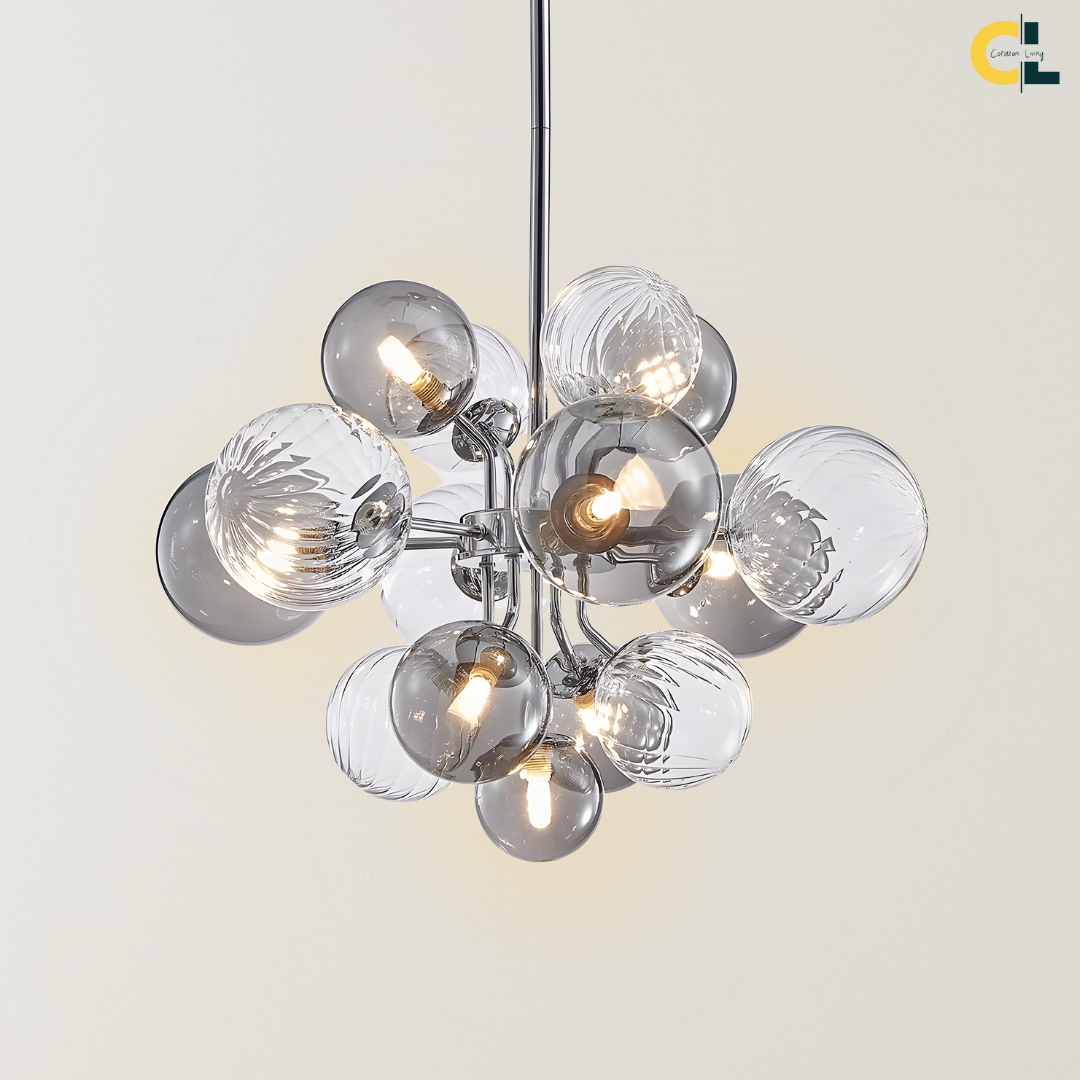 Inspired by Nordic design principles, the Charlotte Chandelier embraces soft minimalism and refined balance. Its chrome-finished structure and gently layered glass globes create an airy, harmonious presence that diffuses light evenly without visual heaviness. With an adjustable hanging height, it brings calm elegance and functional beauty to dining rooms and living spaces.