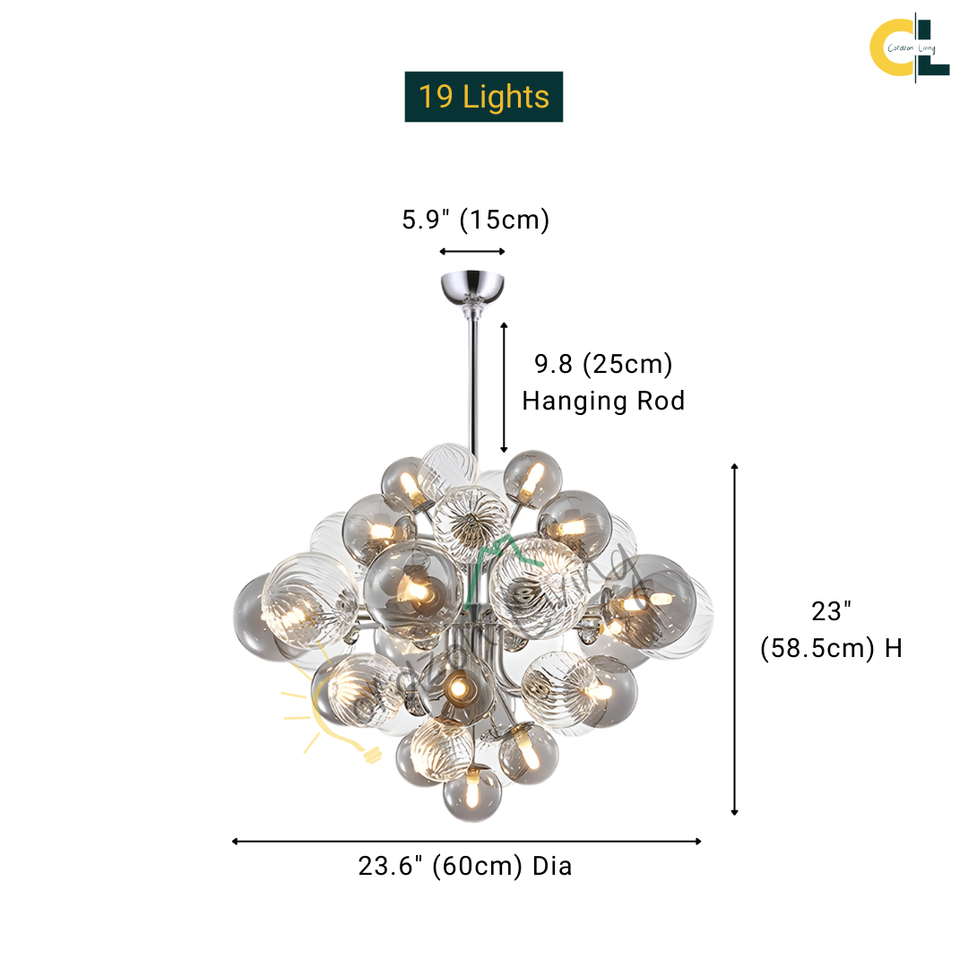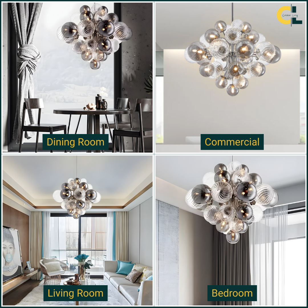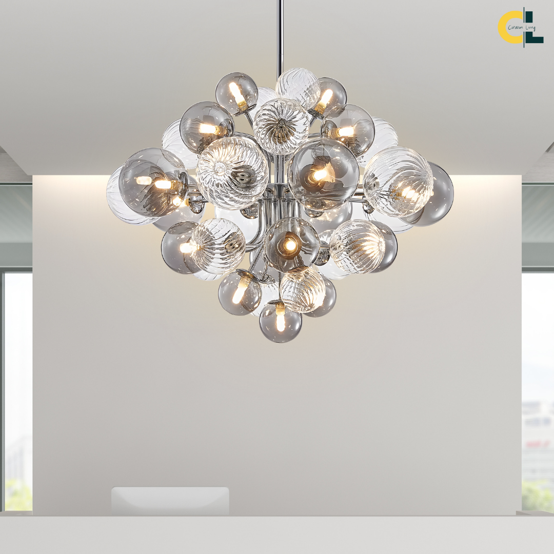 Inspired by Nordic design principles, the Charlotte Chandelier embraces soft minimalism and refined balance. Its chrome-finished structure and gently layered glass globes create an airy, harmonious presence that diffuses light evenly without visual heaviness. With an adjustable hanging height, it brings calm elegance and functional beauty to dining rooms and living spaces.