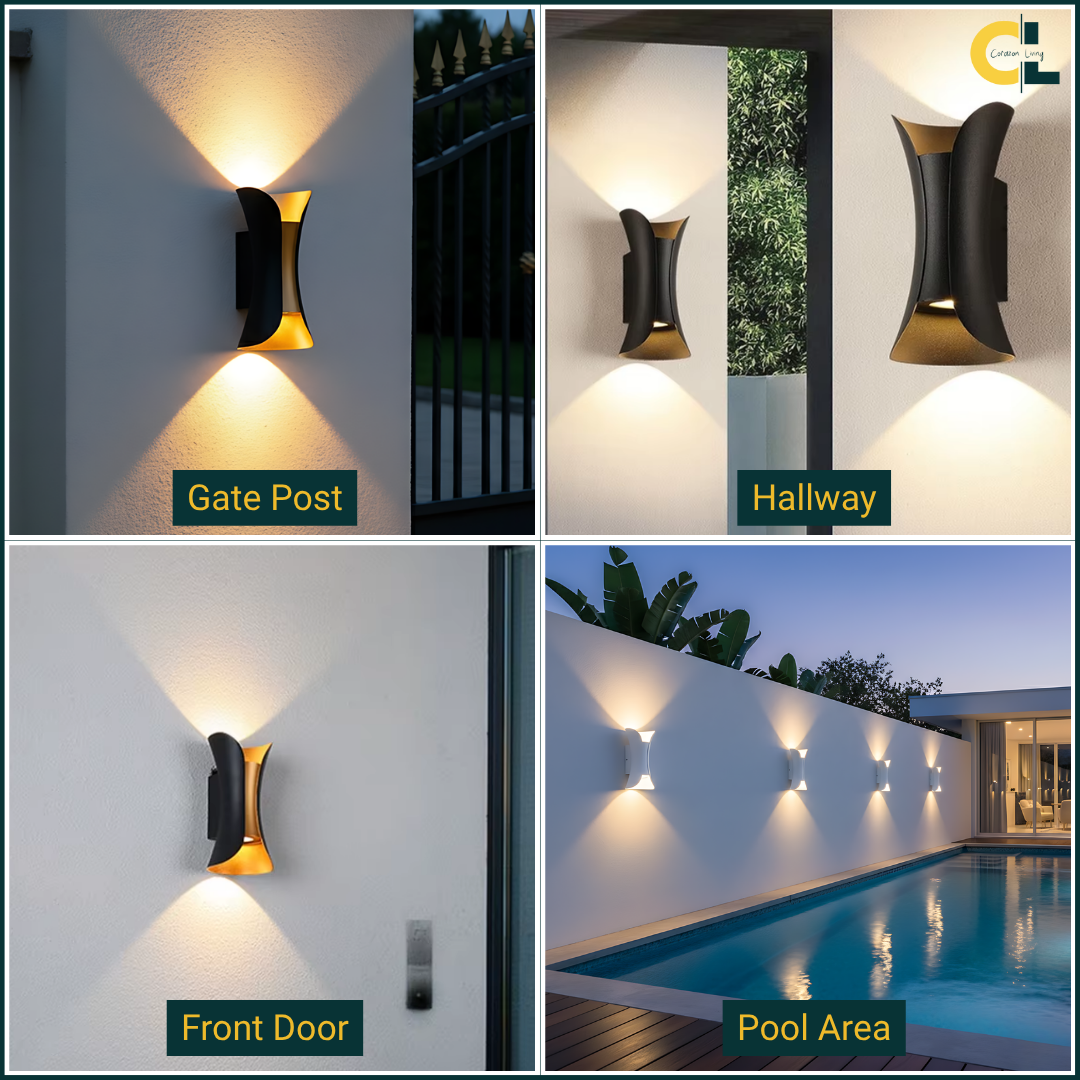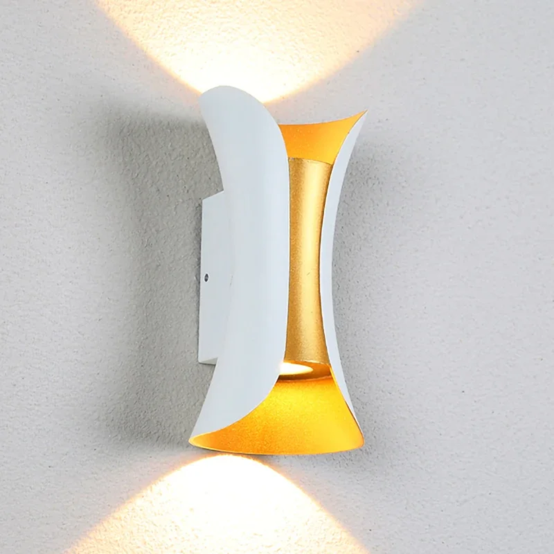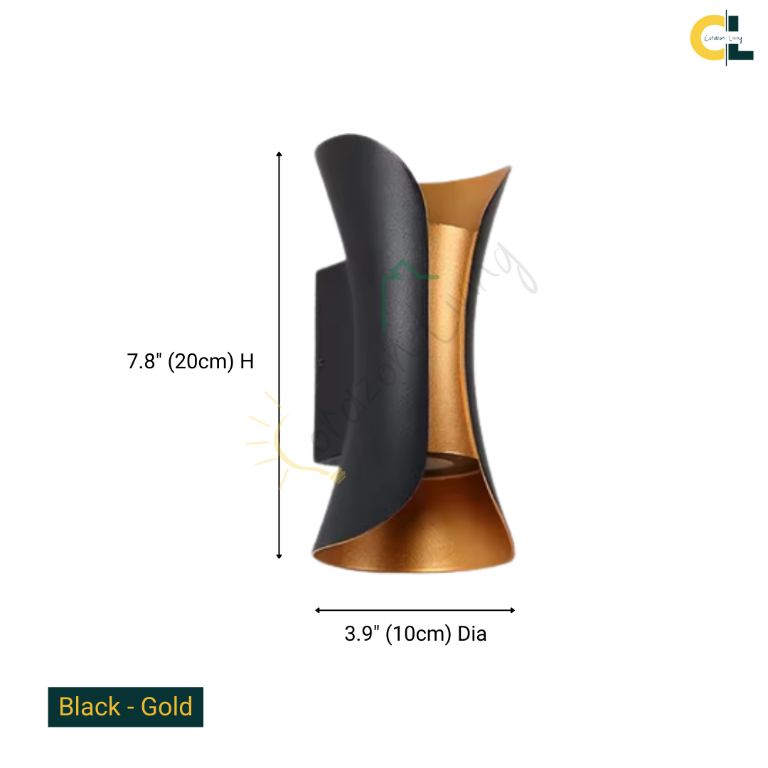 Add a touch of modern elegance to your space with this Curva LED Wall Sconce. Designed with a sleek up-and-down light beam, this wall-mounted lamp provides both ambient and functional lighting for any room. Crafted from durable aluminum with a contemporary black, gold, and white finish, it is suitable for both indoor and outdoor use. Whether installed in a hallway, bedroom, living room, or garden, this waterproof wall light enhances your decor with clean lines and energy-efficient LED illumination. Ideal for modern homes, hotels, or commercial spaces looking for stylish and reliable lighting.