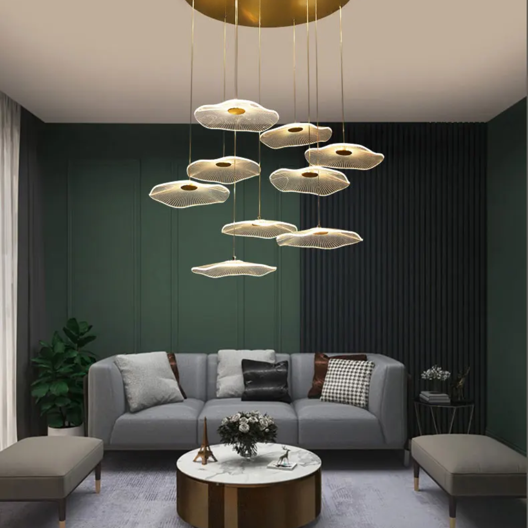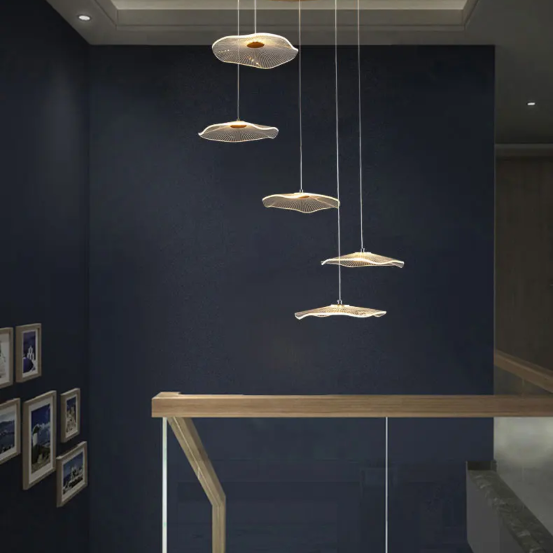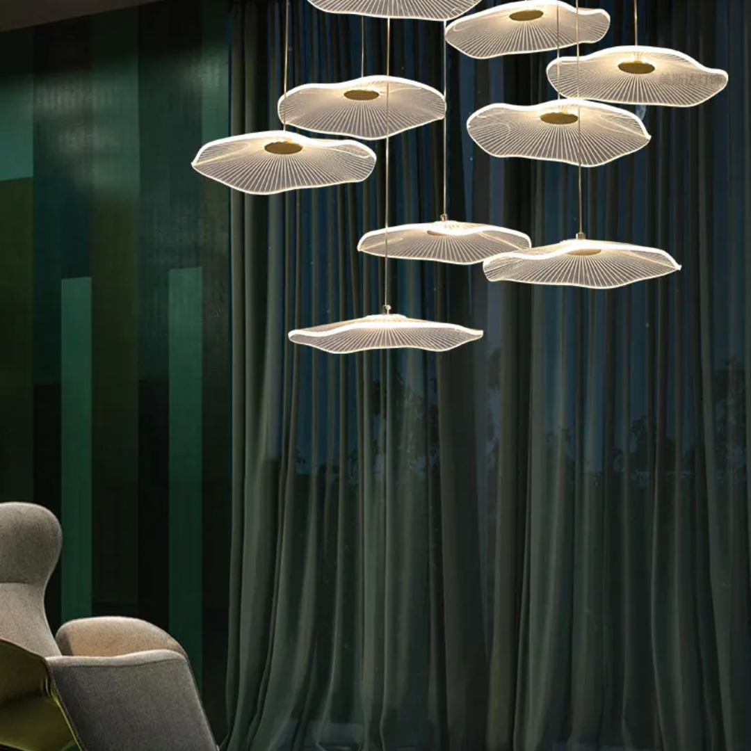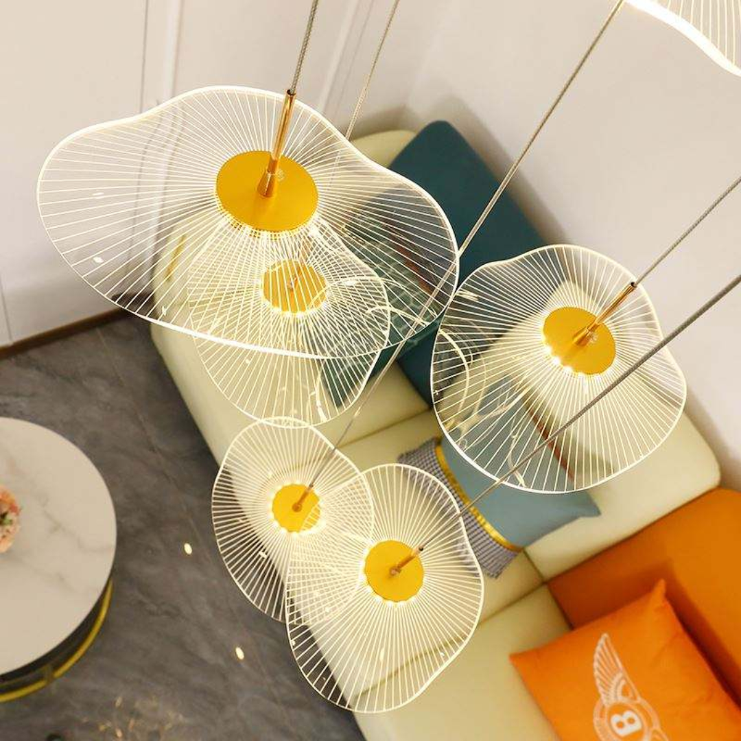 Artistic Lotus-Inspired Design – Leaf-shaped acrylic shades mimic blooming petals