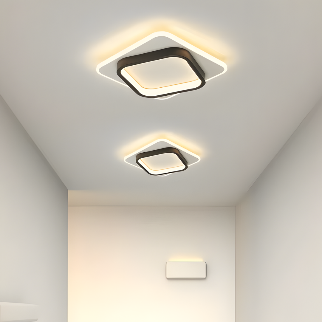 Sleek modern ceiling light with iron and acrylic construction, offering versatile round or square designs and adjustable lighting for contemporary interiors.