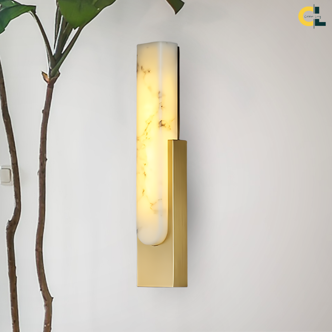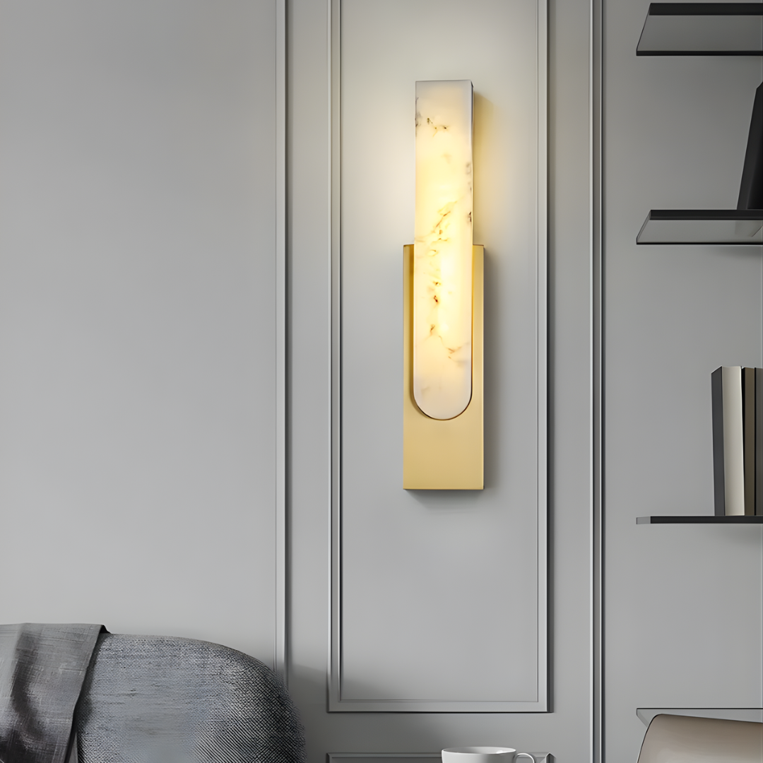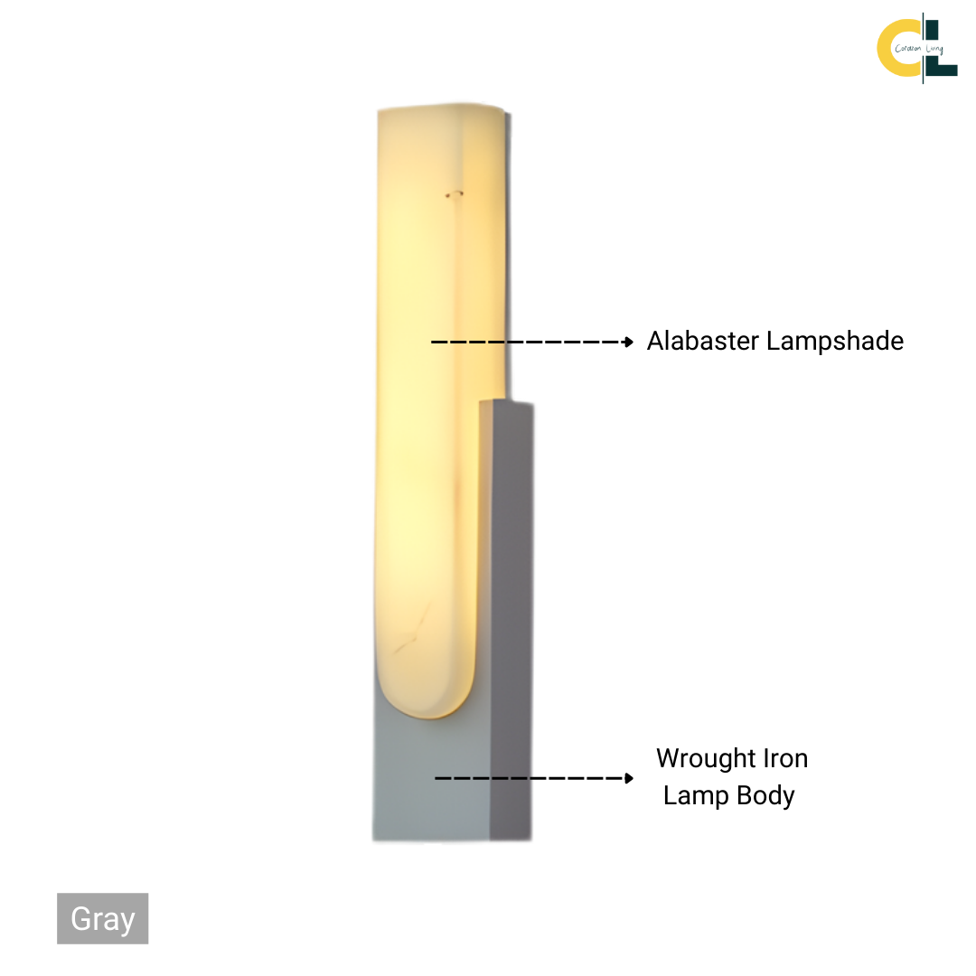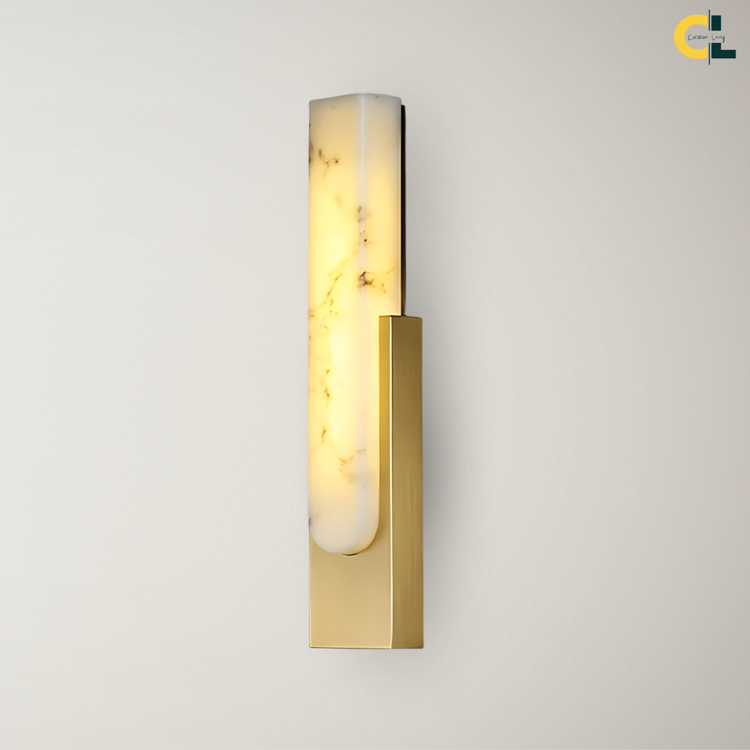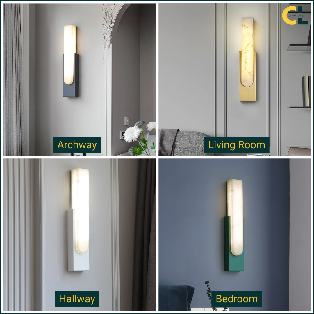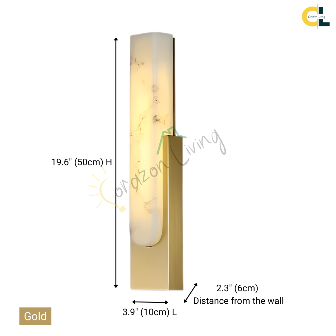 The Eldoria Wall Light brings an elevated sense of sophistication to any interior space through its seamless blend of alabaster marble and sleek metal detailing. Its natural marbled patterns create a soft, luxurious glow, while the vertical silhouette adds a contemporary architectural presence to living rooms, hallways, bedrooms, and upscale commercial environments.