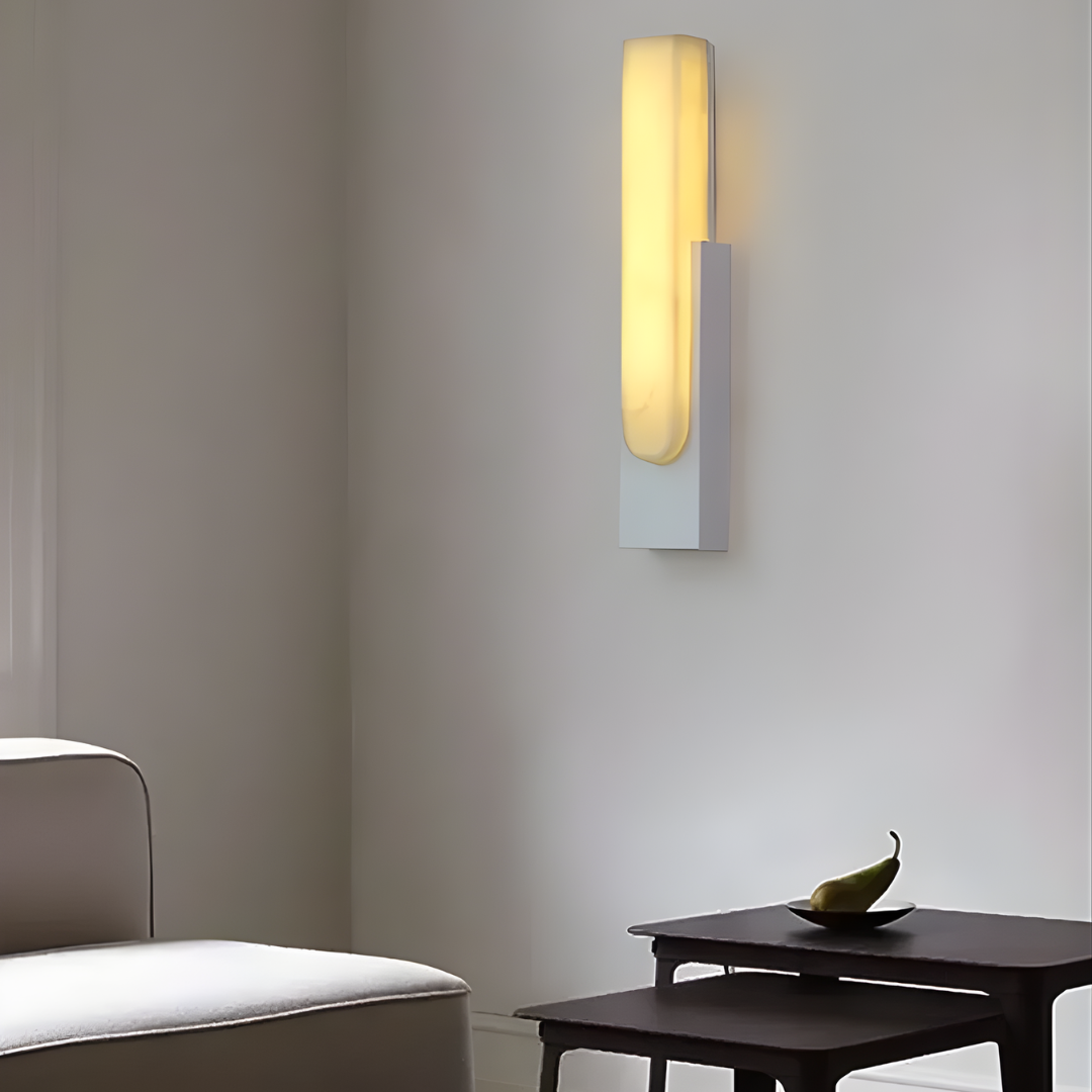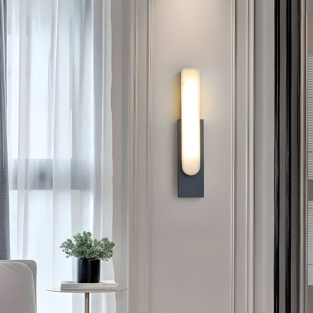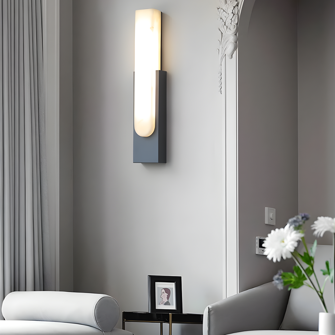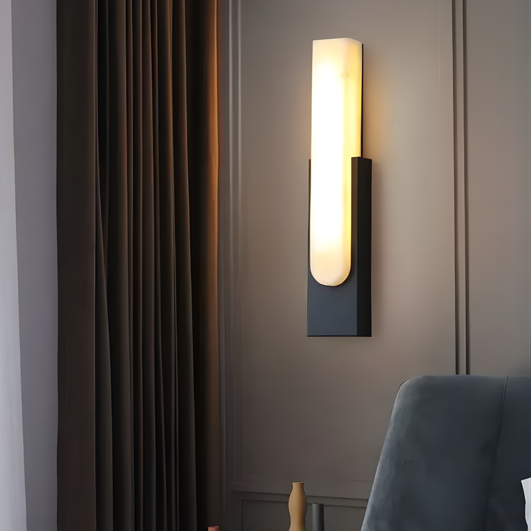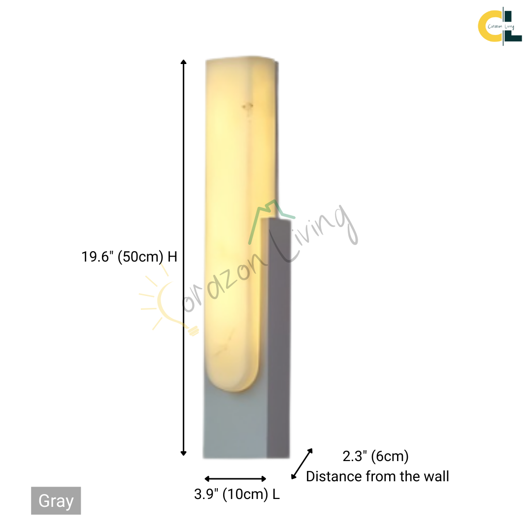 The Eldoria Wall Light brings an elevated sense of sophistication to any interior space through its seamless blend of alabaster marble and sleek metal detailing. Its natural marbled patterns create a soft, luxurious glow, while the vertical silhouette adds a contemporary architectural presence to living rooms, hallways, bedrooms, and upscale commercial environments.