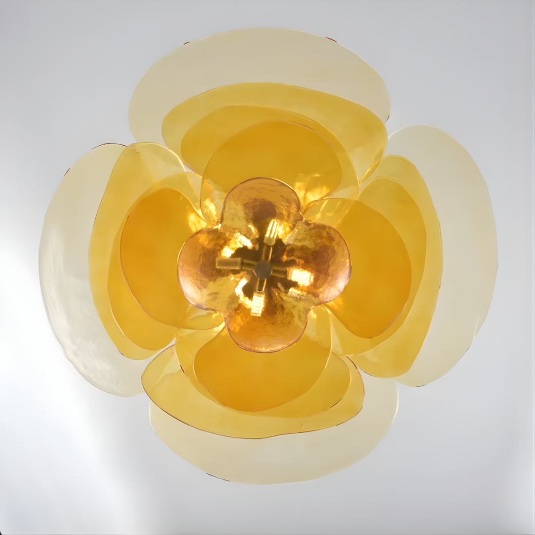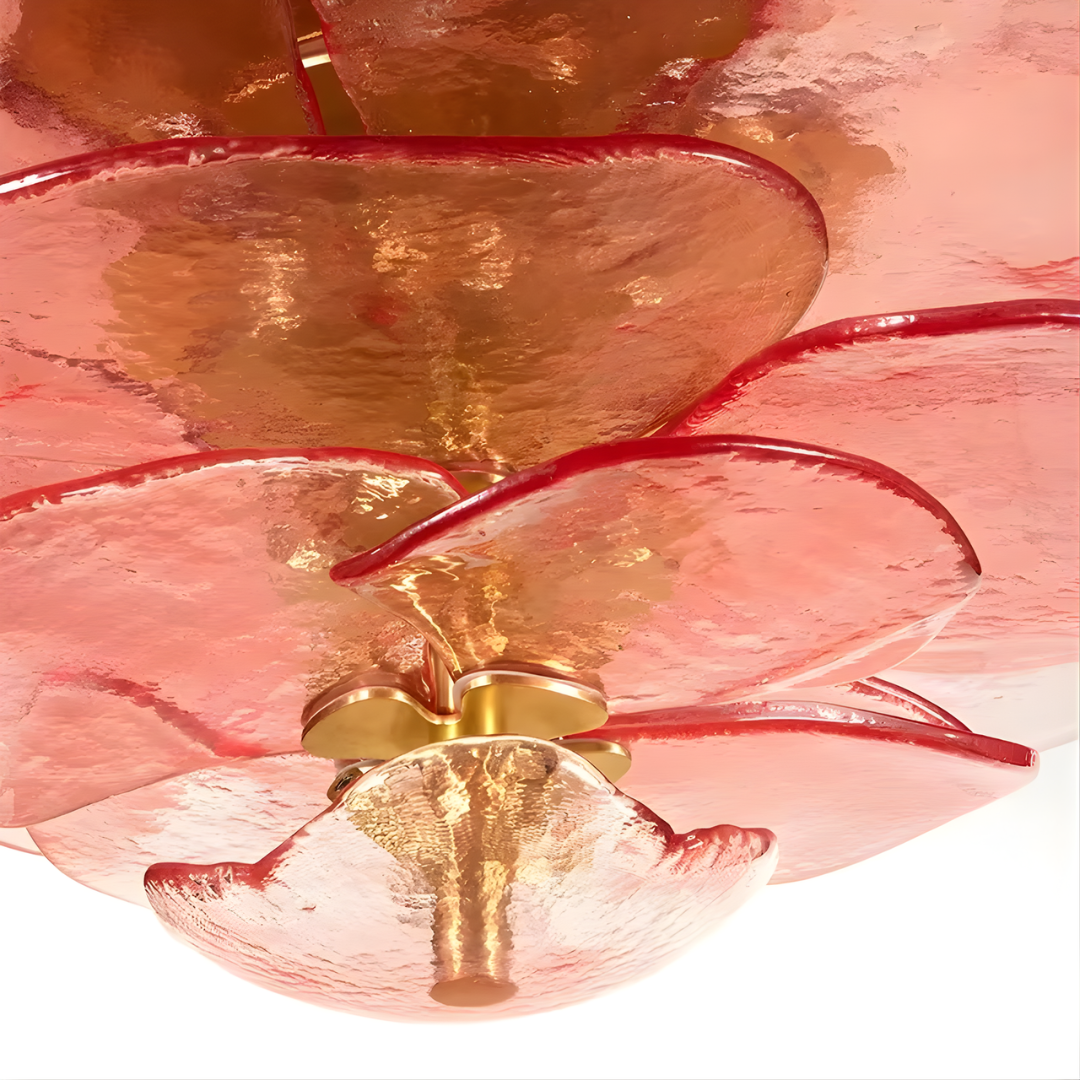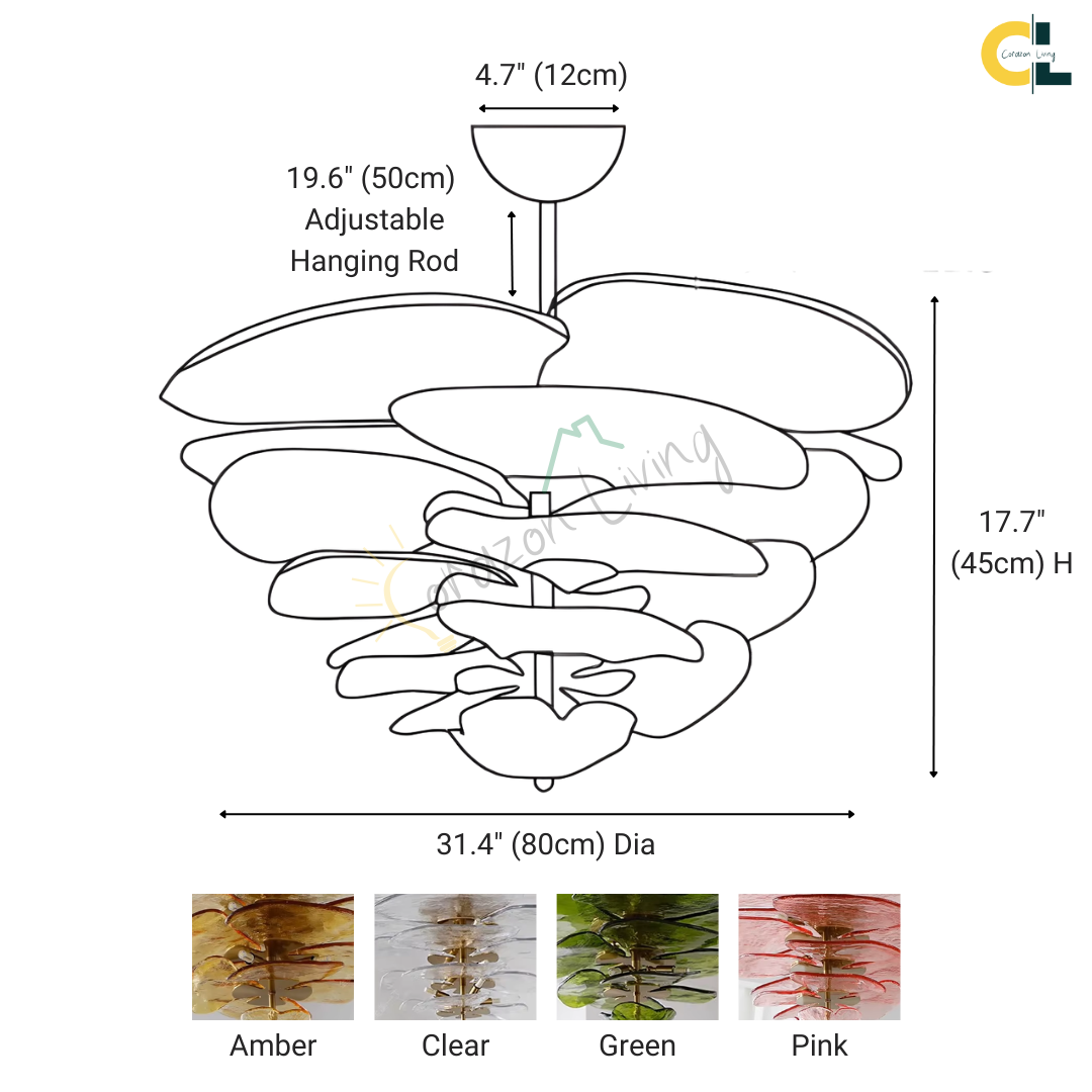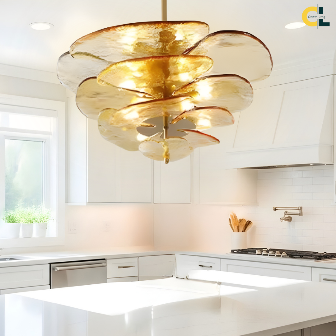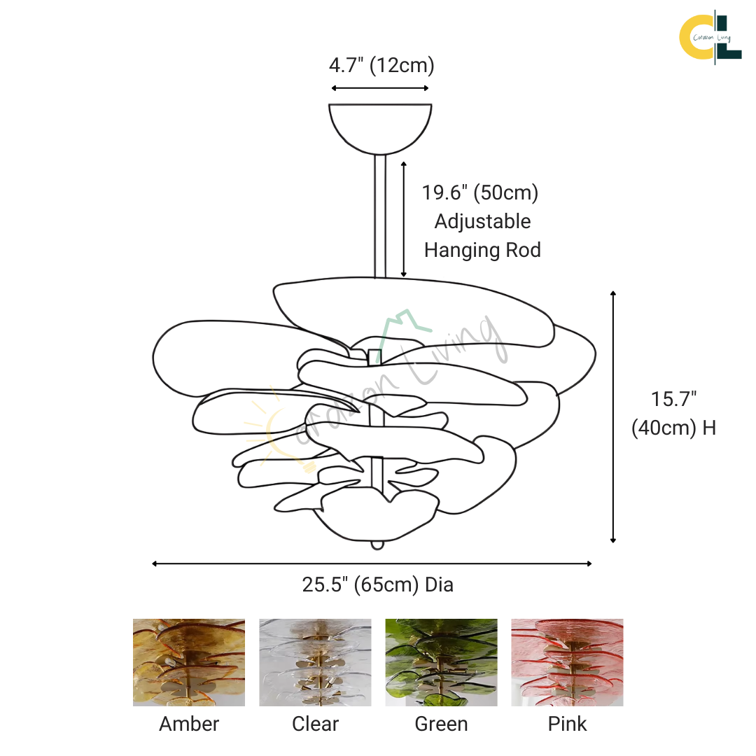 The Felicity Chandelier brings calm, botanical beauty to modern interiors. Inspired by layered leaves, its hand-shaped Murano glass panels float in an elegant formation, gently diffusing light for a warm, inviting glow without glare.