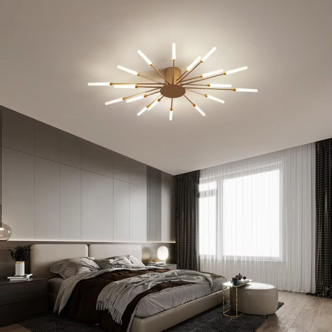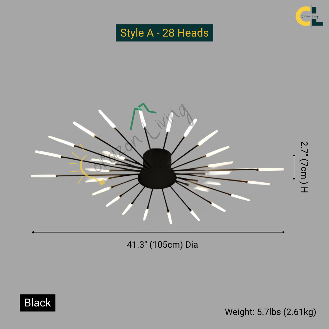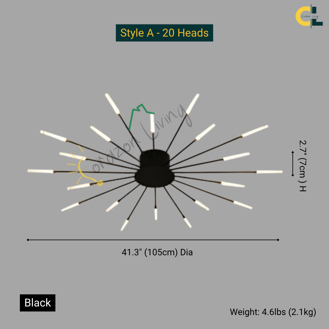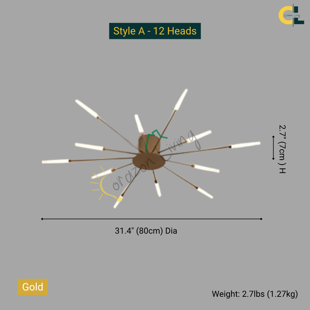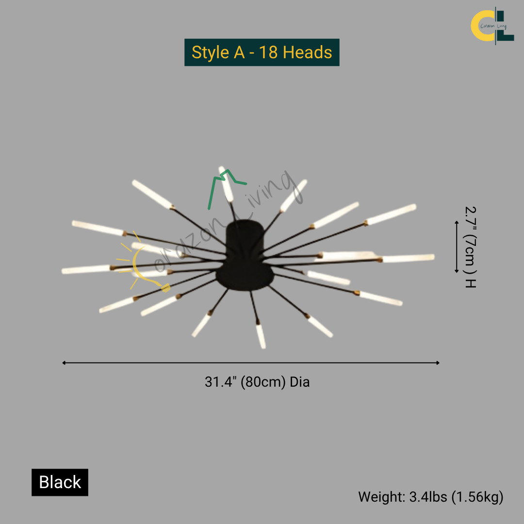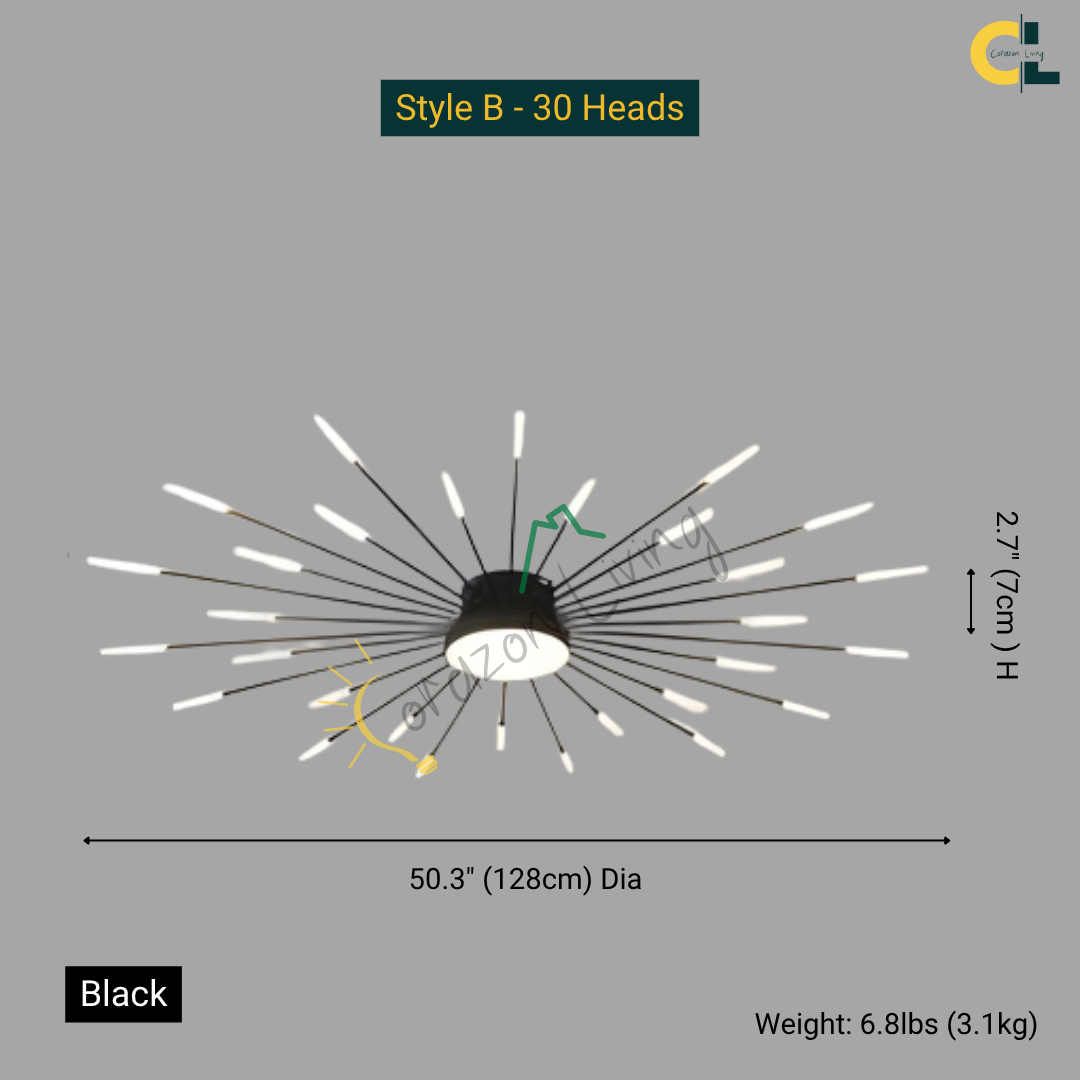 This LED ceiling light features a striking black and gold starburst design, combining modern elegance with radiant, eye-catching illumination.