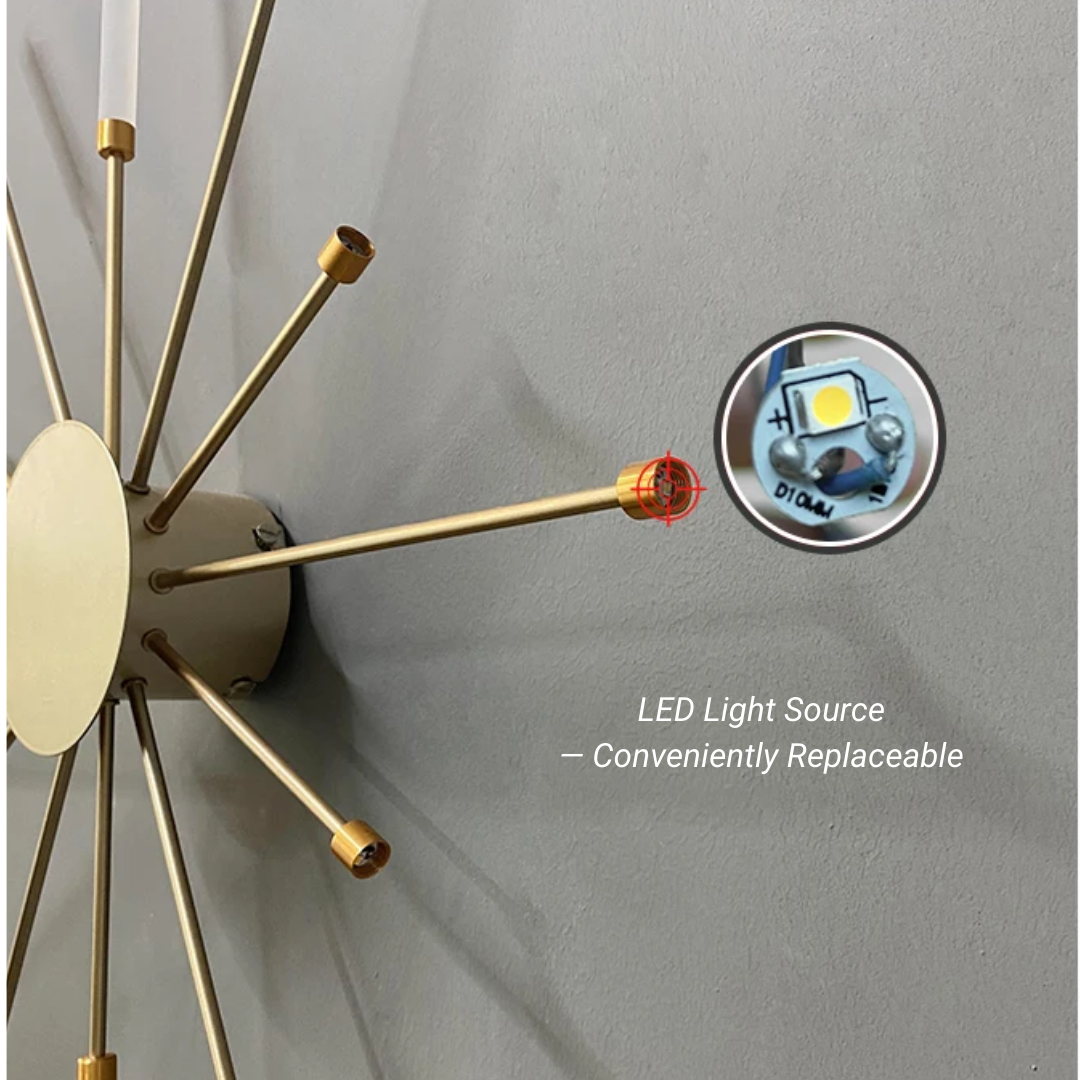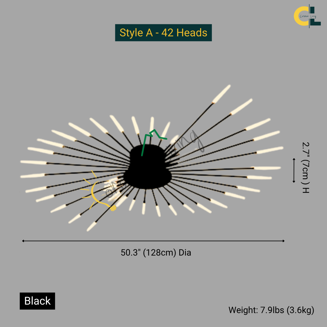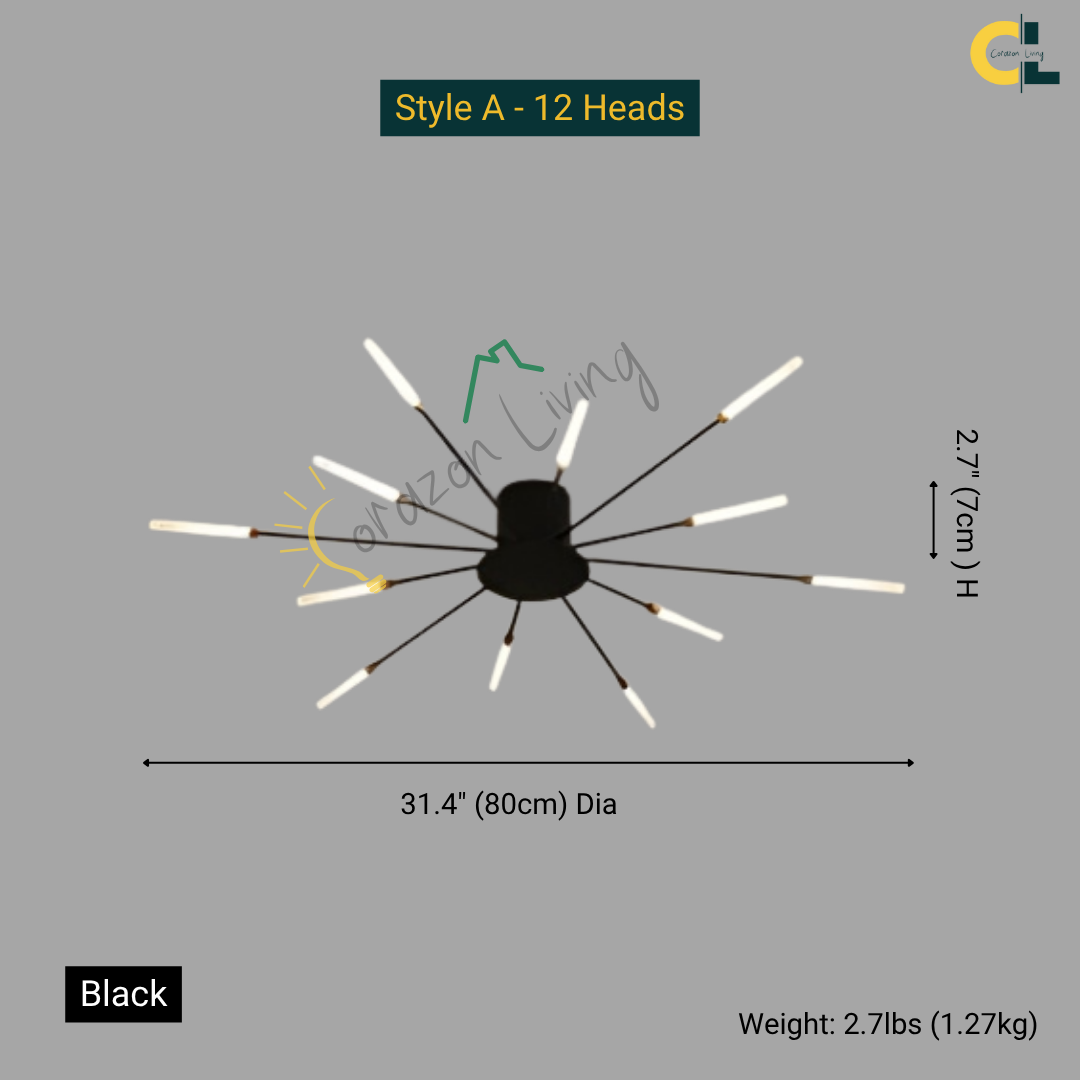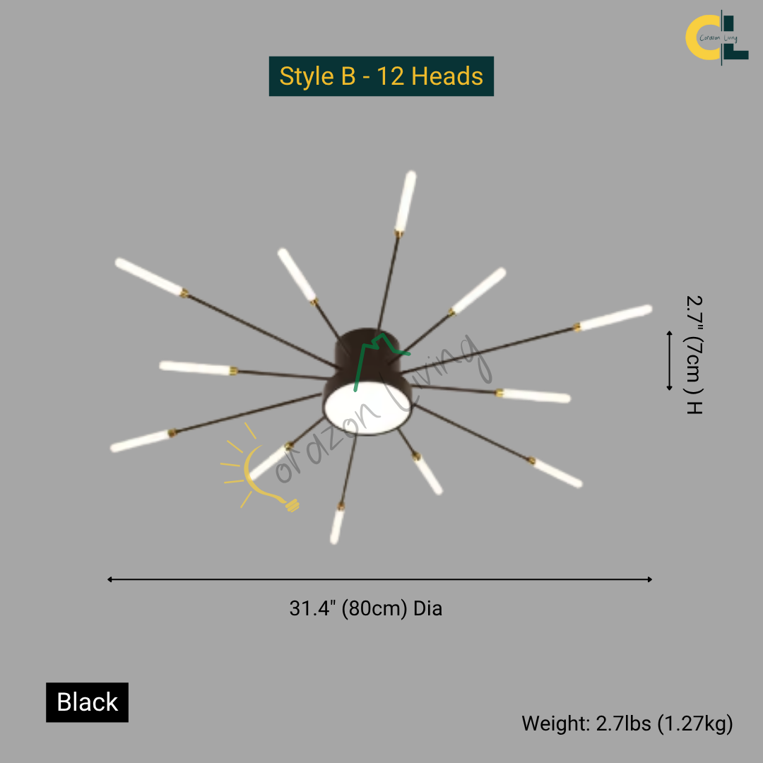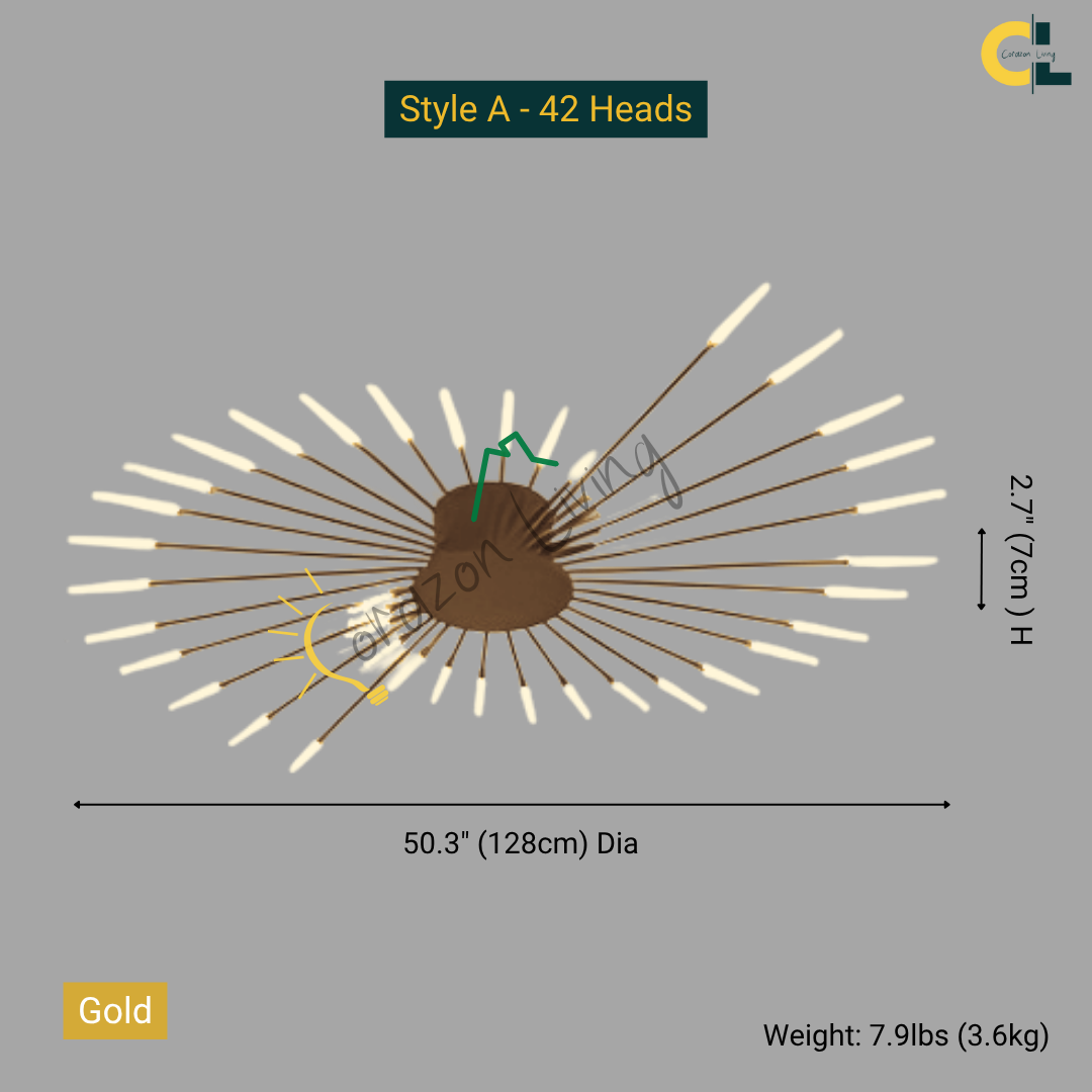 This LED ceiling light features a striking black and gold starburst design, combining modern elegance with radiant, eye-catching illumination.