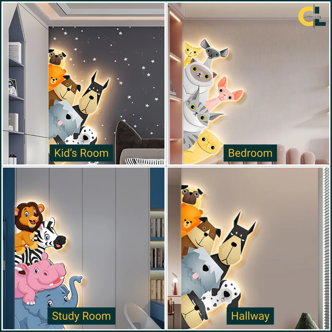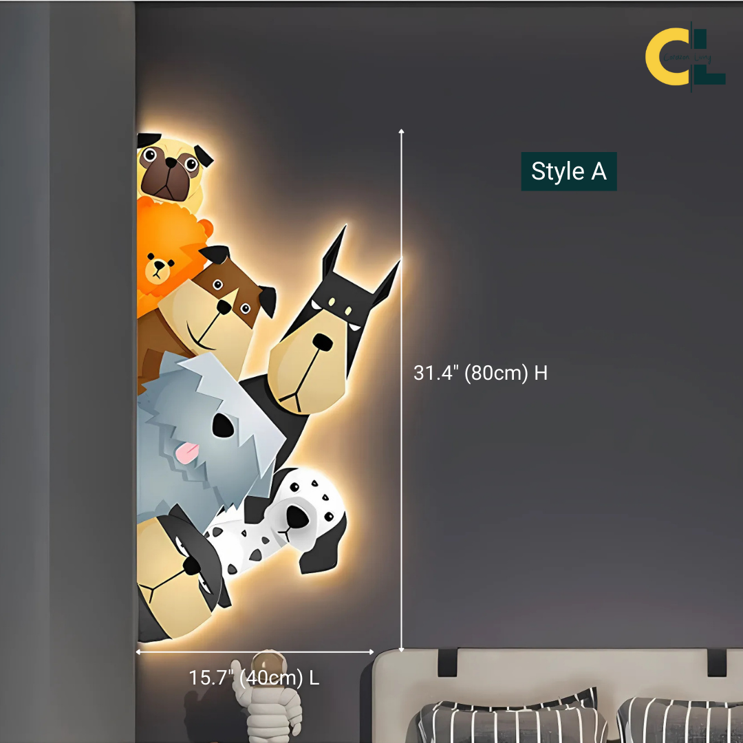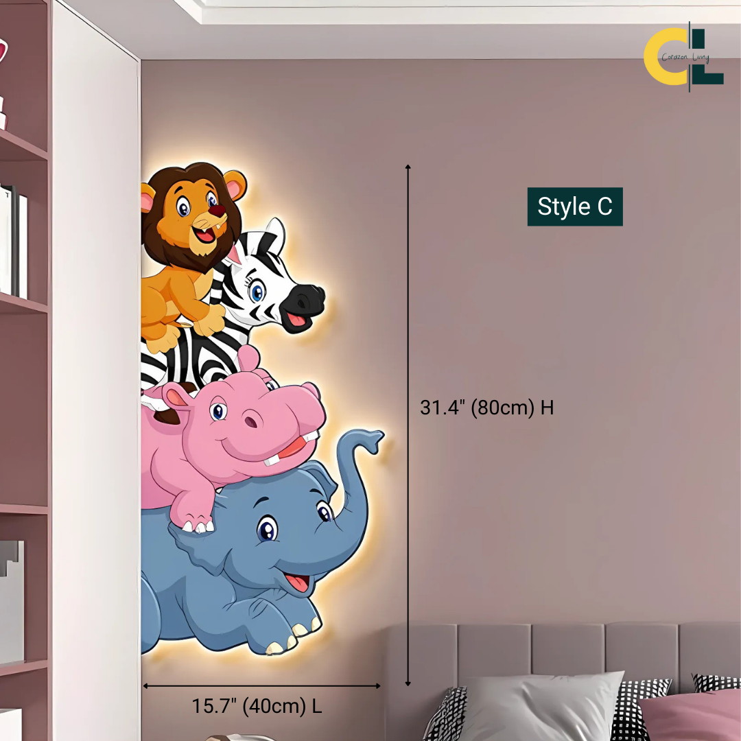 Furry Friends Animal Murals LED Wall Lamp with Plug Wire – a delightful blend of charm, playfulness, and practicality for any child’s room. Designed to create a warm, welcoming glow, it adds a whimsical touch to your décor while brightening the space.