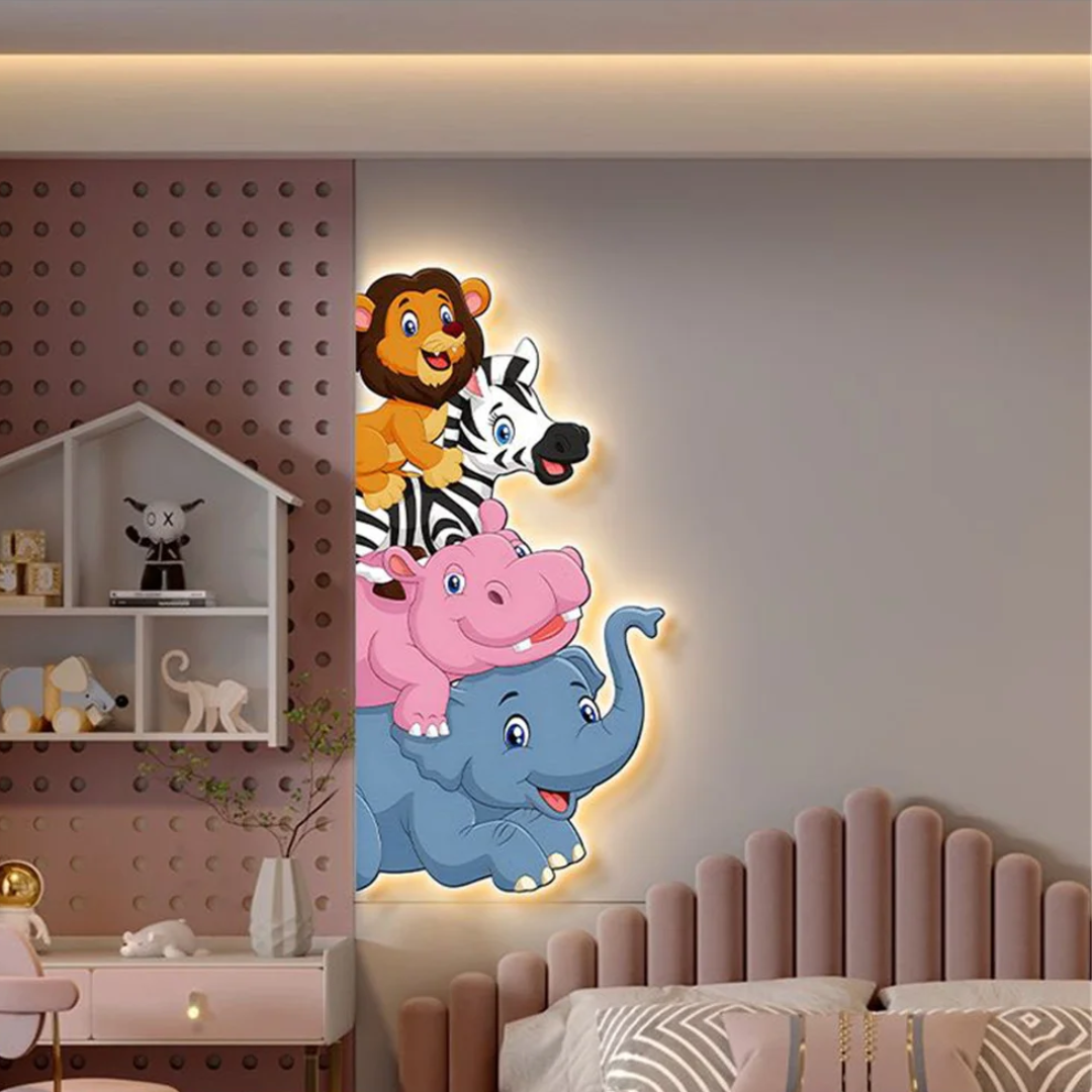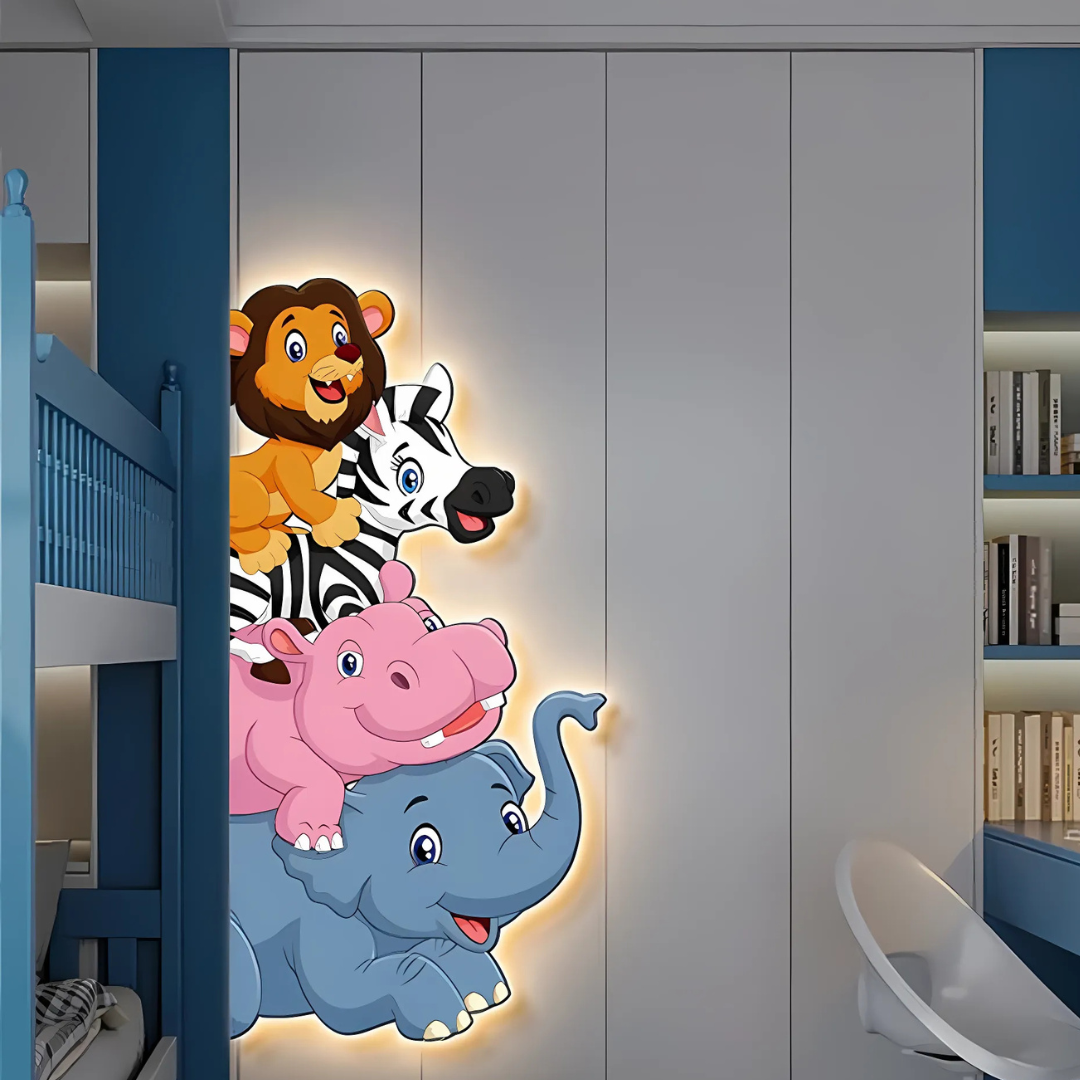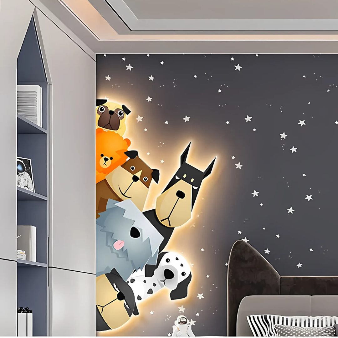 Furry Friends Animal Murals LED Wall Lamp with Plug Wire – a delightful blend of charm, playfulness, and practicality for any child’s room. Designed to create a warm, welcoming glow, it adds a whimsical touch to your décor while brightening the space.