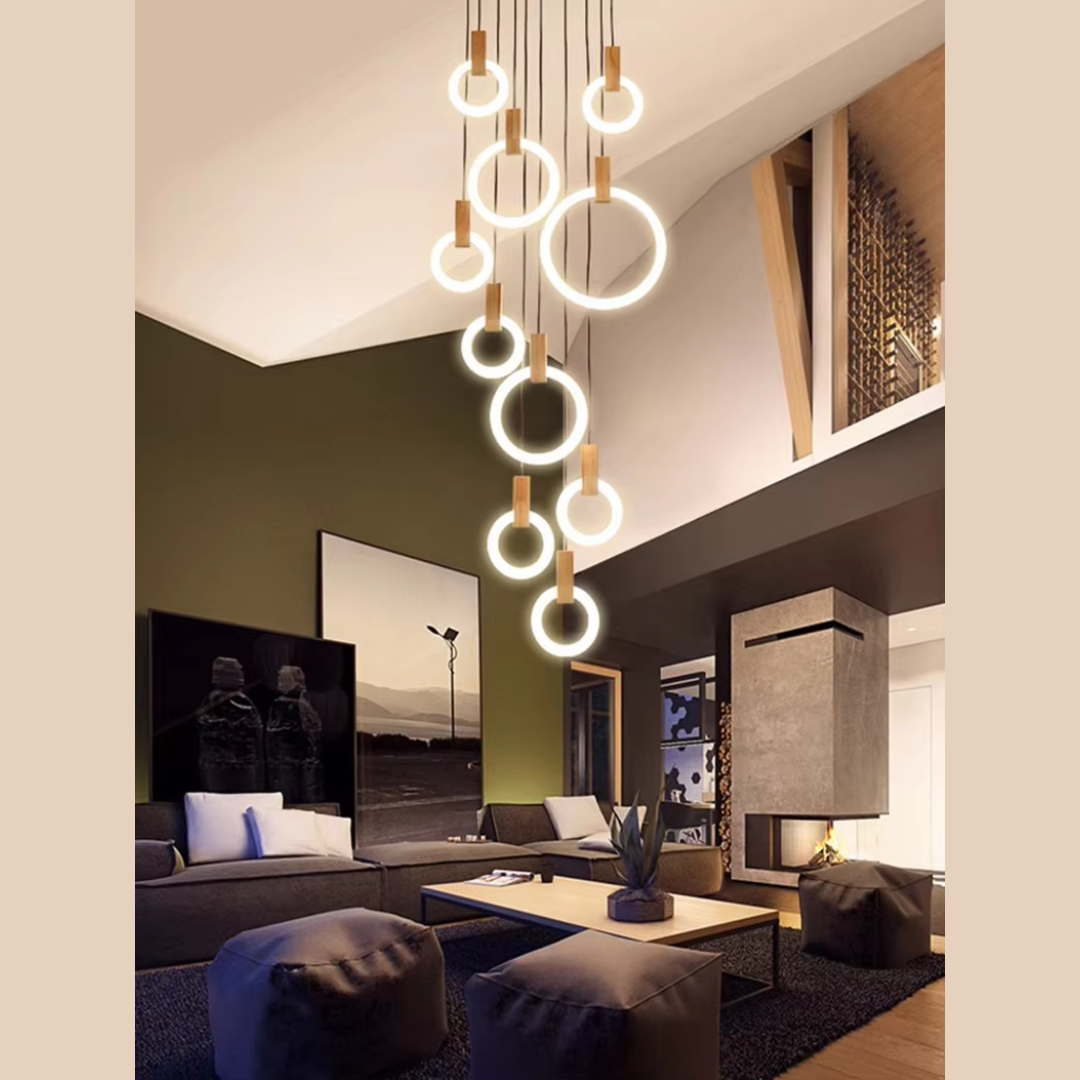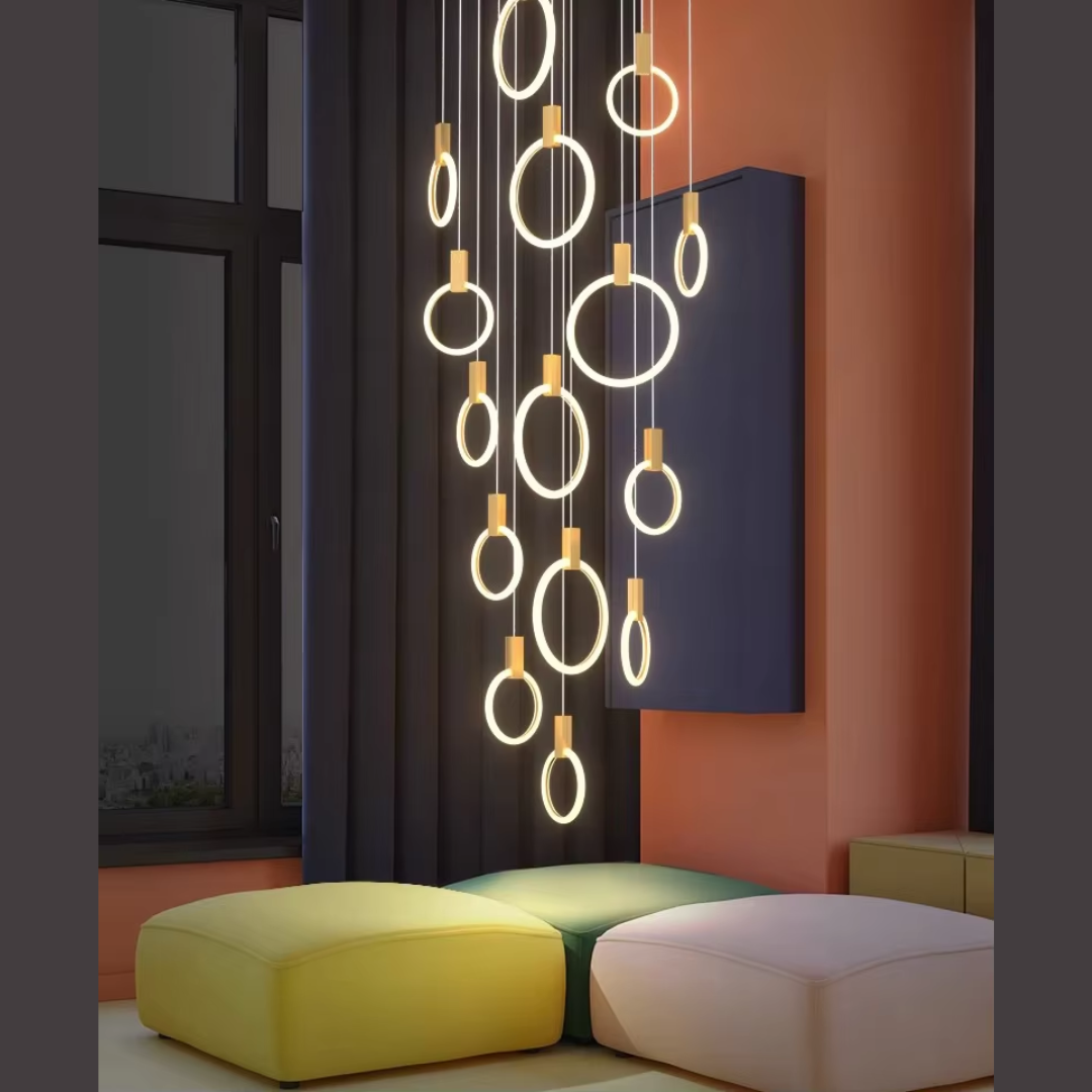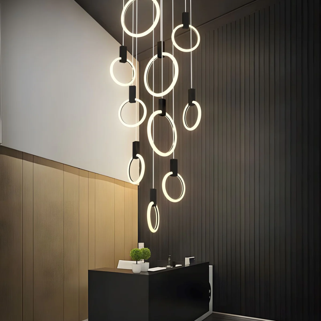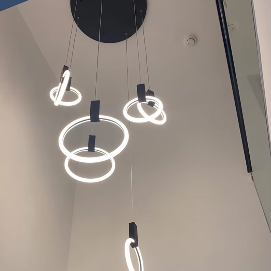 A Sophisticated Circular LED Chandelier that adds modern elegance and ambient lighting to any interior space.