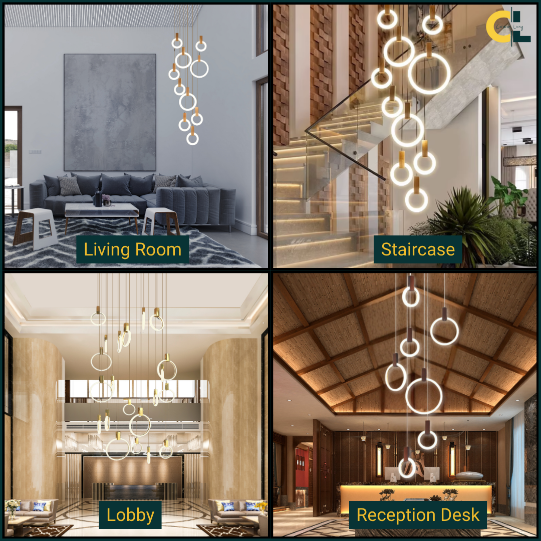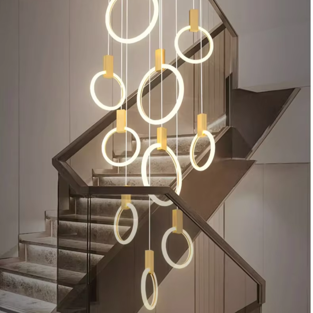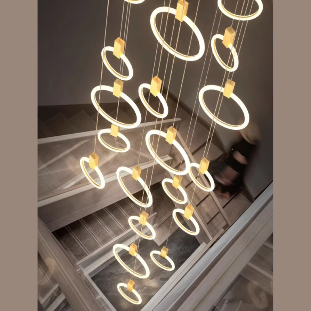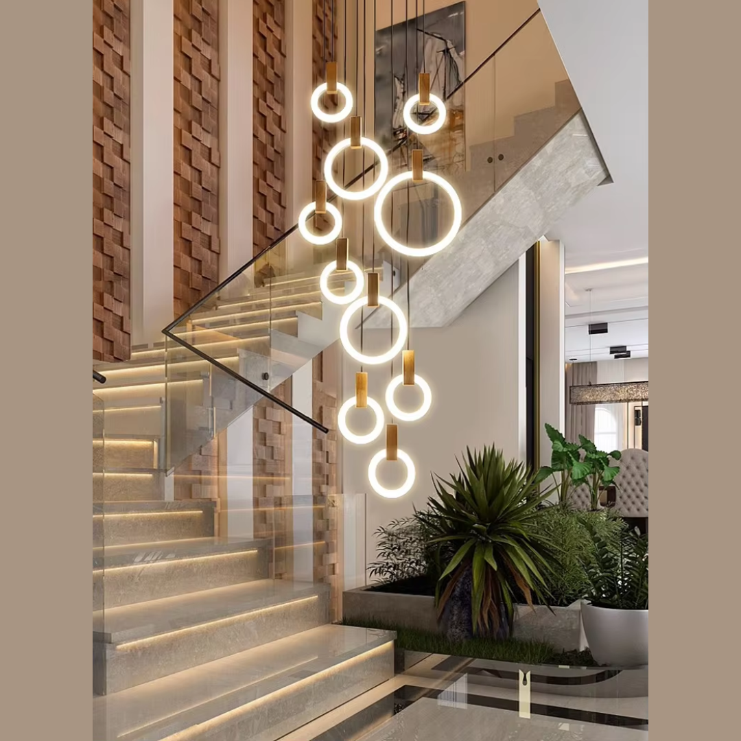 A Sophisticated Circular LED Chandelier that adds modern elegance and ambient lighting to any interior space.
