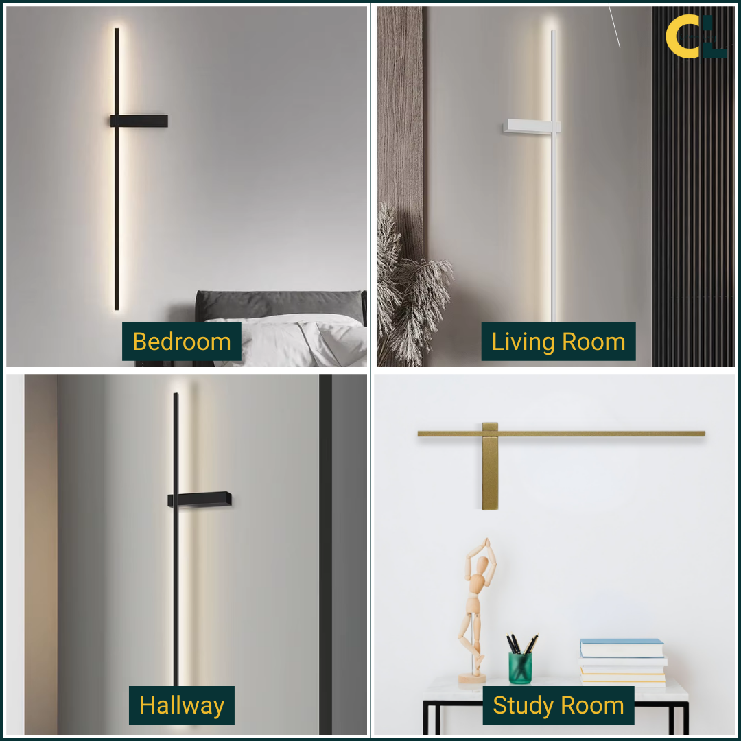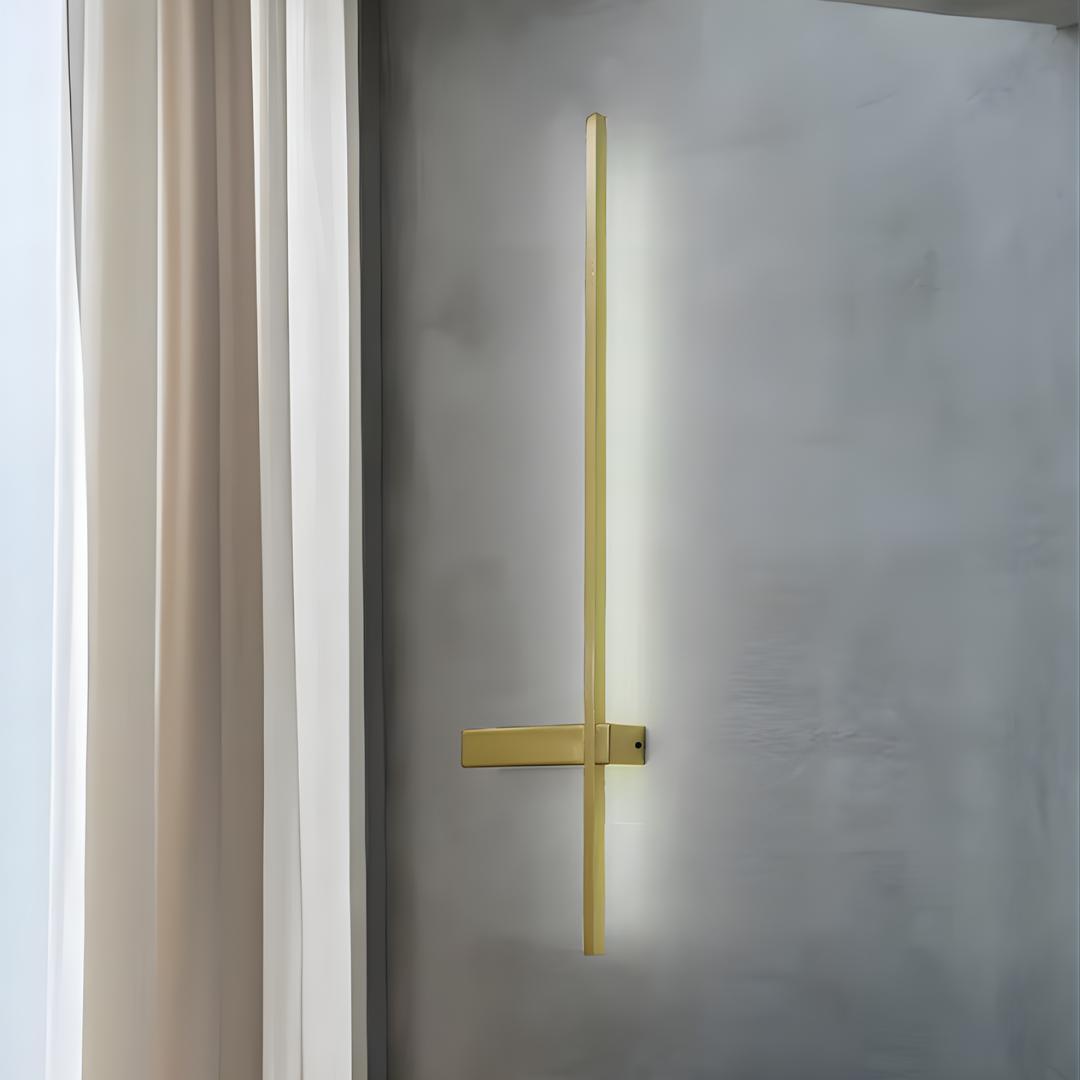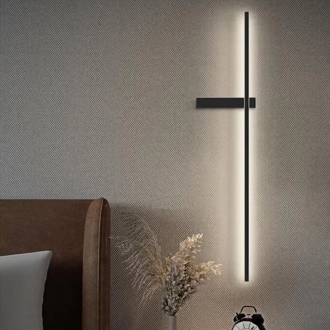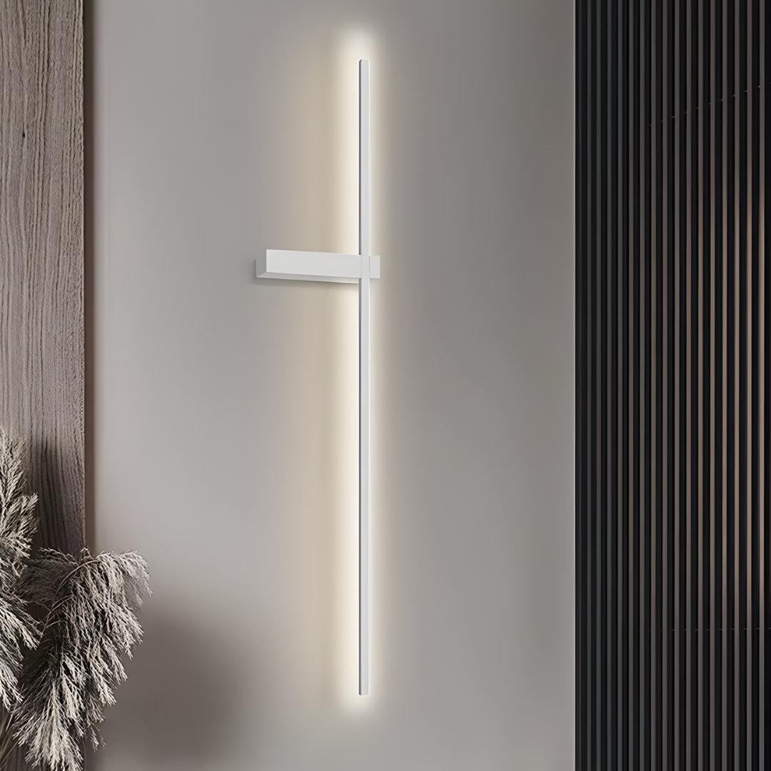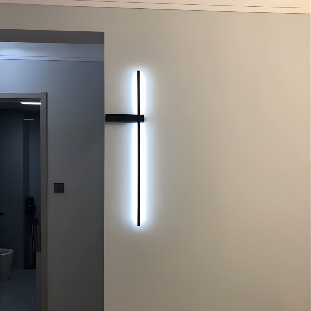 A sleek linear wall light with minimalist design and customizable LED illumination, providing soft, ambient glow for modern interiors.