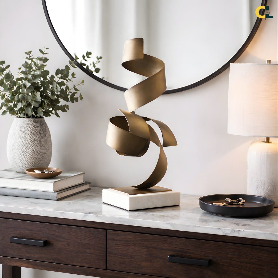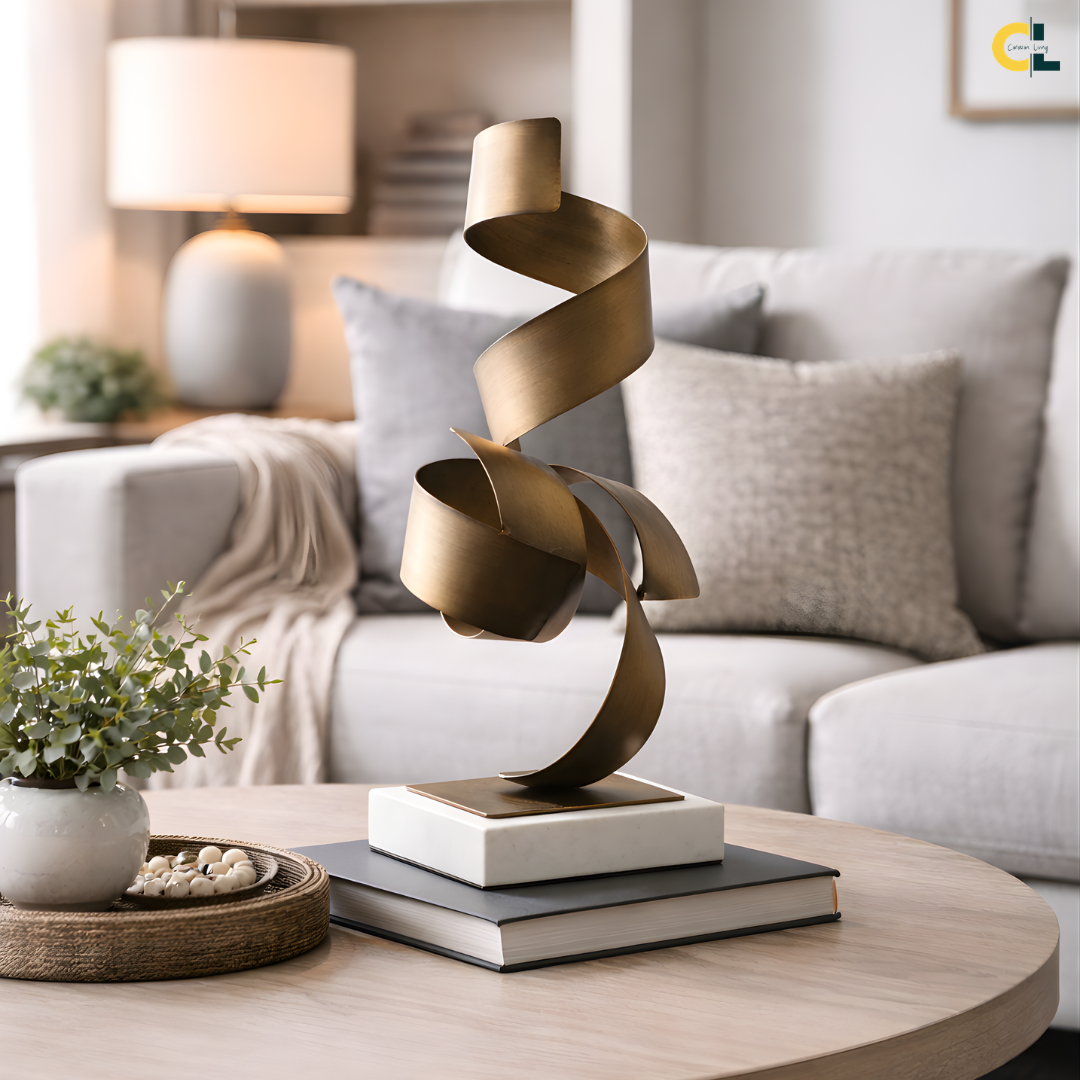 • Abstract helix ribbon sculpture for modern tabletop decor