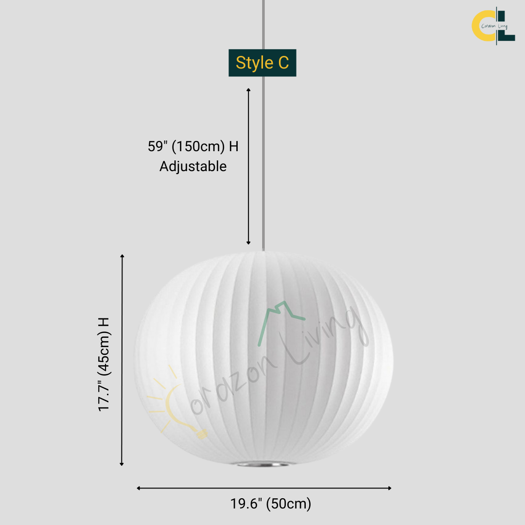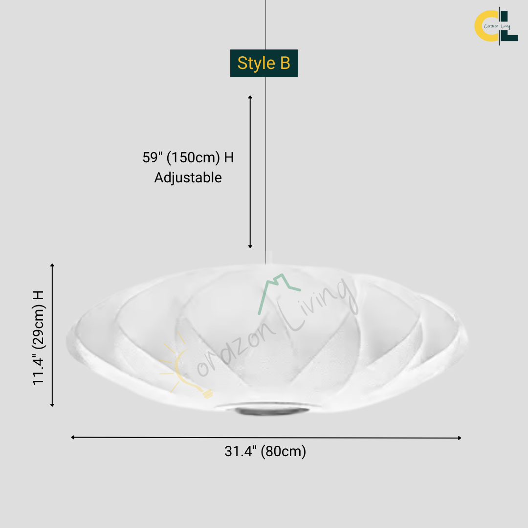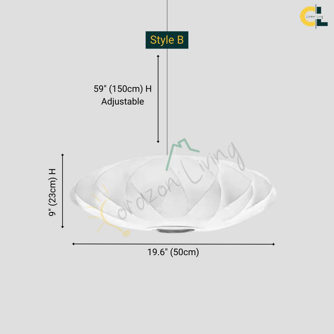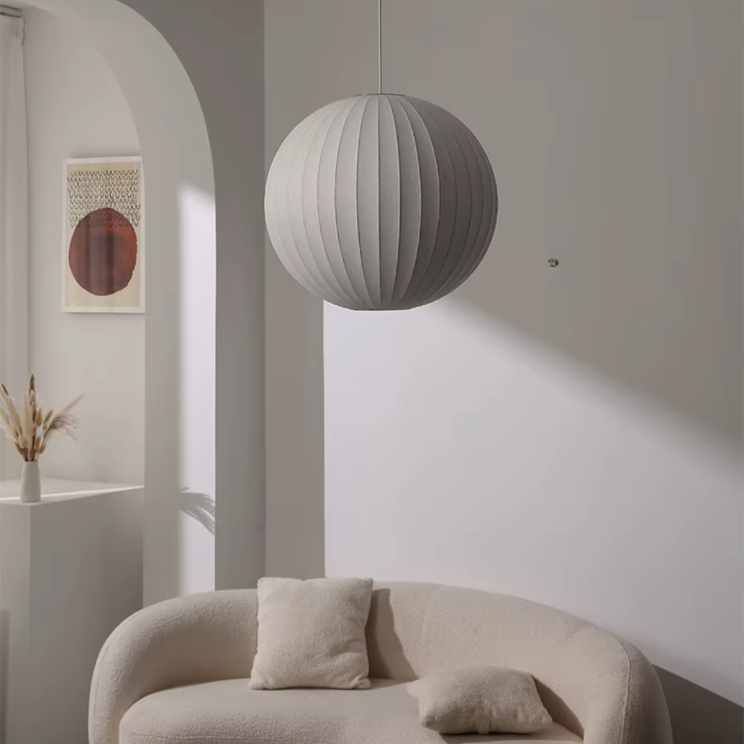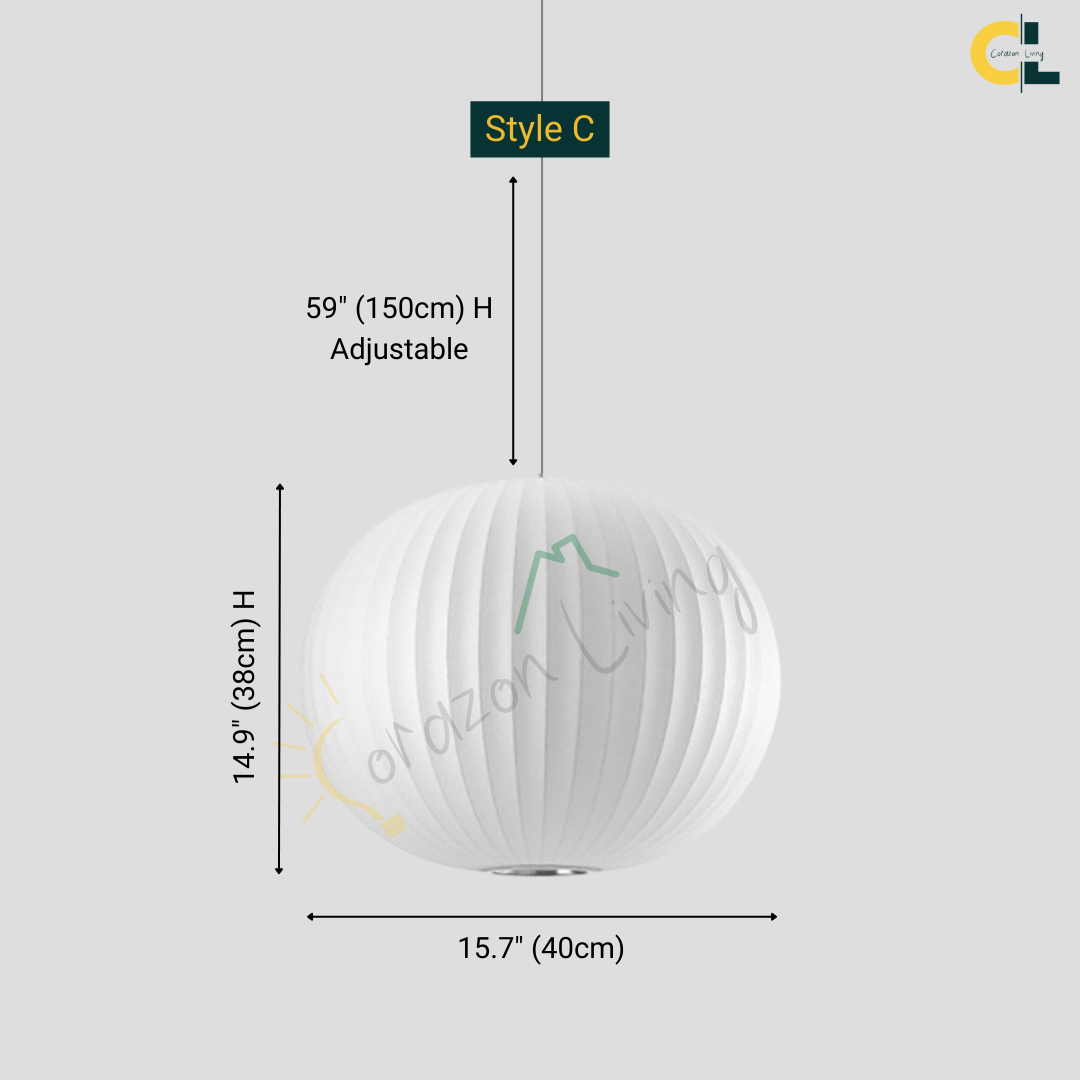 The Iska Japanese Pendant Light embodies minimalist elegance with its clean white silk cloth design, inspired by the timeless lamp style. Handcrafted with meticulous detail, its bubble silk shade diffuses light softly, creating a warm and serene atmosphere. Perfect for lofts, dining areas, living rooms, kitchens, and bedrooms, this pendant lamp brings a refined balance of Japanese simplicity and Scandinavian design. Its versatile suspension design makes it suitable for both modern and classic interiors.