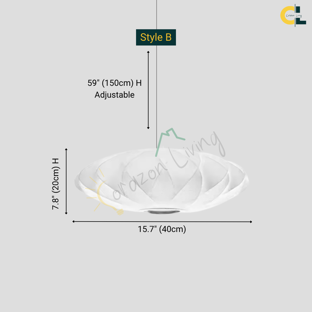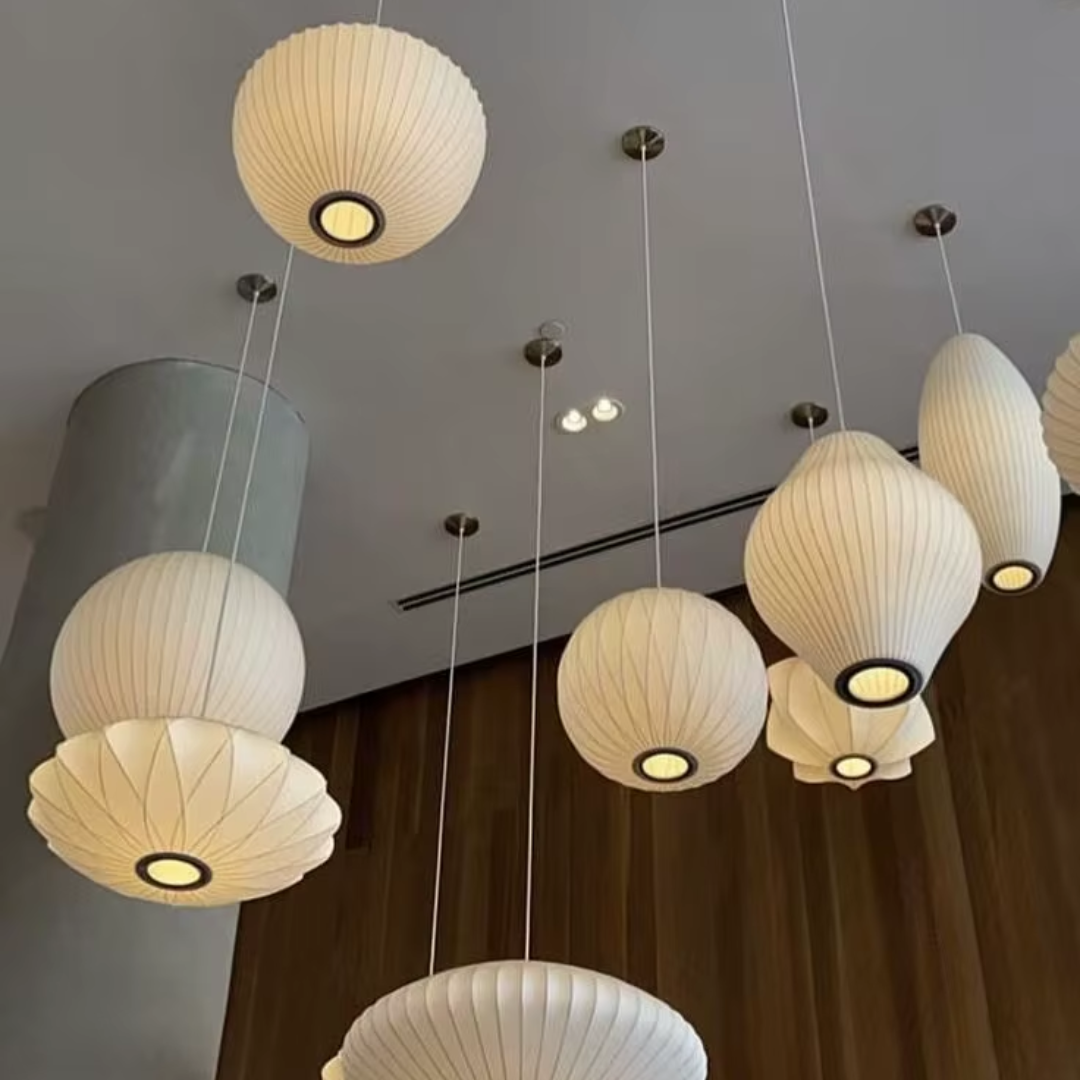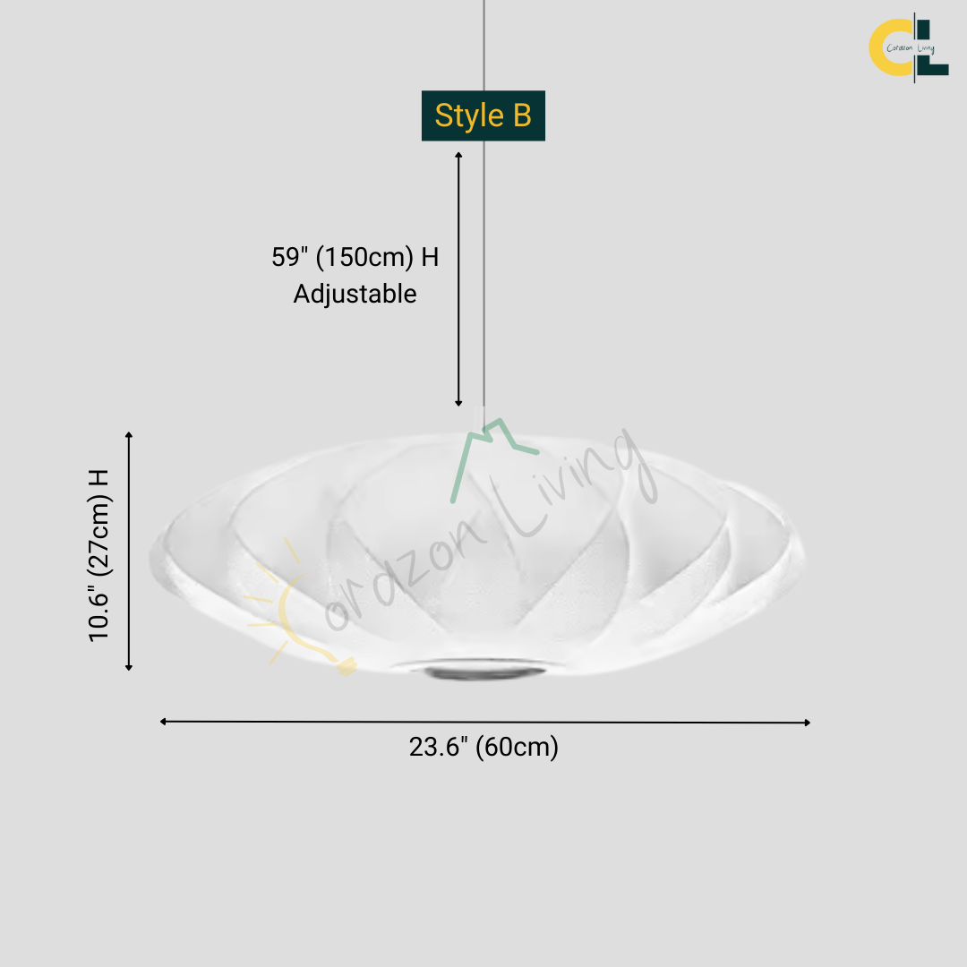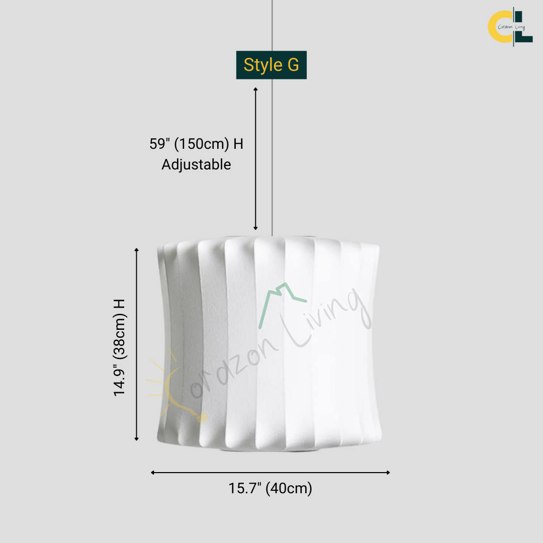 The Iska Japanese Pendant Light embodies minimalist elegance with its clean white silk cloth design, inspired by the timeless lamp style. Handcrafted with meticulous detail, its bubble silk shade diffuses light softly, creating a warm and serene atmosphere. Perfect for lofts, dining areas, living rooms, kitchens, and bedrooms, this pendant lamp brings a refined balance of Japanese simplicity and Scandinavian design. Its versatile suspension design makes it suitable for both modern and classic interiors.