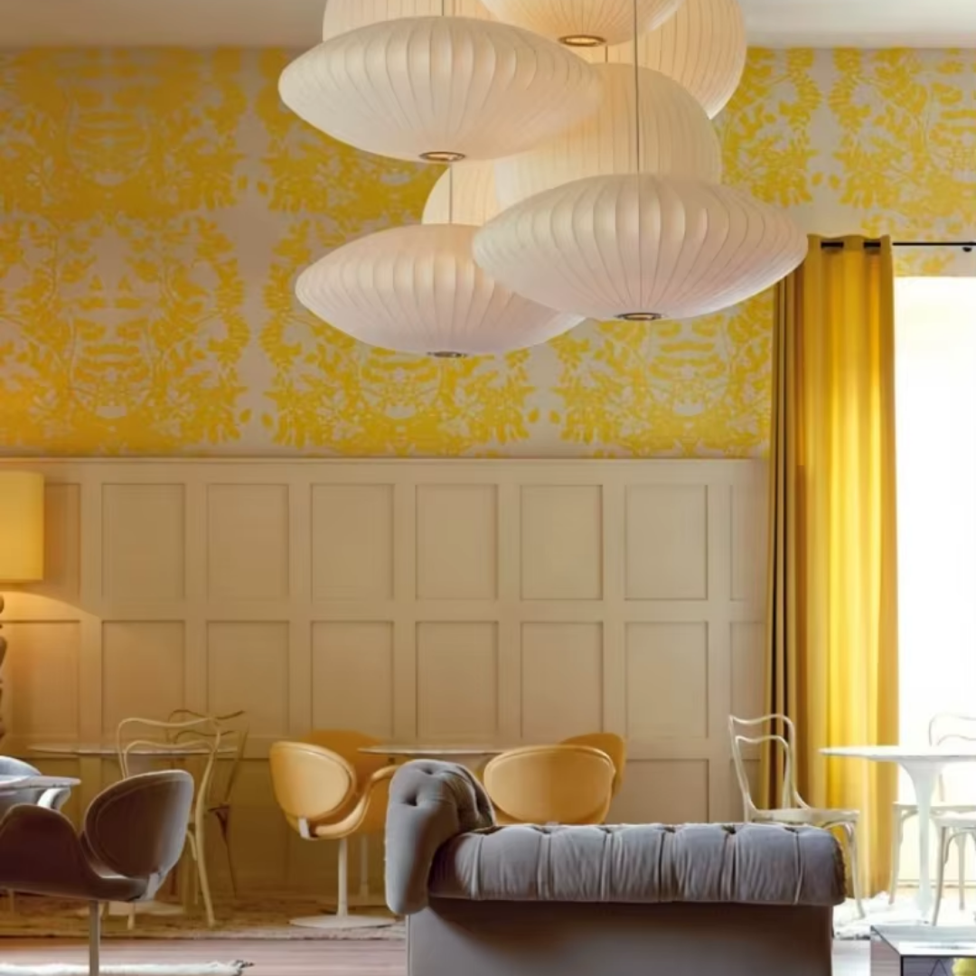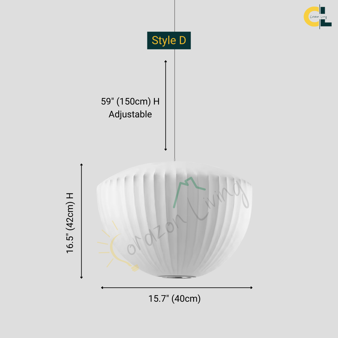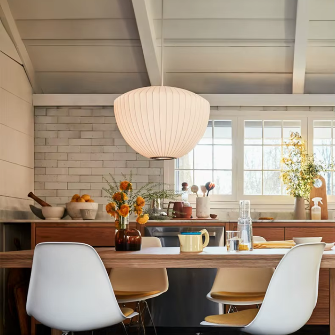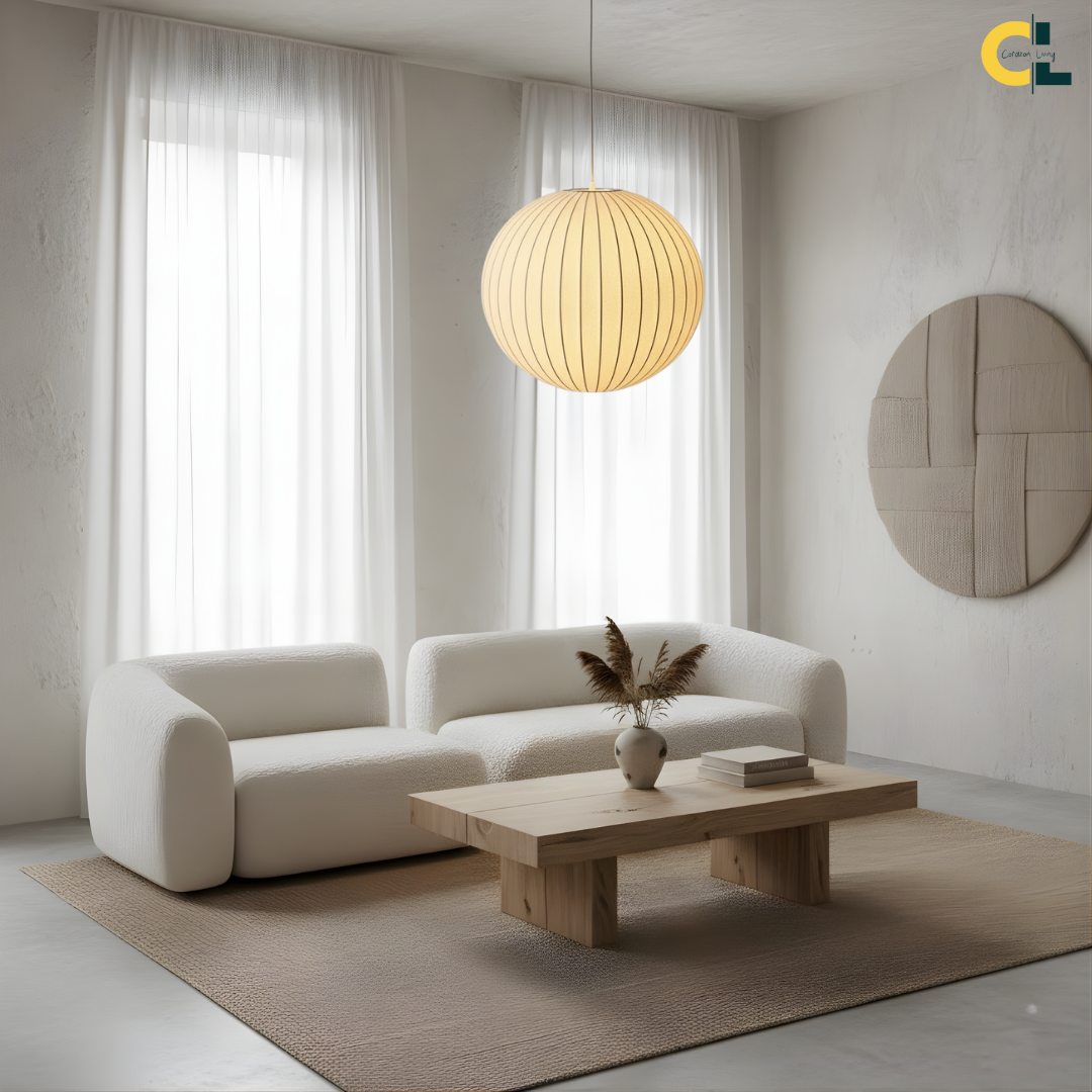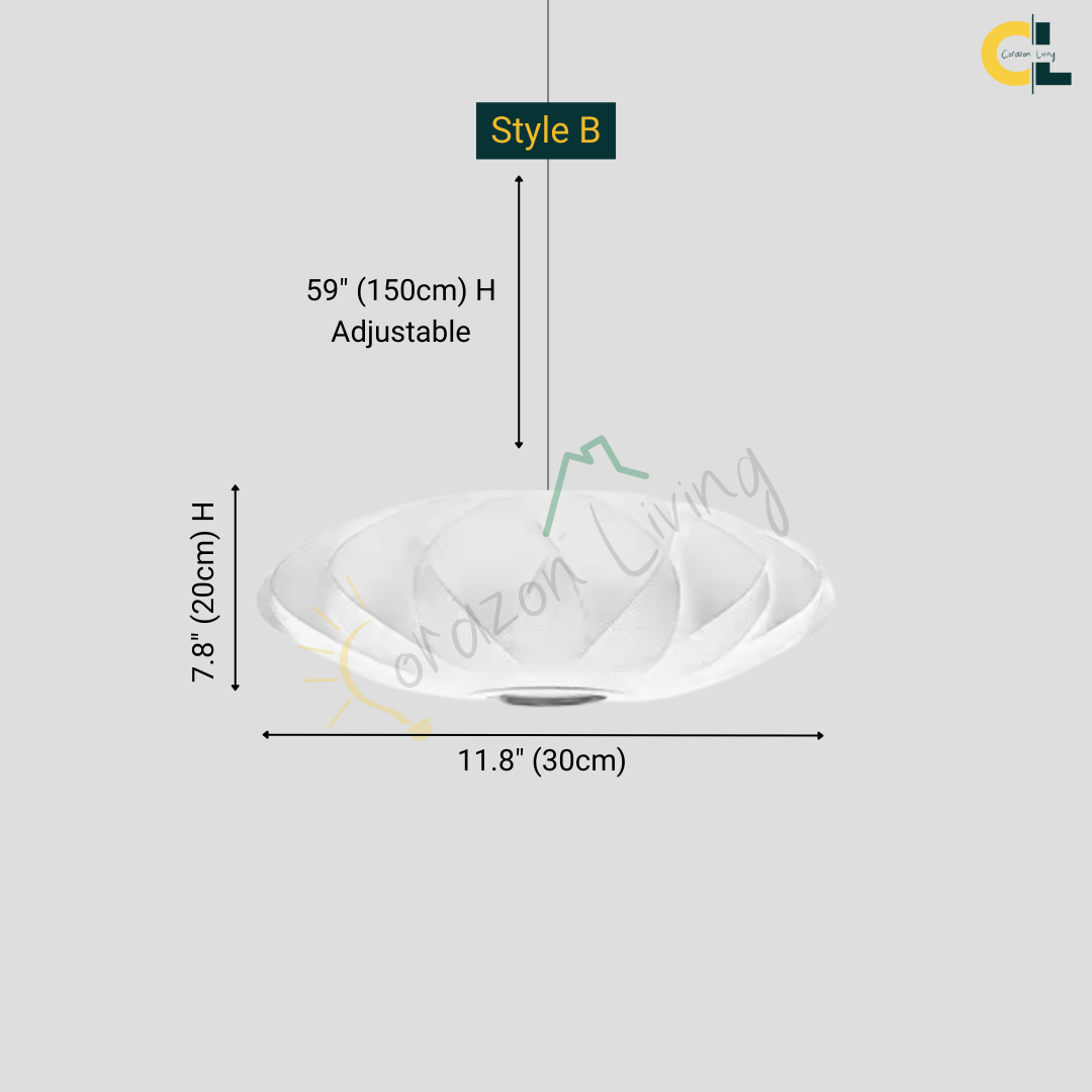 The Iska Japanese Pendant Light embodies minimalist elegance with its clean white silk cloth design, inspired by the timeless lamp style. Handcrafted with meticulous detail, its bubble silk shade diffuses light softly, creating a warm and serene atmosphere. Perfect for lofts, dining areas, living rooms, kitchens, and bedrooms, this pendant lamp brings a refined balance of Japanese simplicity and Scandinavian design. Its versatile suspension design makes it suitable for both modern and classic interiors.
