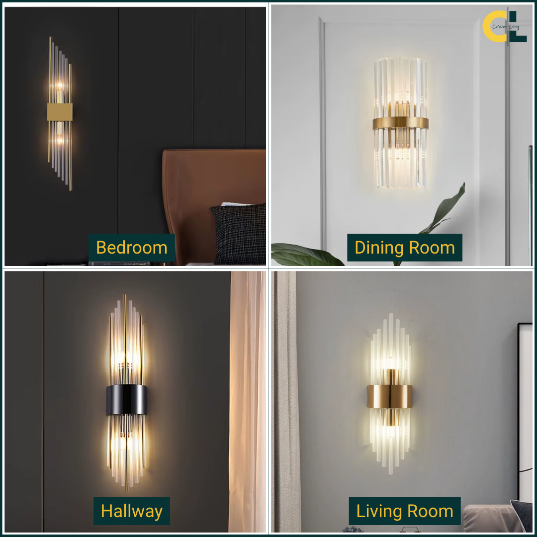 Blend contemporary elegance and timeless sophistication with a luxurious wall lamp featuring crystal accents and warm ambient LED lighting.