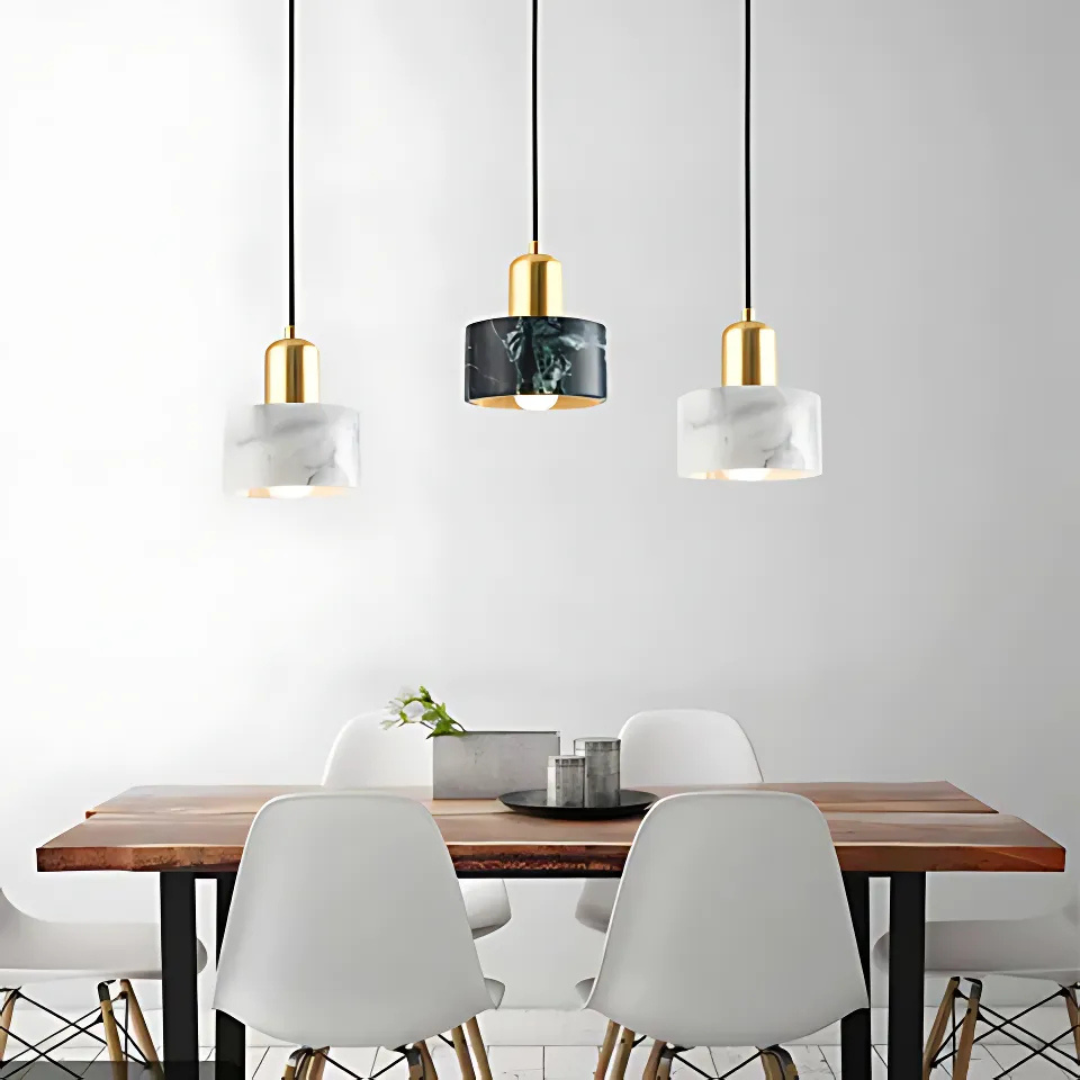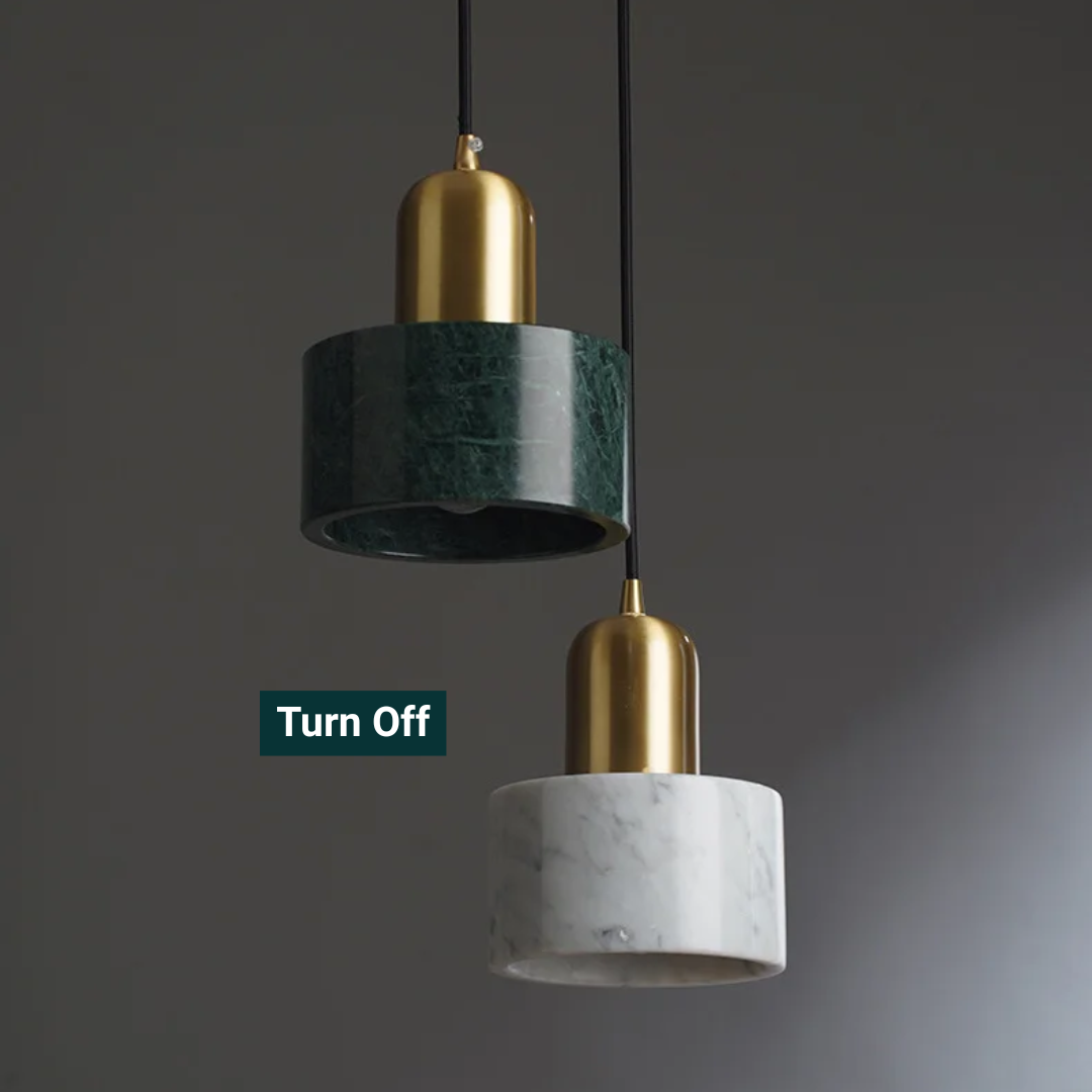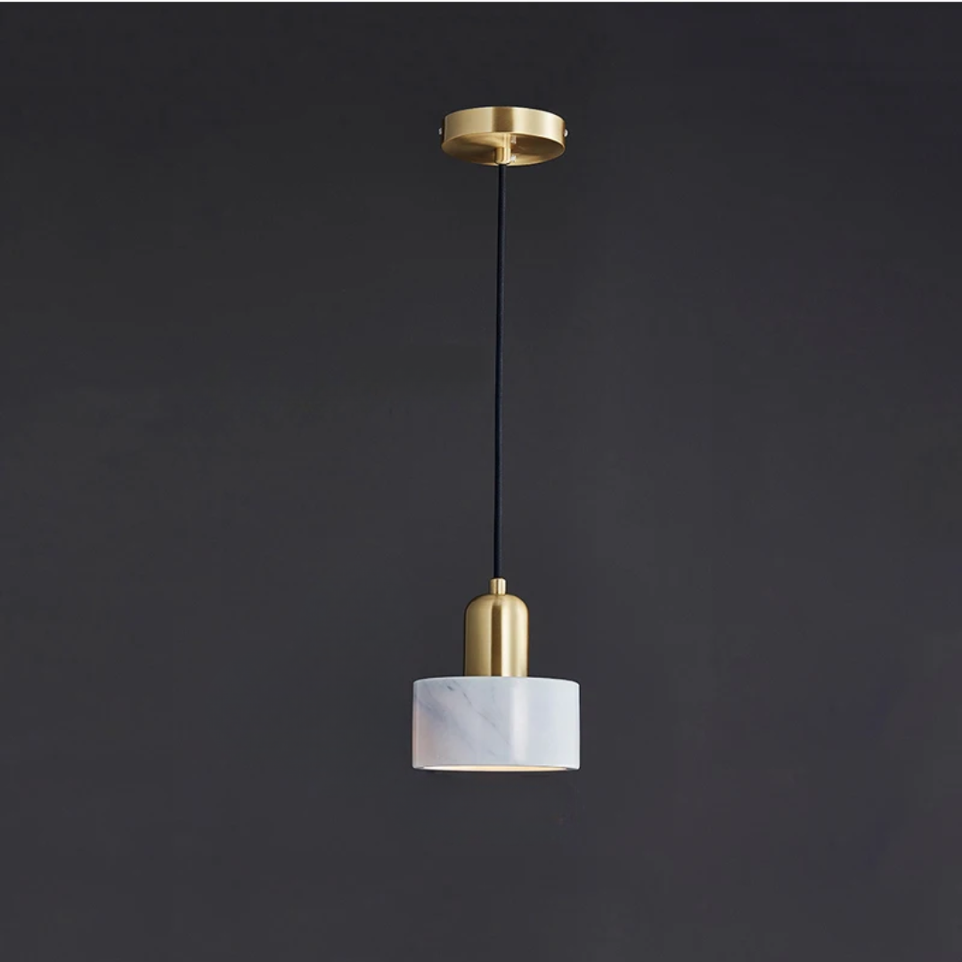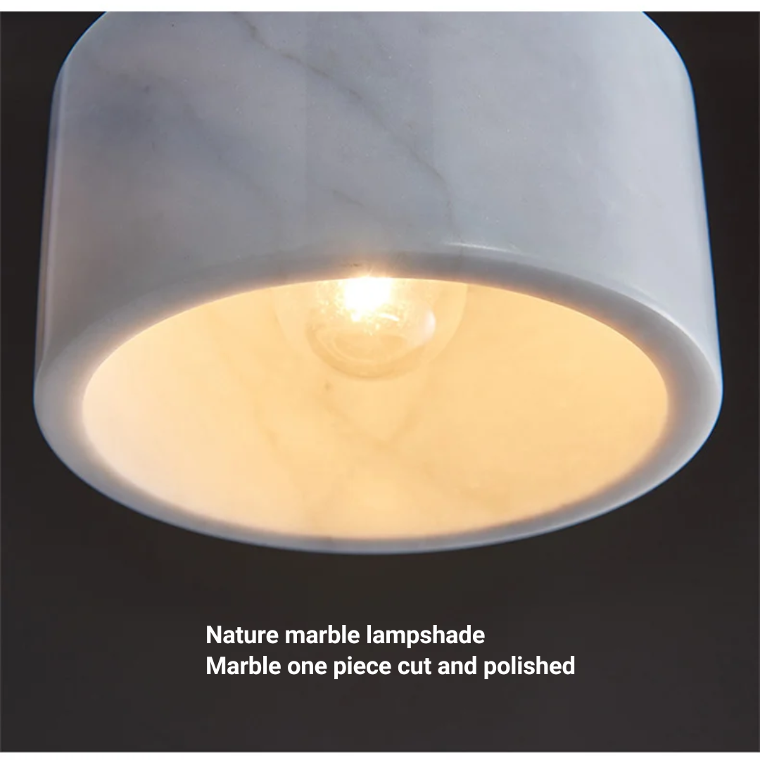 Refined pendant light featuring natural marble and metal, blending elegance with modern design..
