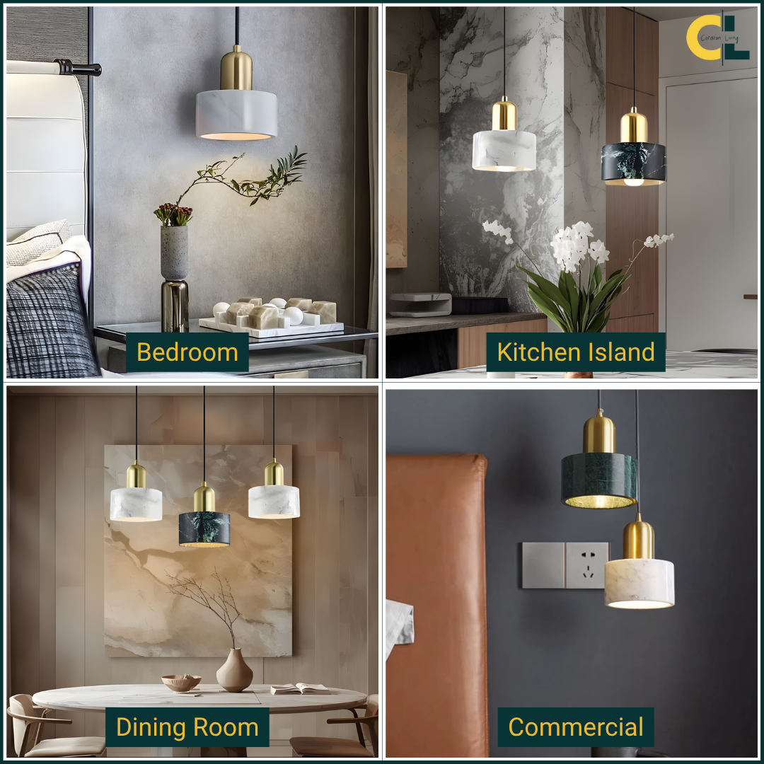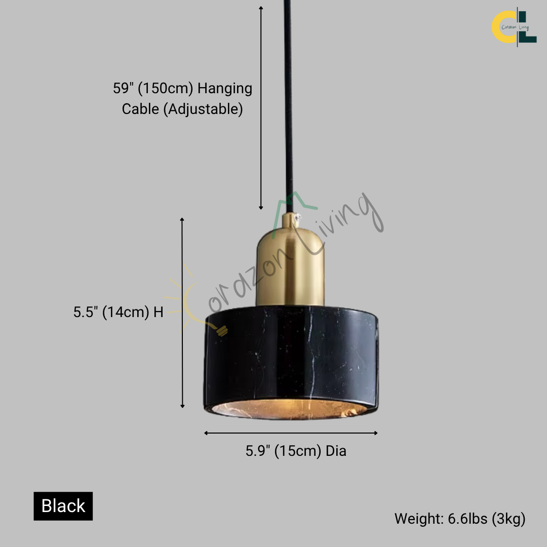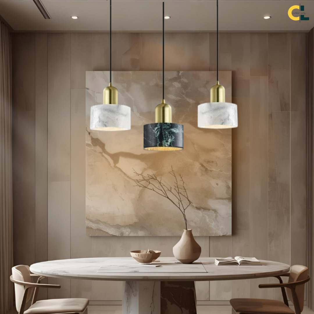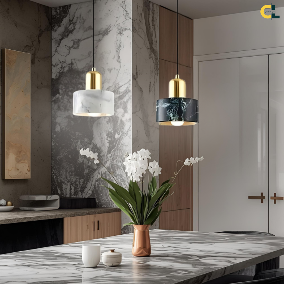 Refined pendant light featuring natural marble and metal, blending elegance with modern design..