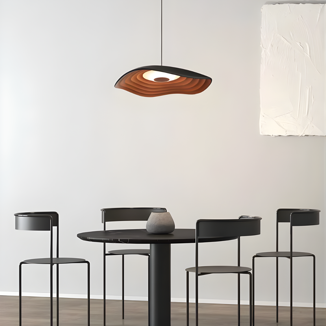 A Nordic-inspired sculptural pendant crafted from resin and iron, delivering smooth integrated LED illumination with warm, neutral, or cool white options in minimalist finishes.