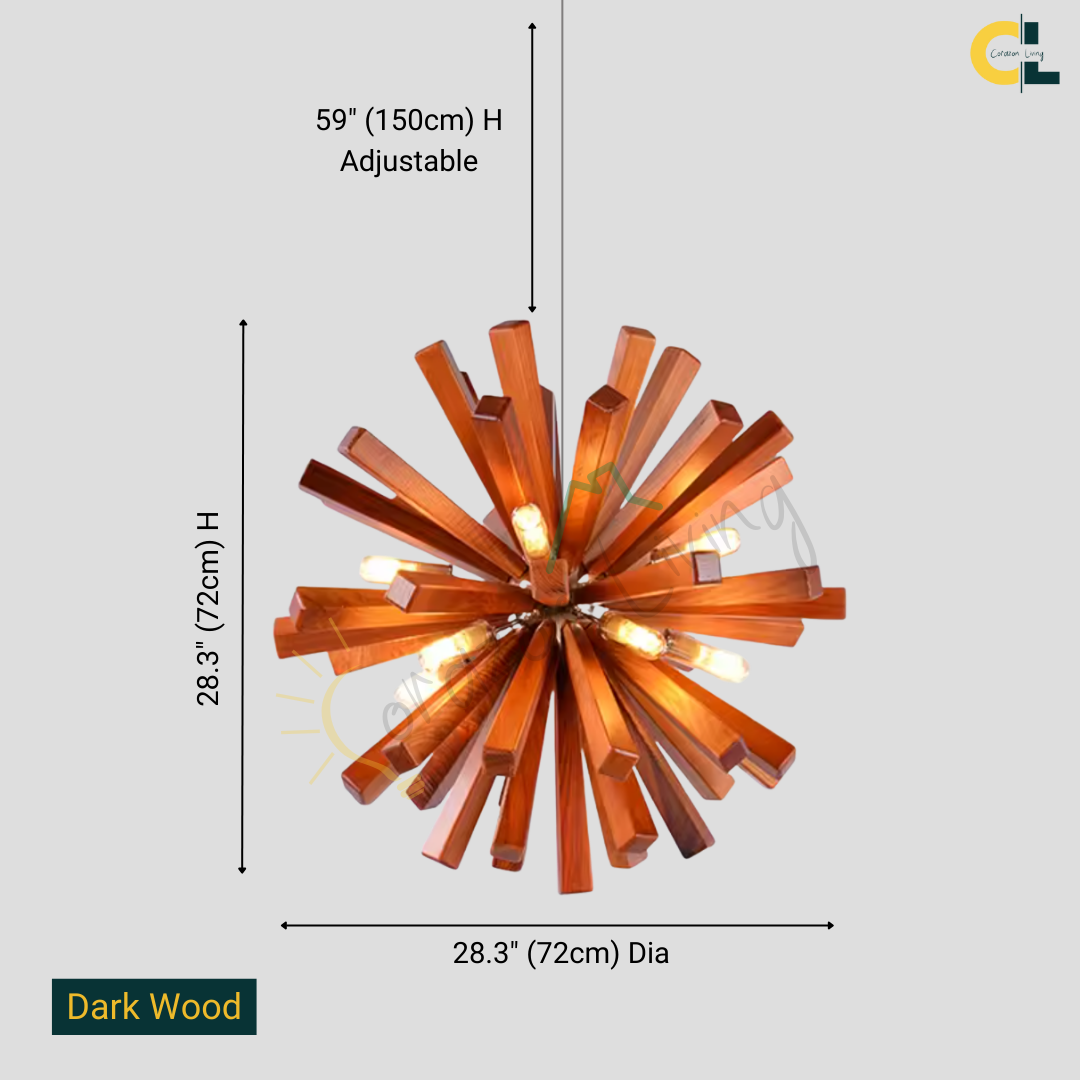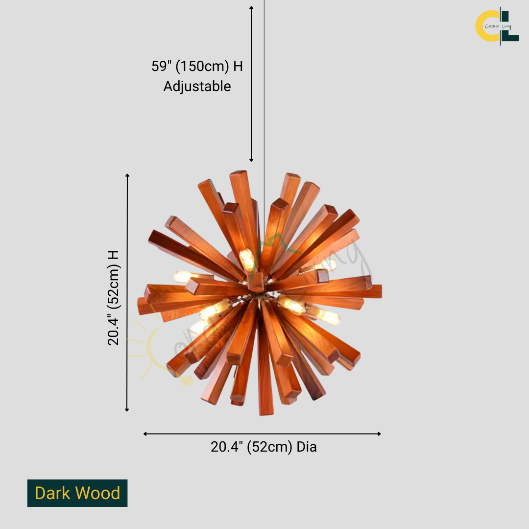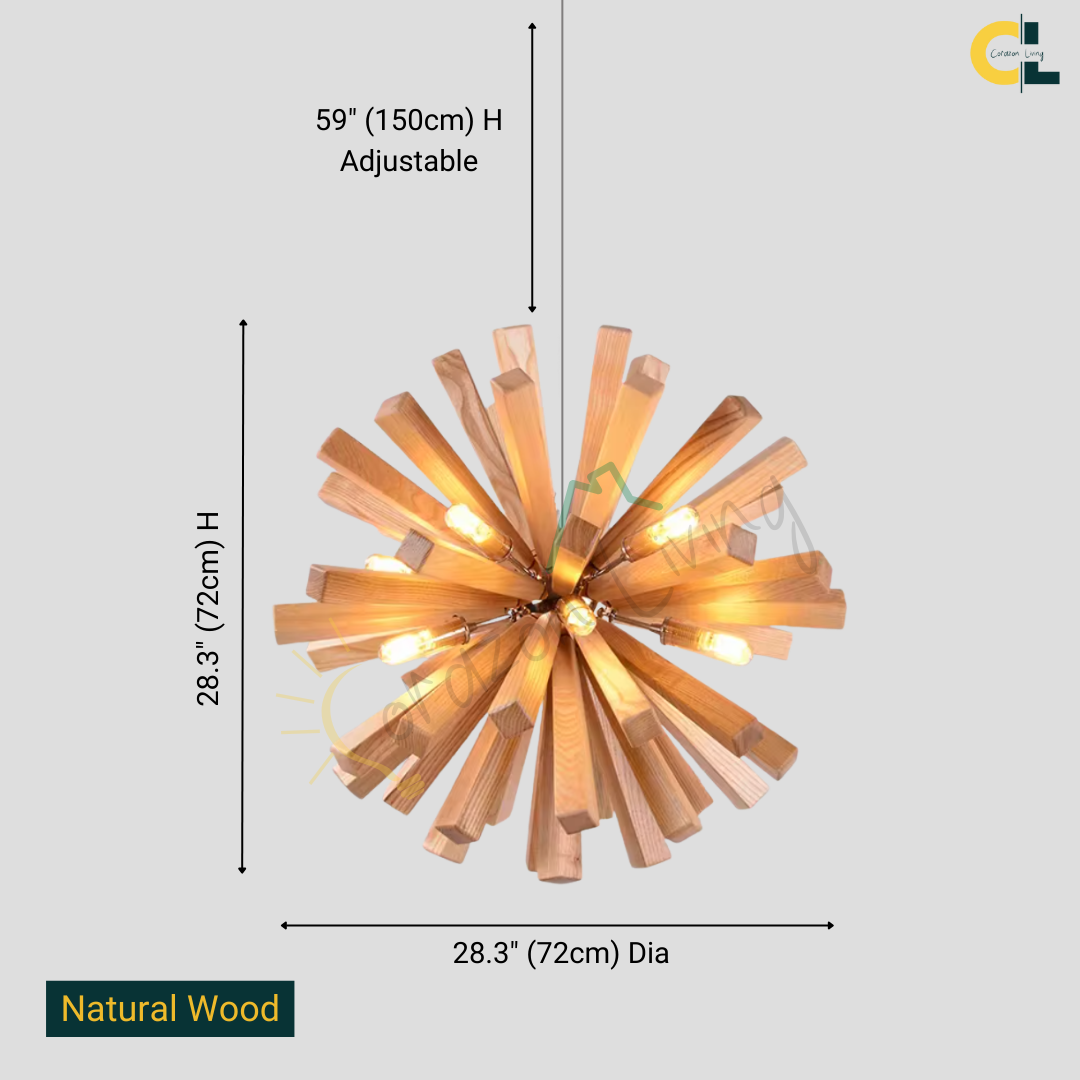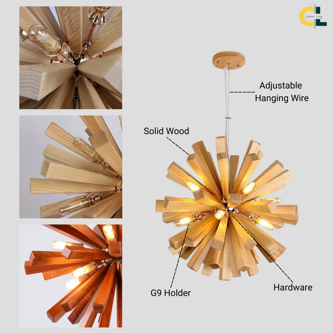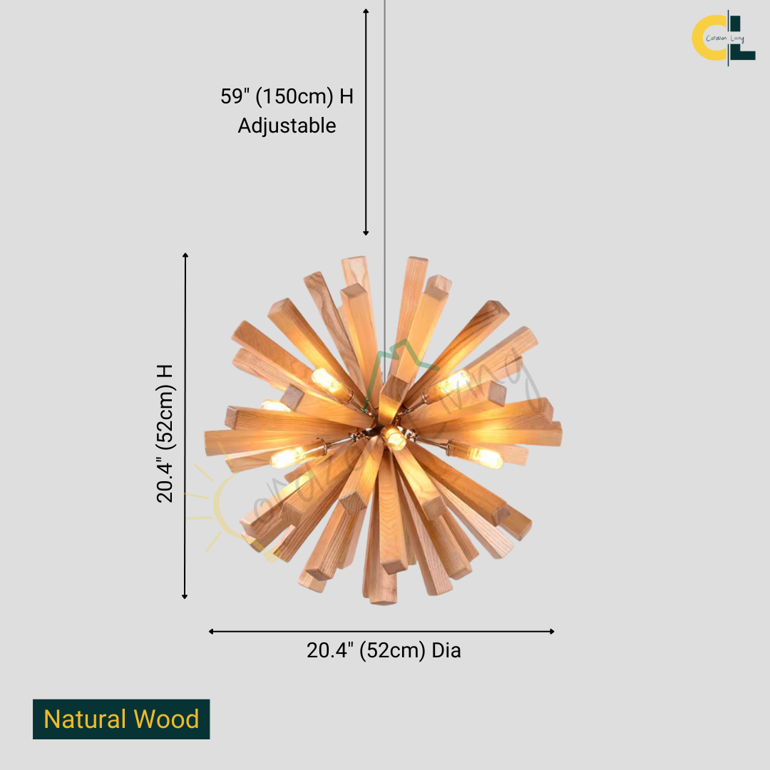 This rustic yet refined wooden pendant light features a satellite-style silhouette that diffuses light softly, creating a cozy, ambient glow. The perfect statement lighting for lovers of creative, handcrafted décor, it complements both modern and traditional interiors.
