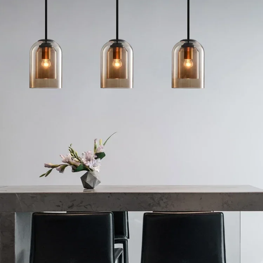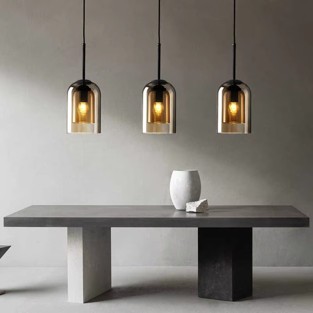 A refined blend of simplicity and elegance, this modern glass pendant light adds warmth and visual balance through its clean form and softly diffused illumination.