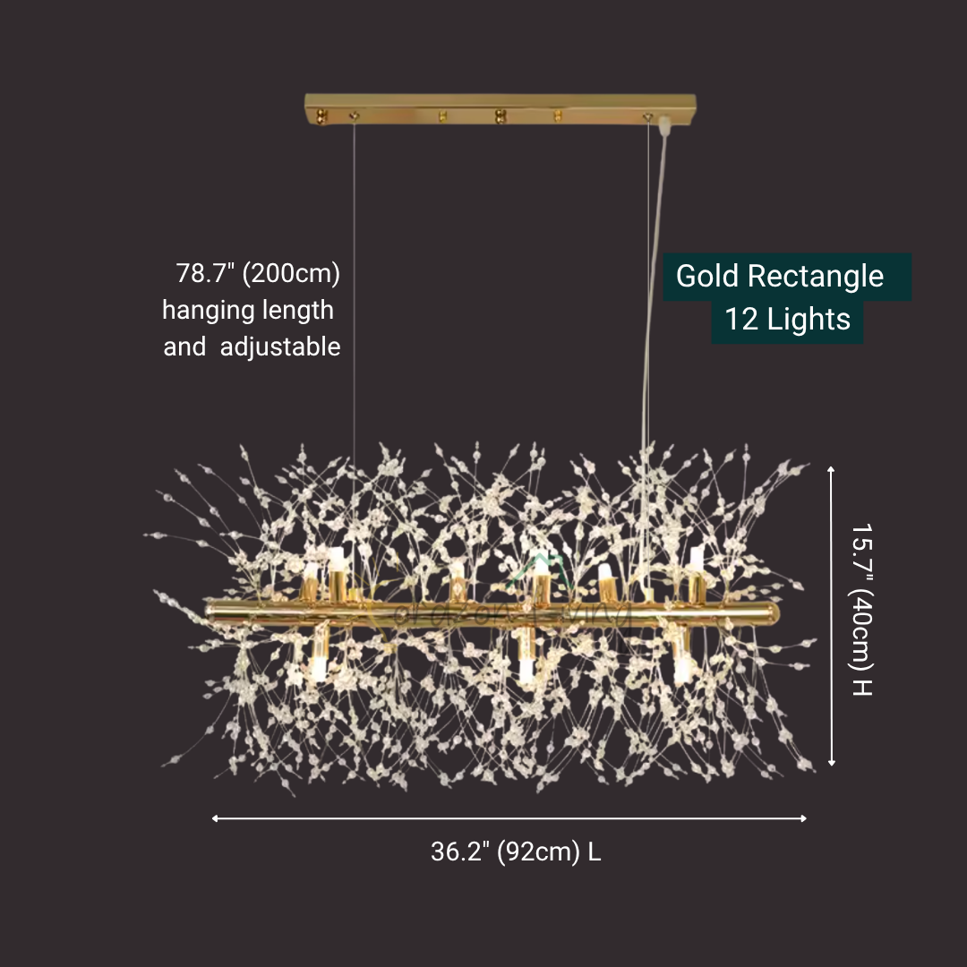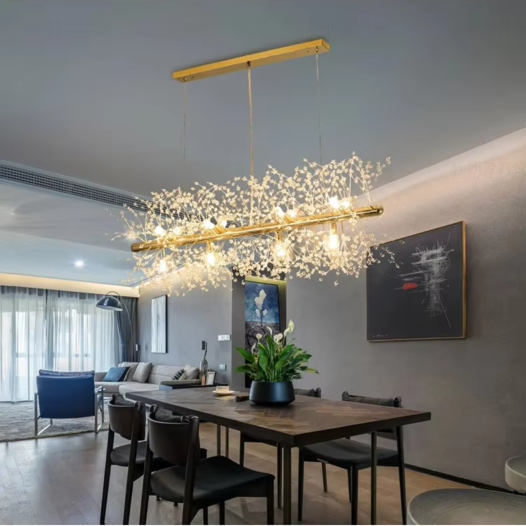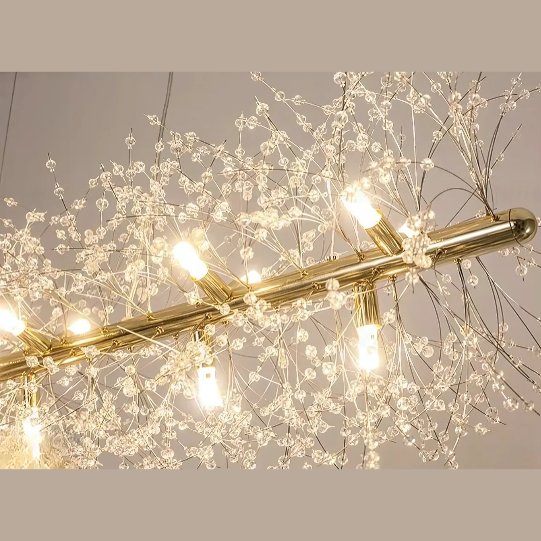 Its branch inspired design provides balanced illumination making it ideal for living spaces dining areas restaurants or boutique hotels. Available in chrome or gold finishes this chandelier features adjustable hanging cords for a refined contemporary look.