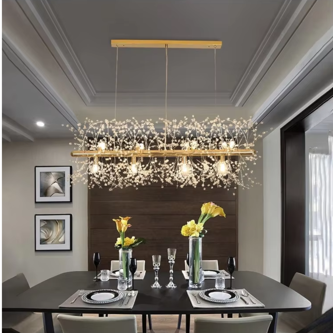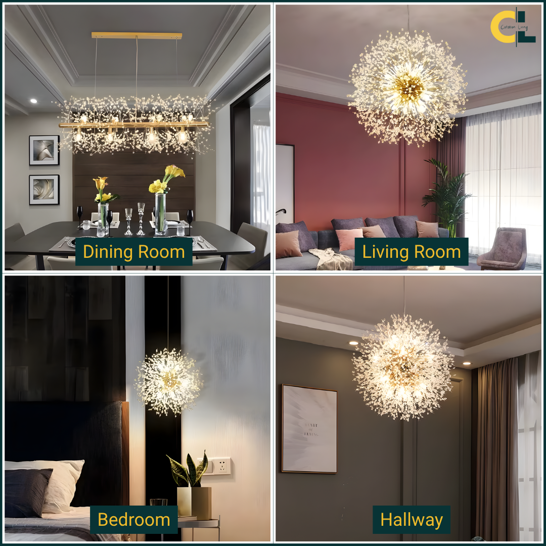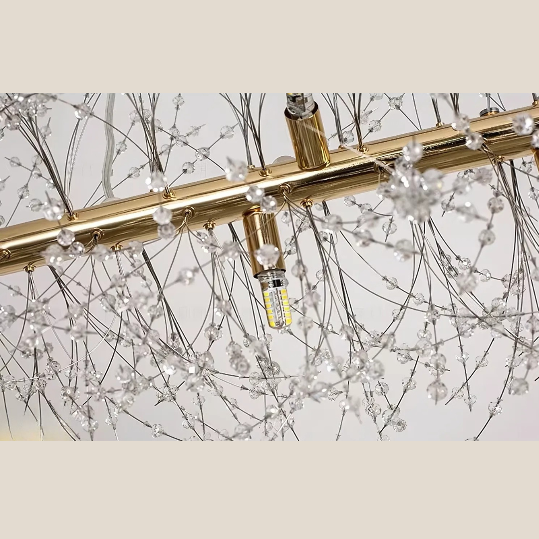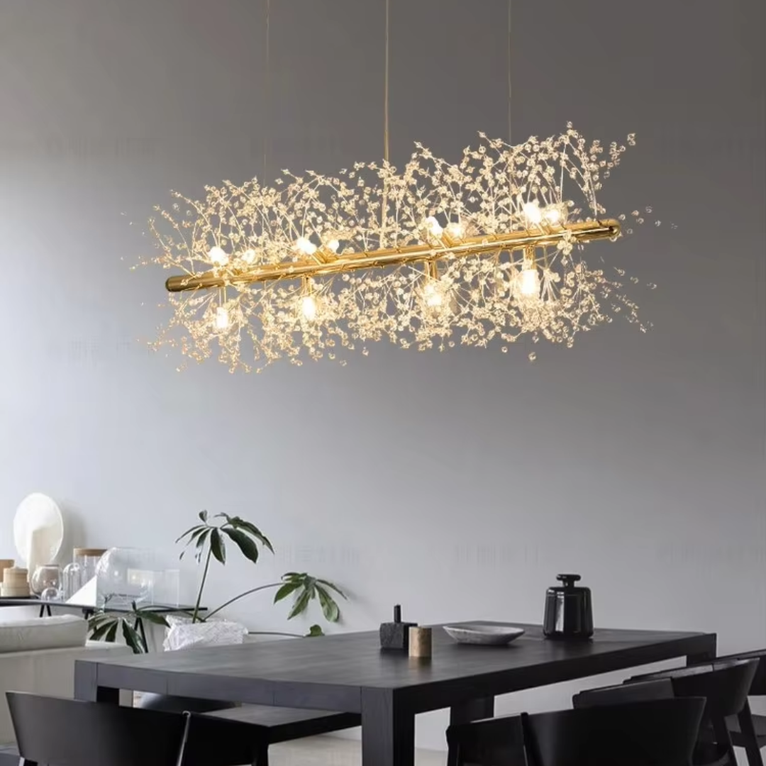 Its branch inspired design provides balanced illumination making it ideal for living spaces dining areas restaurants or boutique hotels. Available in chrome or gold finishes this chandelier features adjustable hanging cords for a refined contemporary look.