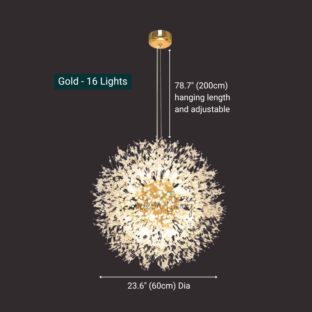 12 Lights: 21.6" (55cm) Dia x 78.7" (200cm) Hanging Length - 60W