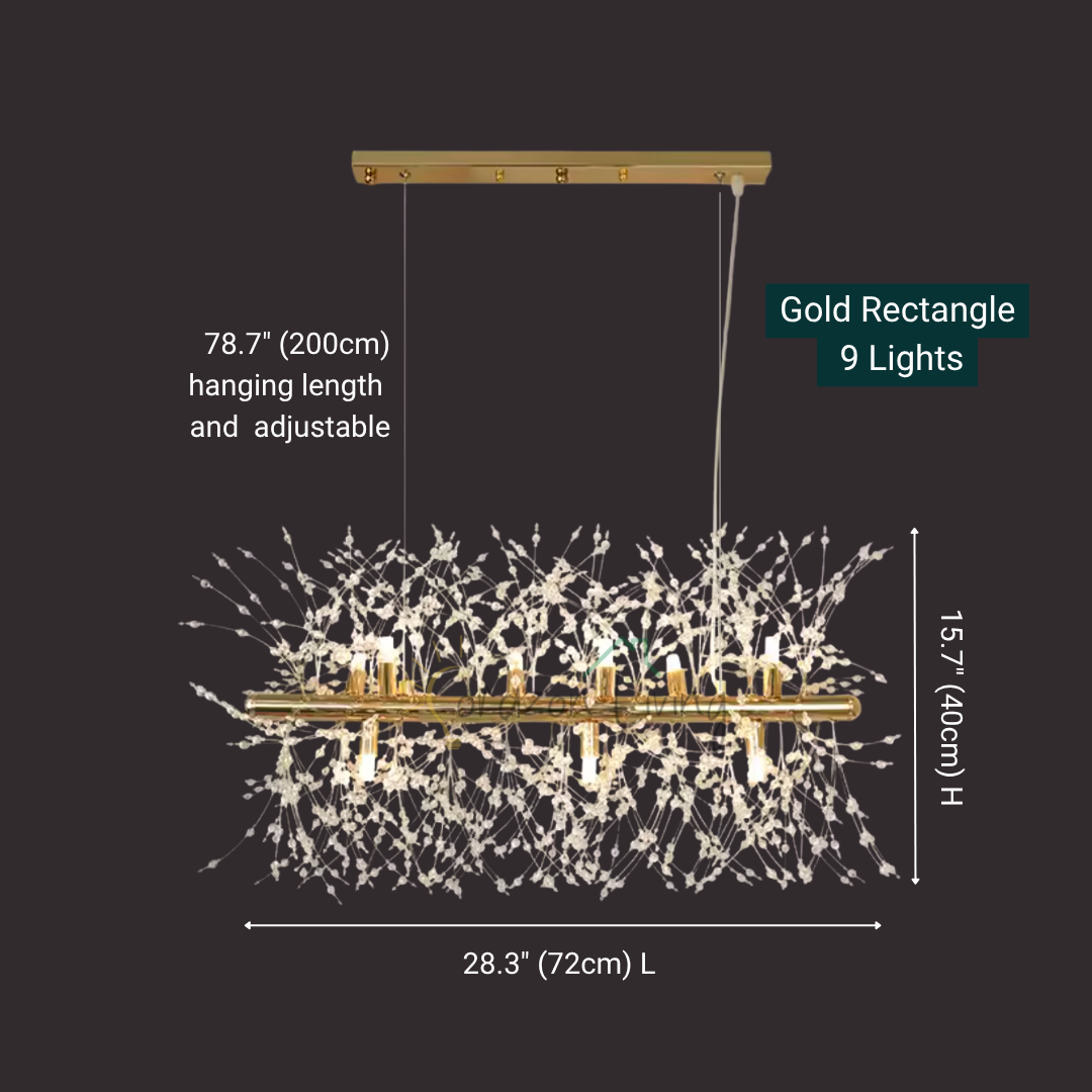 9 Lights: 28.3" (72cm) L x 15.7" (40cm) H x 78.7" (200cm) Hanging Length - 45W