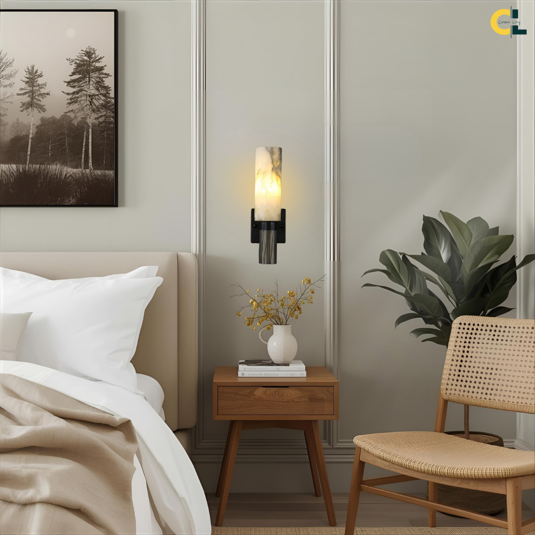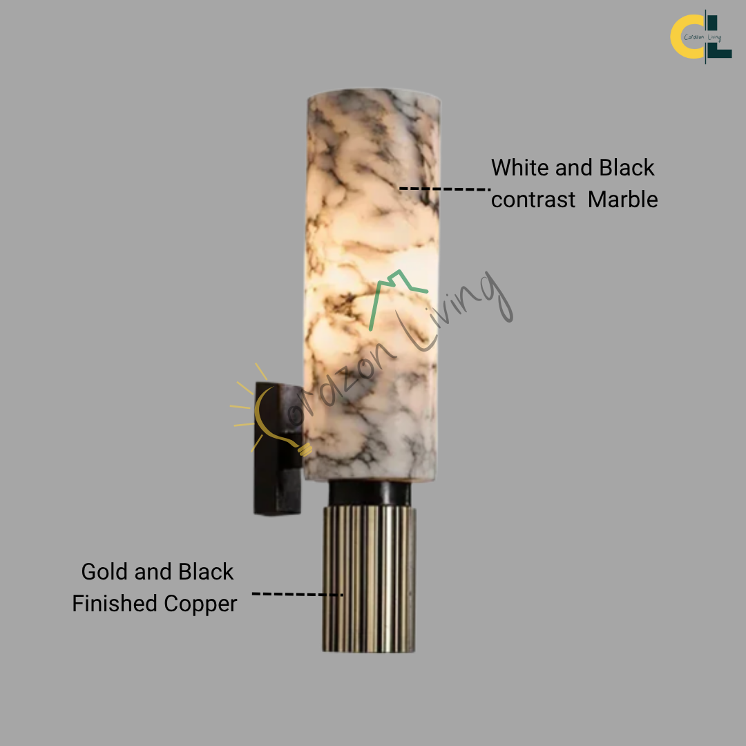 Elevate your space with this sleek and elegant Marbela marble modern wall lamp, thoughtfully designed to bring a minimalist touch to any interior. Crafted with a blend of copper and marble, its striking black-and-white contrast adds a sophisticated edge to contemporary spaces.