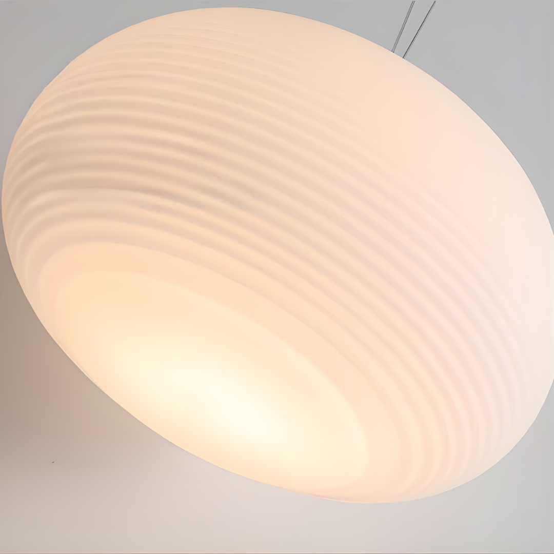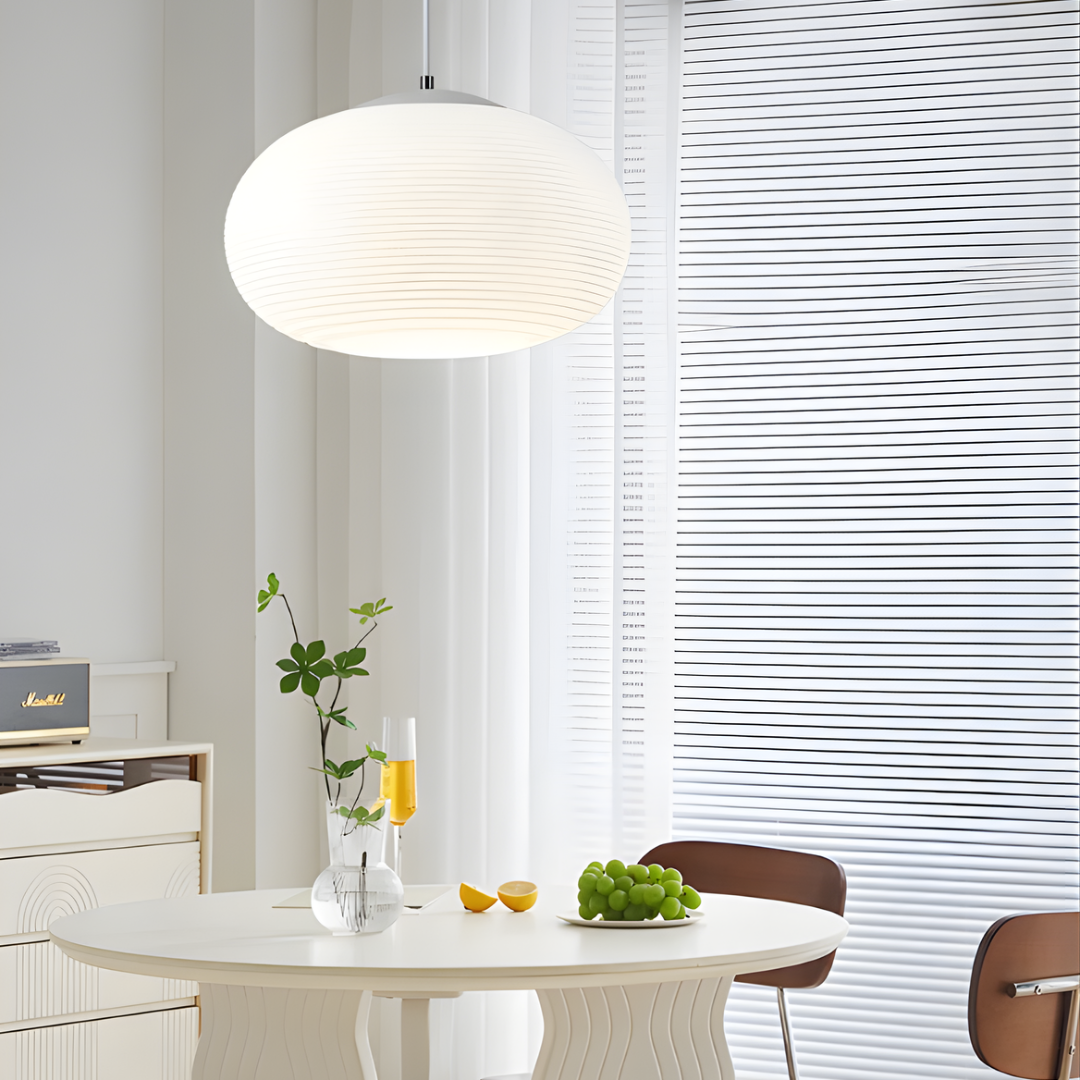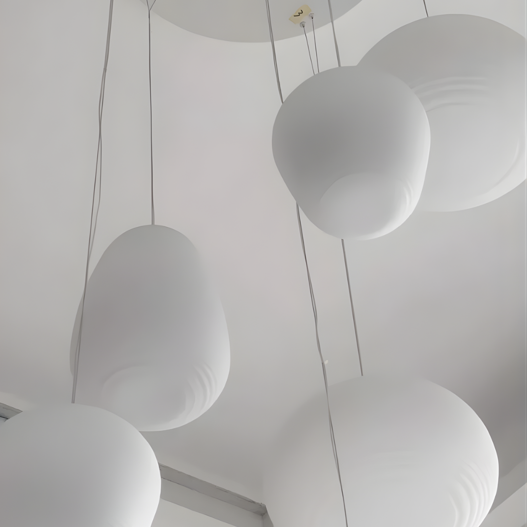 Modern design with smooth milky white glass shades creates warm, inviting illumination for versatile interior spaces.