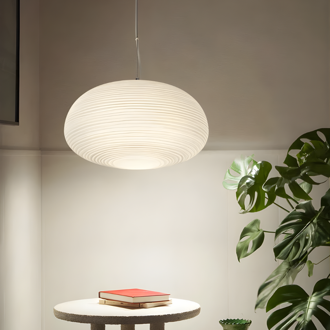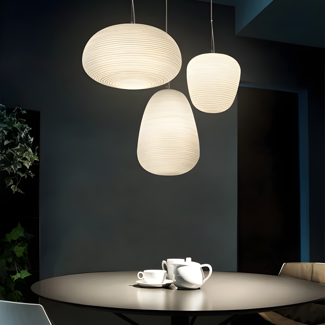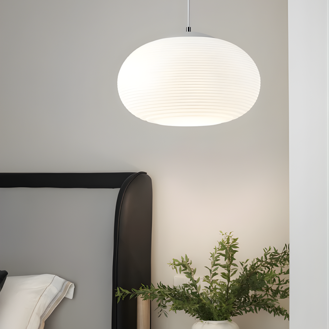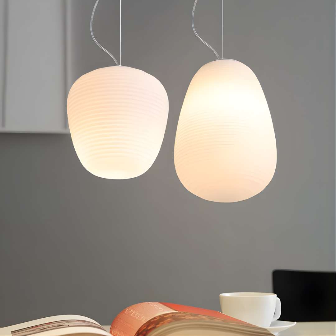 Modern design with smooth milky white glass shades creates warm, inviting illumination for versatile interior spaces.