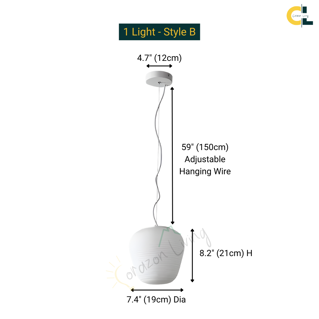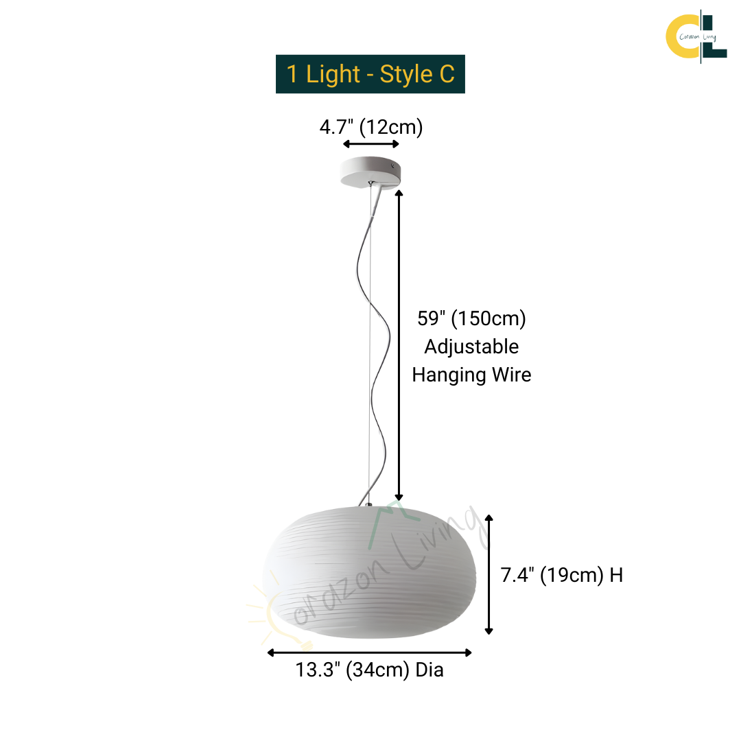 Style: Diameter x Height x Weight - WattageStyle A: 9.4" (23cm) Dia x 13.3" (34cm) H x 6.6 lbs (3 kg) - 15W