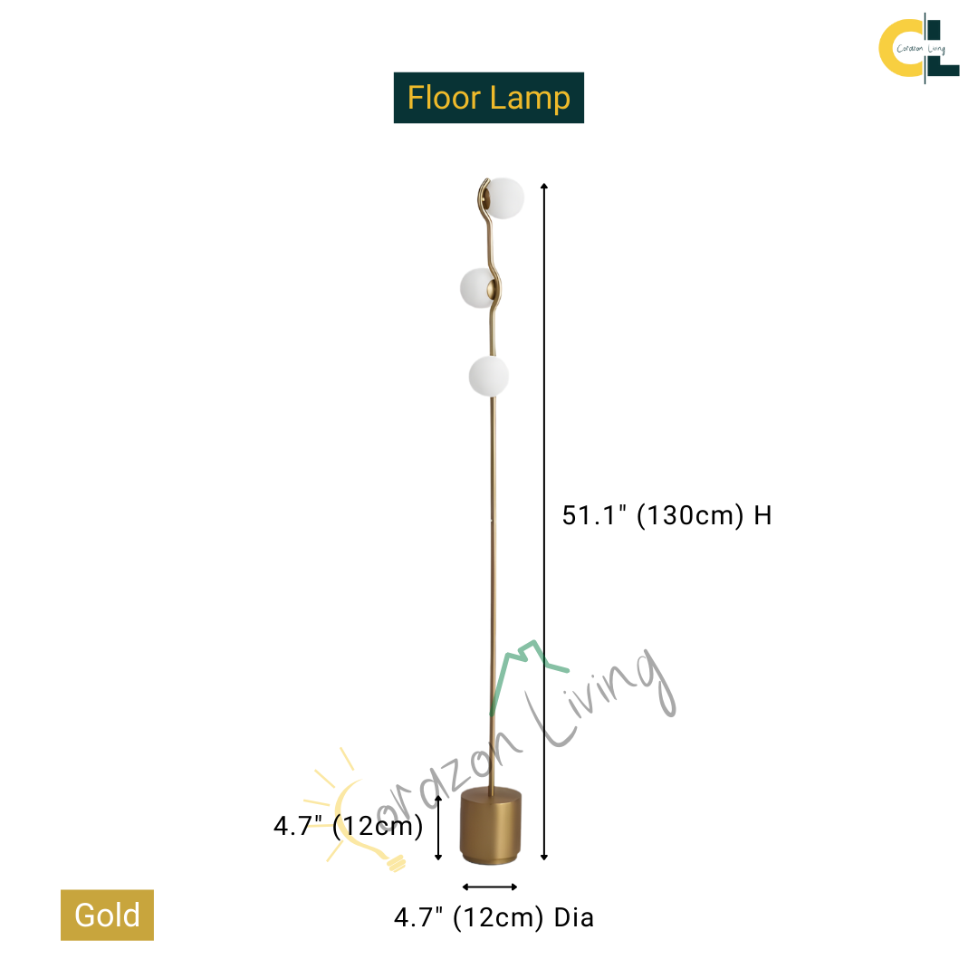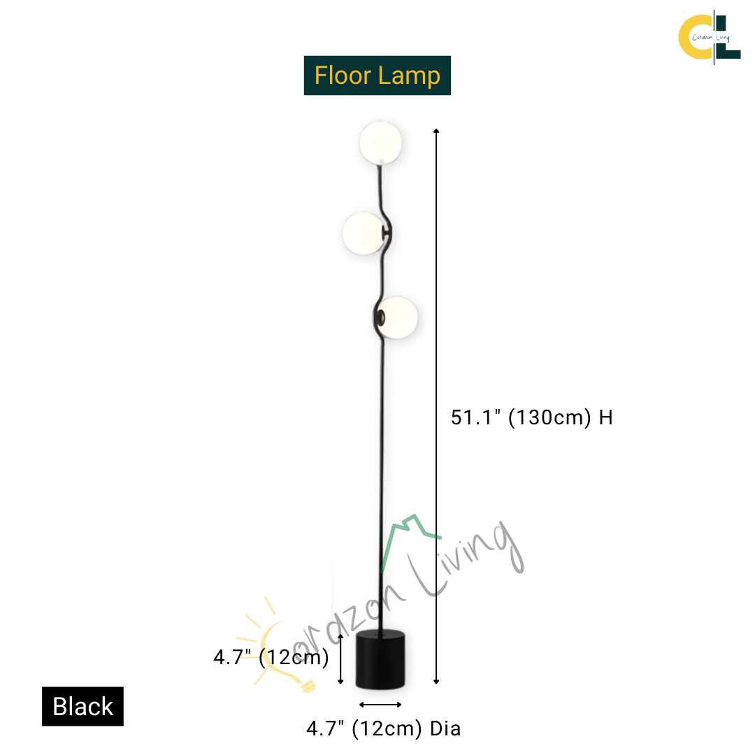 Floor Lamp: 4.7" (12cm) Dia x 51.1" (130cm) H x 14 lbs (6.3 kg) - 15W
