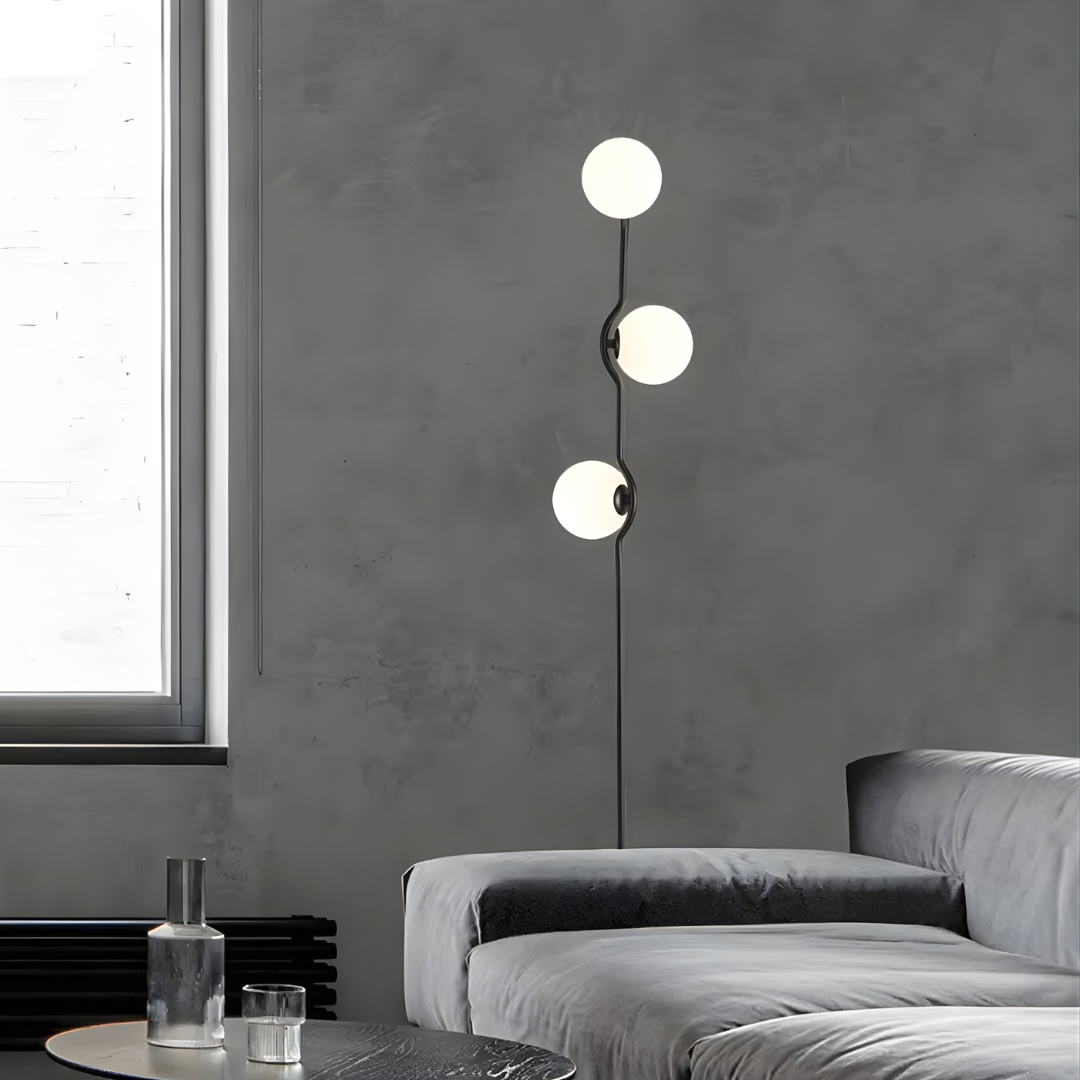 Slender iron rod silhouette with refined glass shades