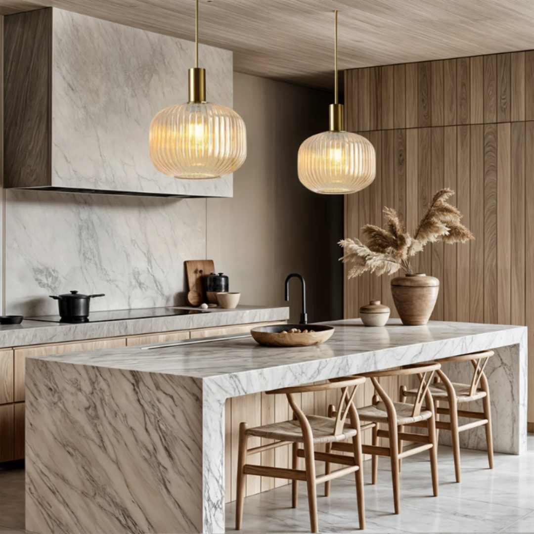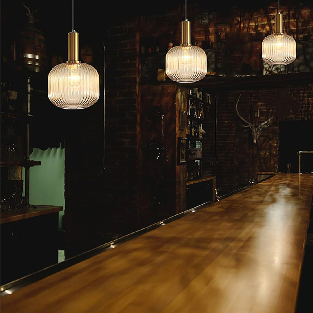 Elevate your space with this stylish Mira Fluted Pendant Light- a perfect blend of retro charm and modern design. Crafted with a sleek metal frame and fluted glass shade, this hanging lamp adds a warm, sophisticated glow to any interior. Ideal for restaurants, cafes, pubs, or cozy corners at home, its versatile look fits a range of aesthetics- from American vintage to Nordic minimalism.