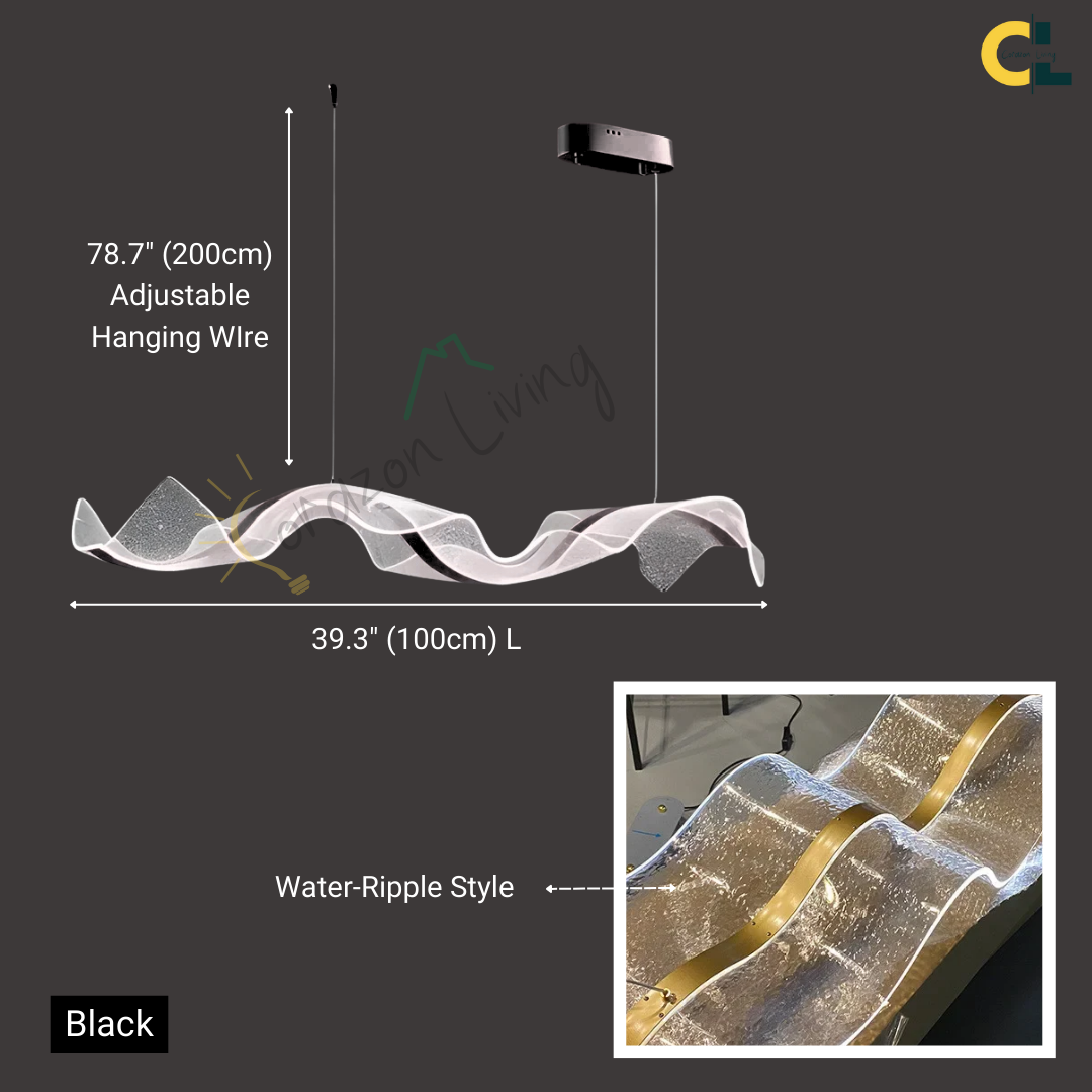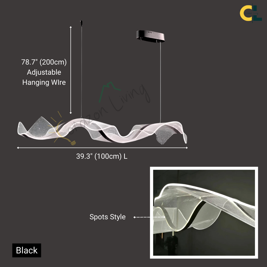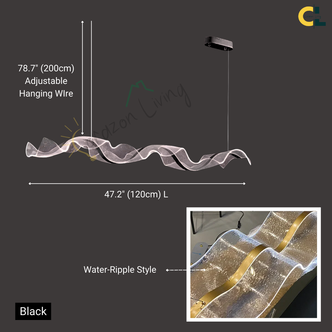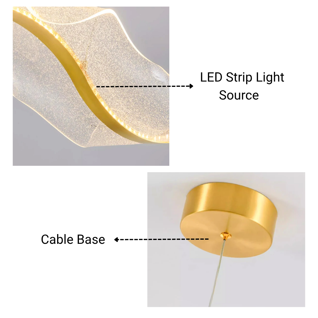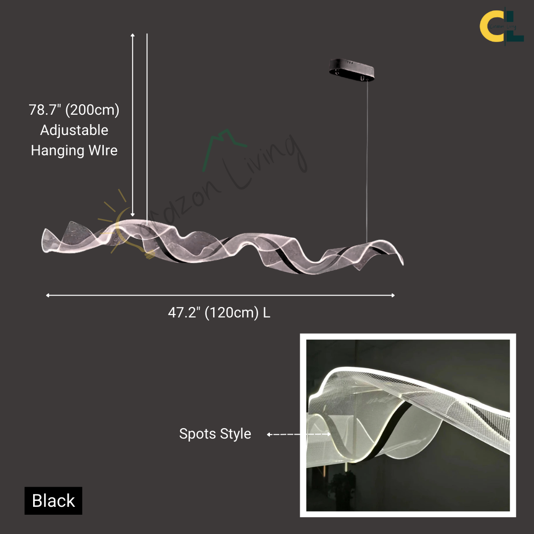 Add a sculptural statement to your space with this Mirenne modern acrylic ribbon LED chandelier, designed with a flowing wave form that blends elegance and innovation. The dynamic shape creates a striking visual impact while providing soft, energy-efficient illumination. Available in luxurious gold finishes, this hanging light fixture is ideal for dining rooms, kitchen islands, living rooms, and home bars. Crafted from durable acrylic and metal, this chandelier brings modern sophistication and functional lighting into contemporary interiors.