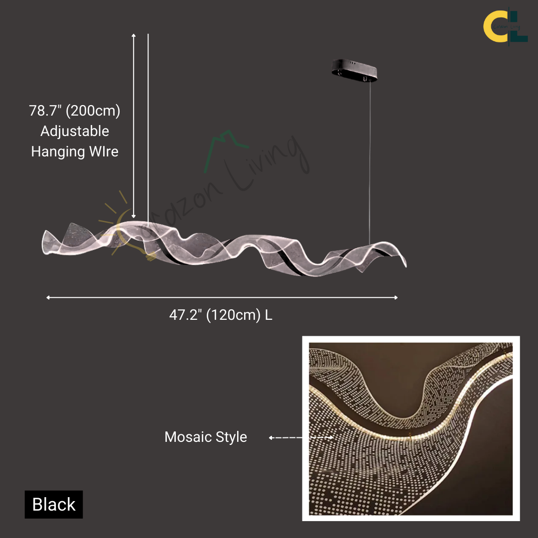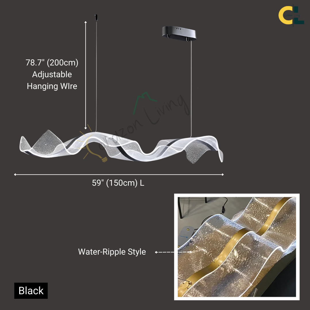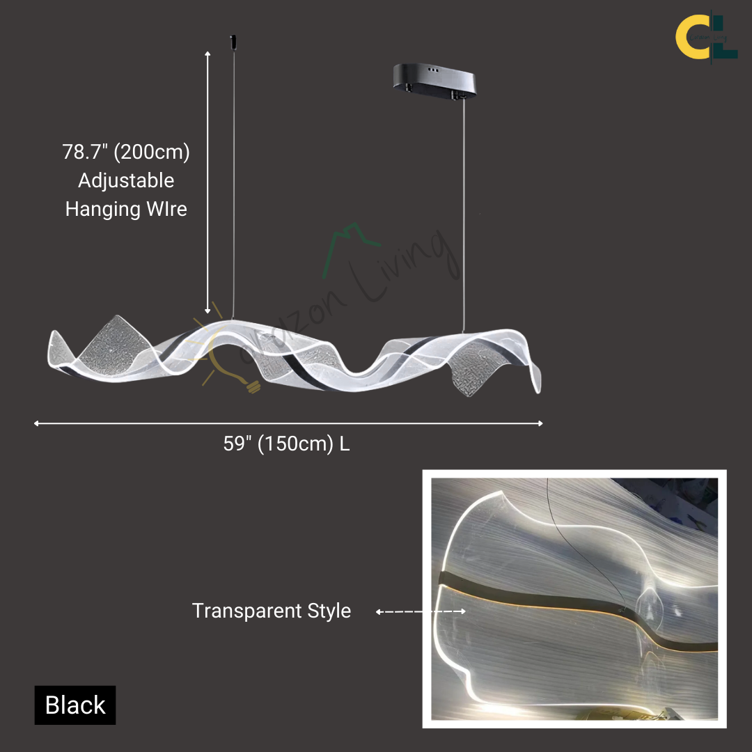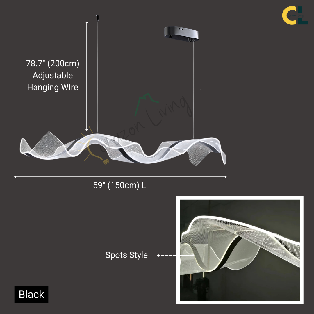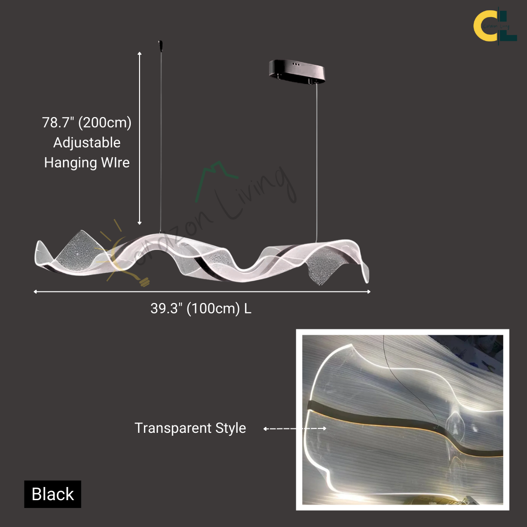 Add a sculptural statement to your space with this Mirenne modern acrylic ribbon LED chandelier, designed with a flowing wave form that blends elegance and innovation. The dynamic shape creates a striking visual impact while providing soft, energy-efficient illumination. Available in luxurious gold finishes, this hanging light fixture is ideal for dining rooms, kitchen islands, living rooms, and home bars. Crafted from durable acrylic and metal, this chandelier brings modern sophistication and functional lighting into contemporary interiors.