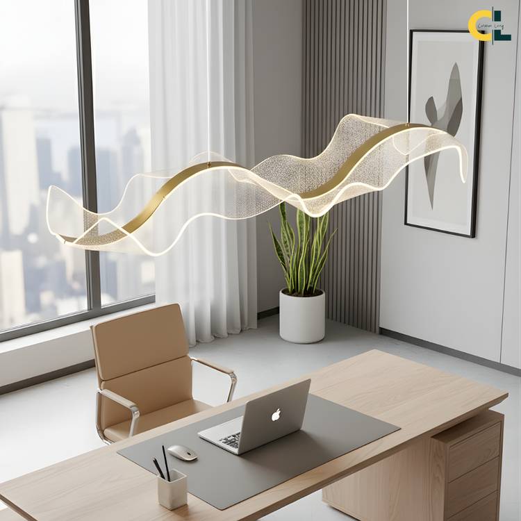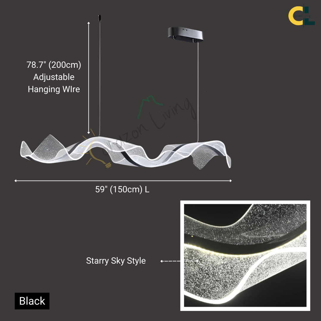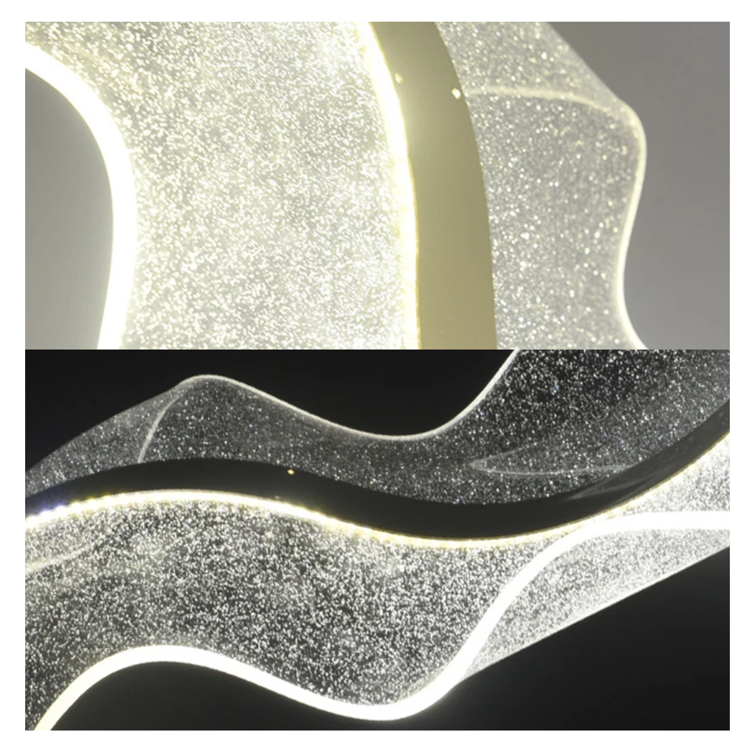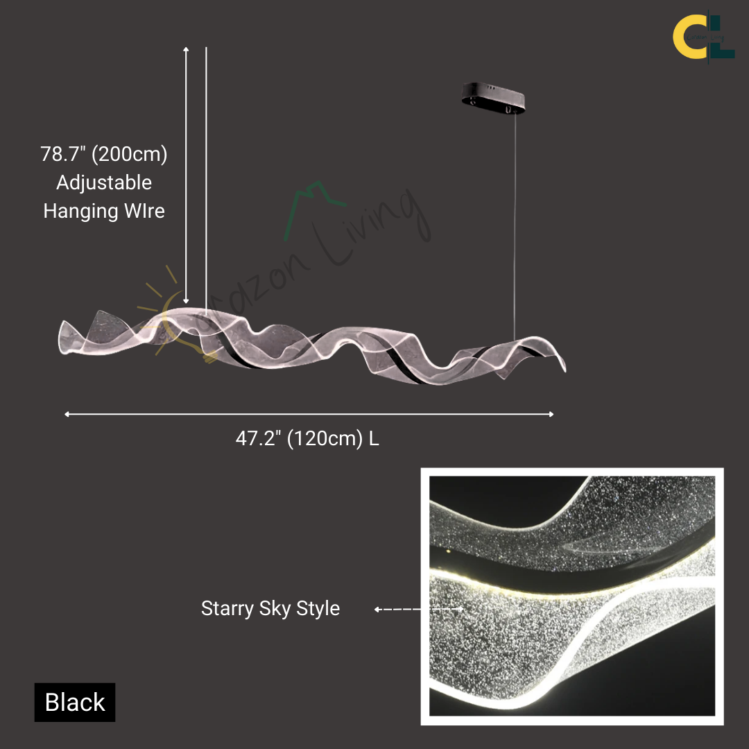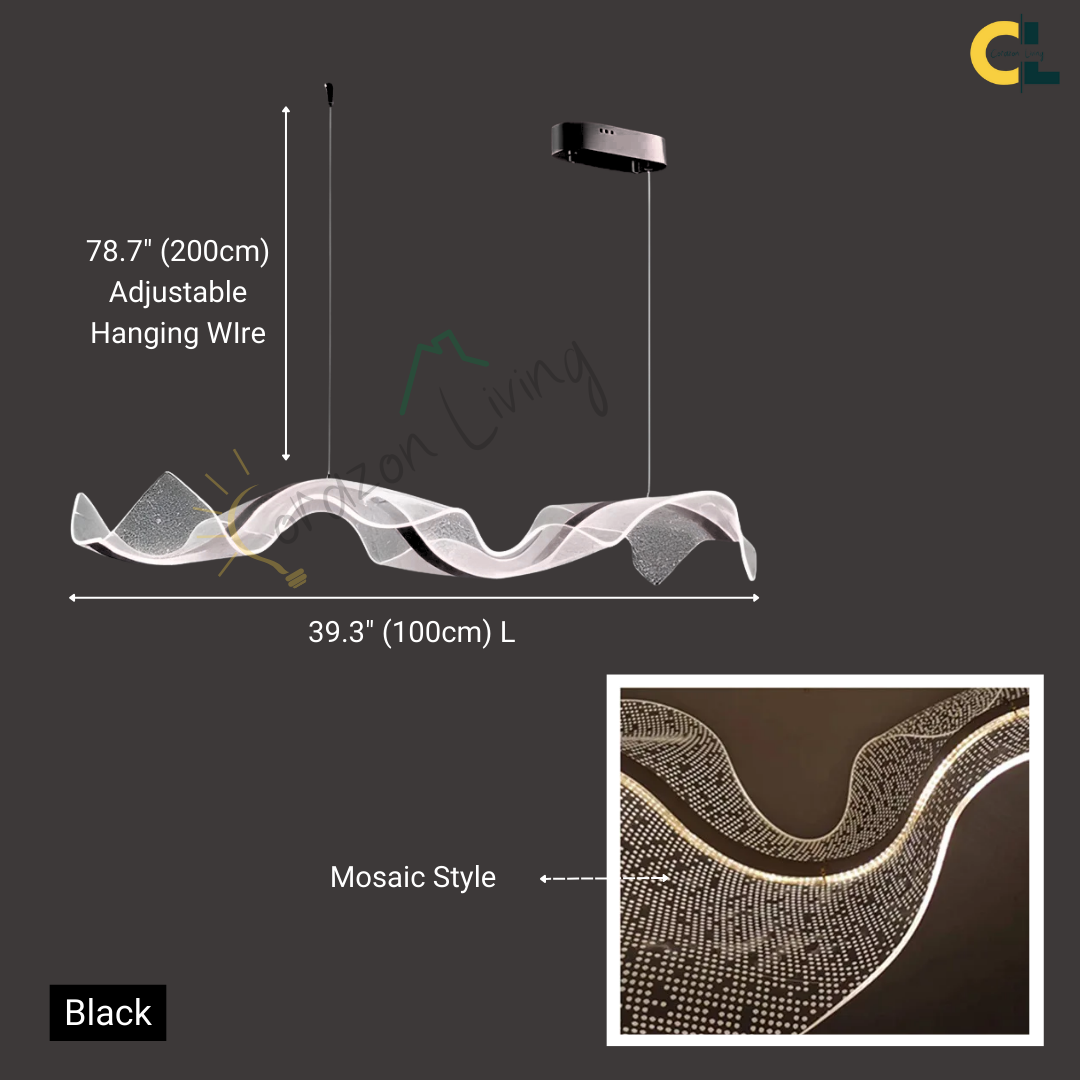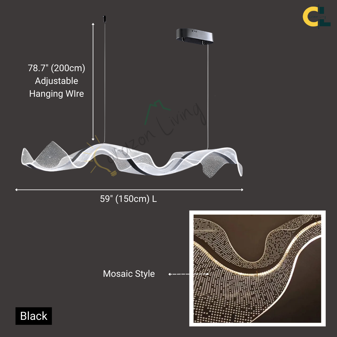Add a sculptural statement to your space with this Mirenne modern acrylic ribbon LED chandelier, designed with a flowing wave form that blends elegance and innovation. The dynamic shape creates a striking visual impact while providing soft, energy-efficient illumination. Available in luxurious gold finishes, this hanging light fixture is ideal for dining rooms, kitchen islands, living rooms, and home bars. Crafted from durable acrylic and metal, this chandelier brings modern sophistication and functional lighting into contemporary interiors.