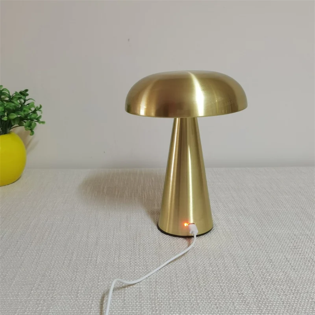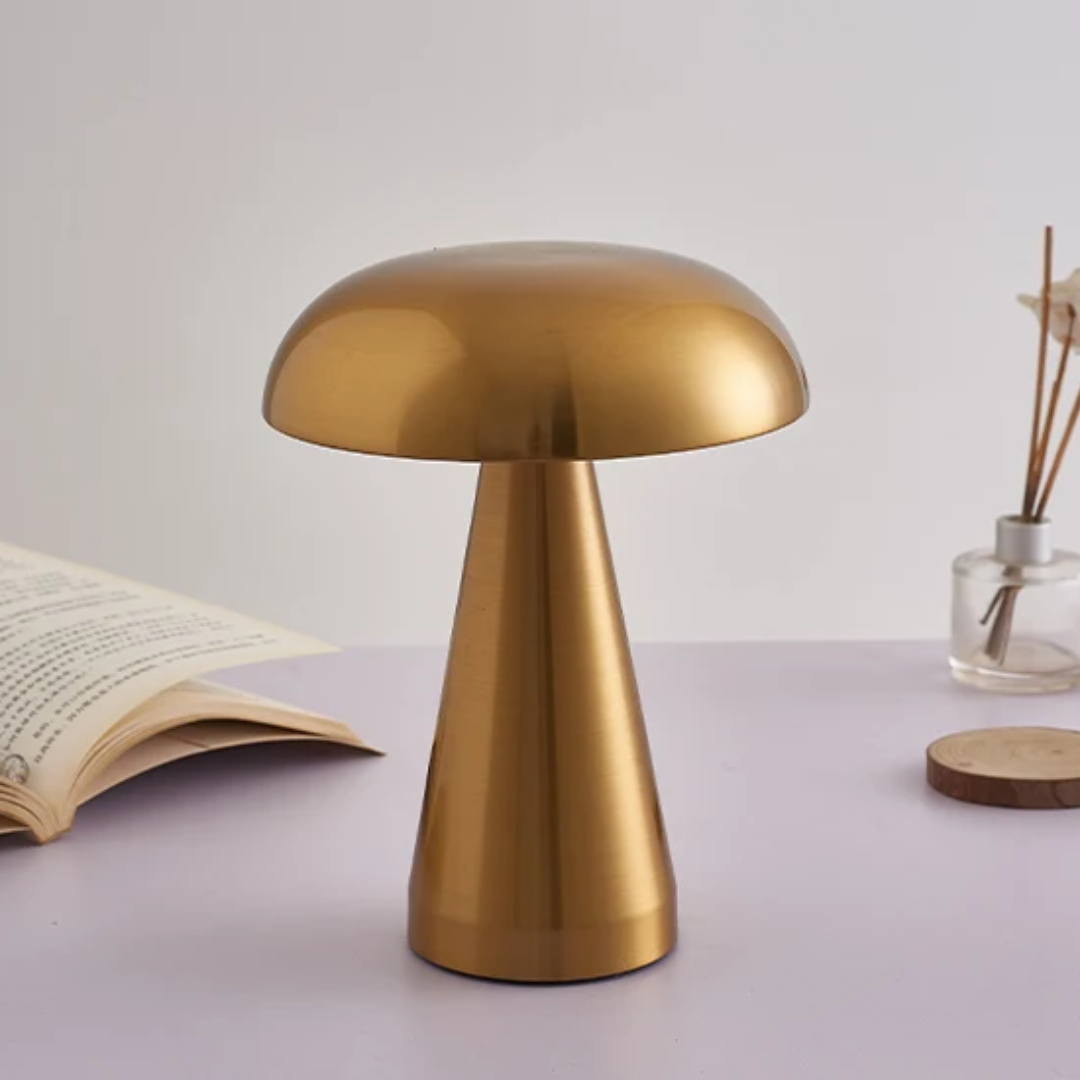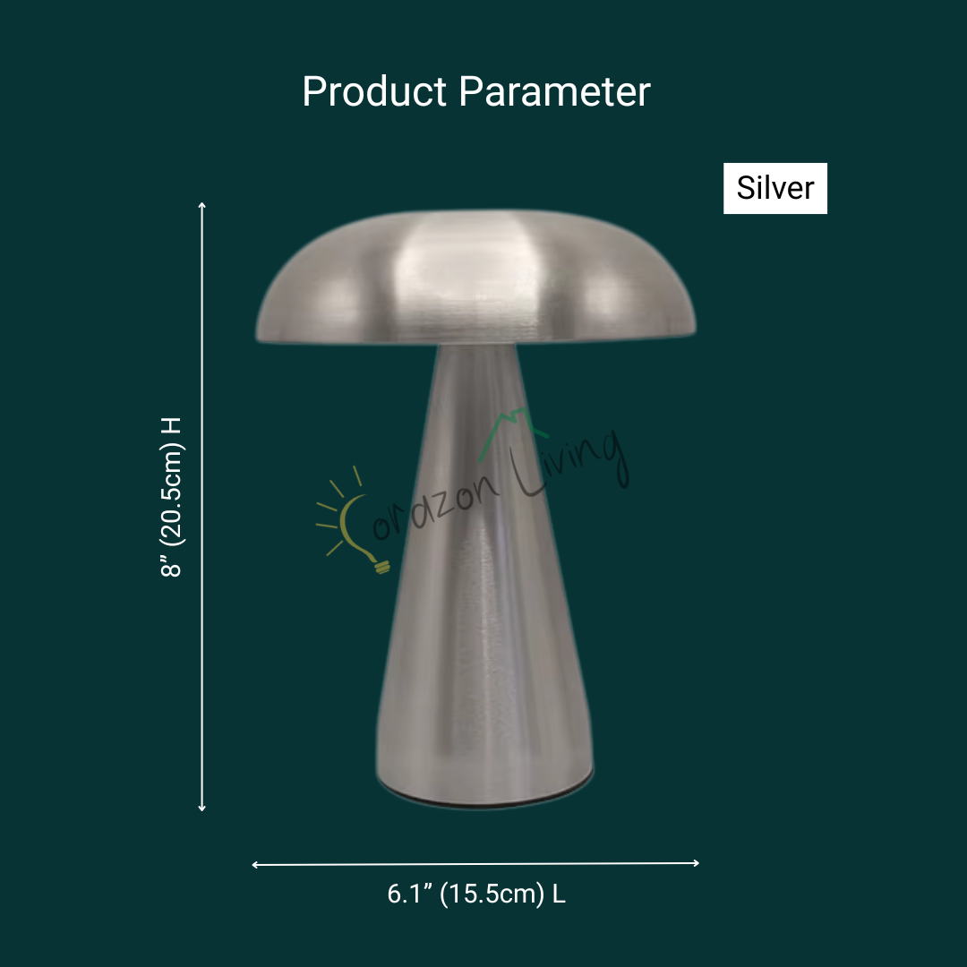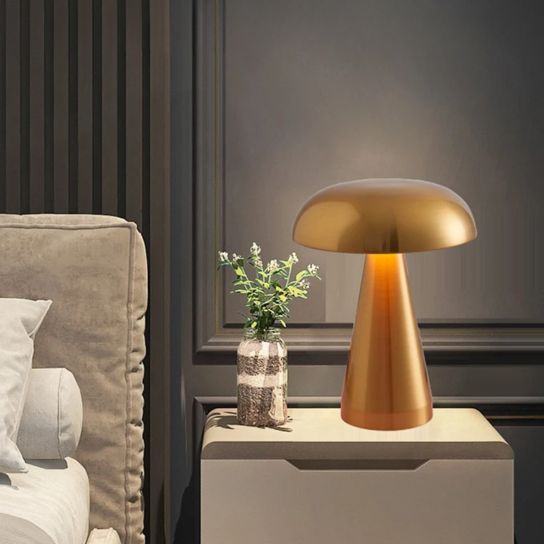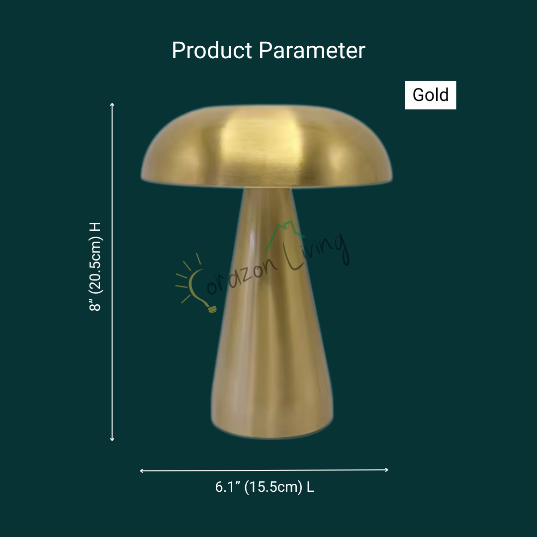 Crafted from durable iron in a matte gold or copper finish, Morrel’s mushroom-inspired silhouette adds a subtle statement without overwhelming your space. Dual LED bulbs create balanced, glare-free light—making it an ideal bedroom lamp for reading, relaxing, and everyday comfort. Recharge it easily with the magnetic USB cable or charging tray, and enjoy long-lasting battery use that keeps your nightstand clean and uncluttered.