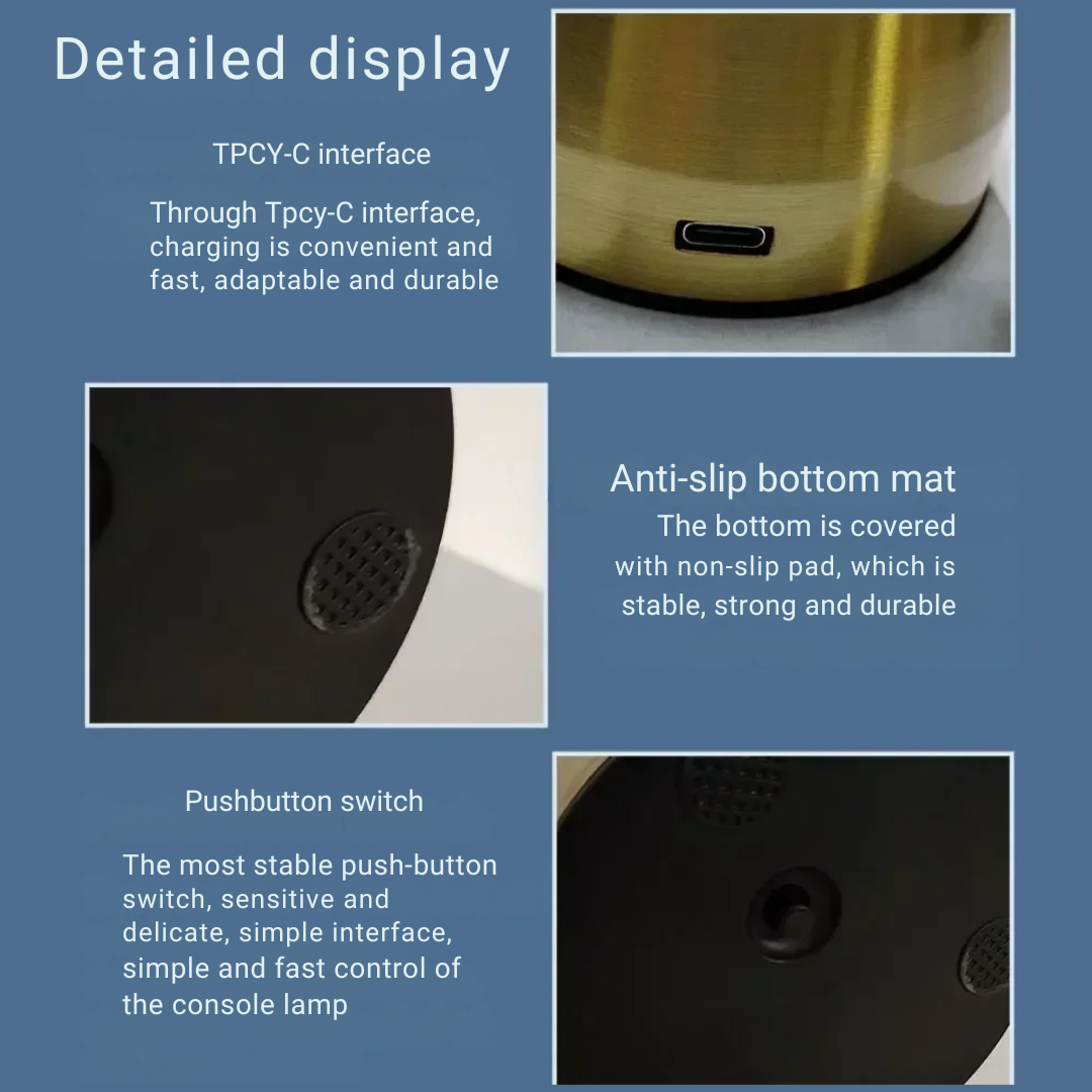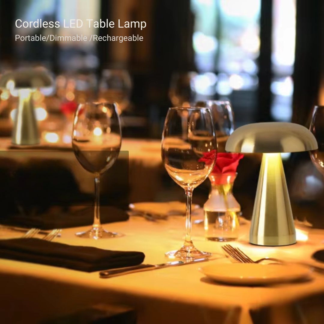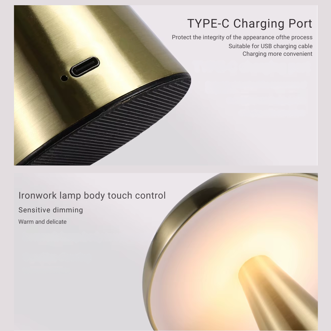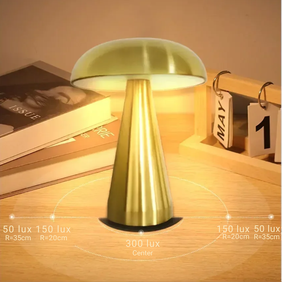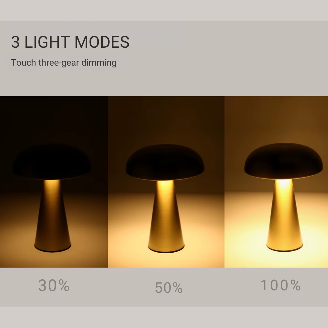 Crafted from durable iron in a matte gold or copper finish, Morrel’s mushroom-inspired silhouette adds a subtle statement without overwhelming your space. Dual LED bulbs create balanced, glare-free light—making it an ideal bedroom lamp for reading, relaxing, and everyday comfort. Recharge it easily with the magnetic USB cable or charging tray, and enjoy long-lasting battery use that keeps your nightstand clean and uncluttered.