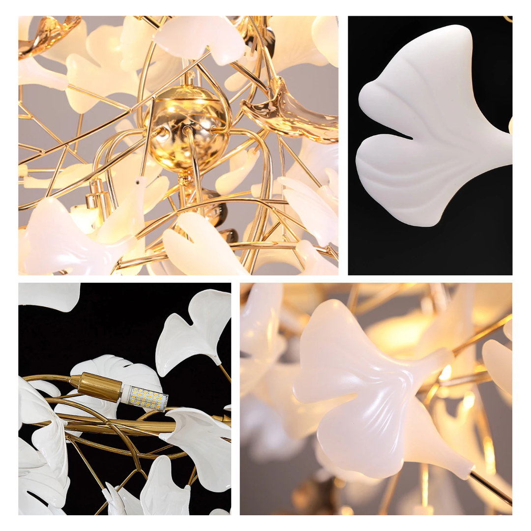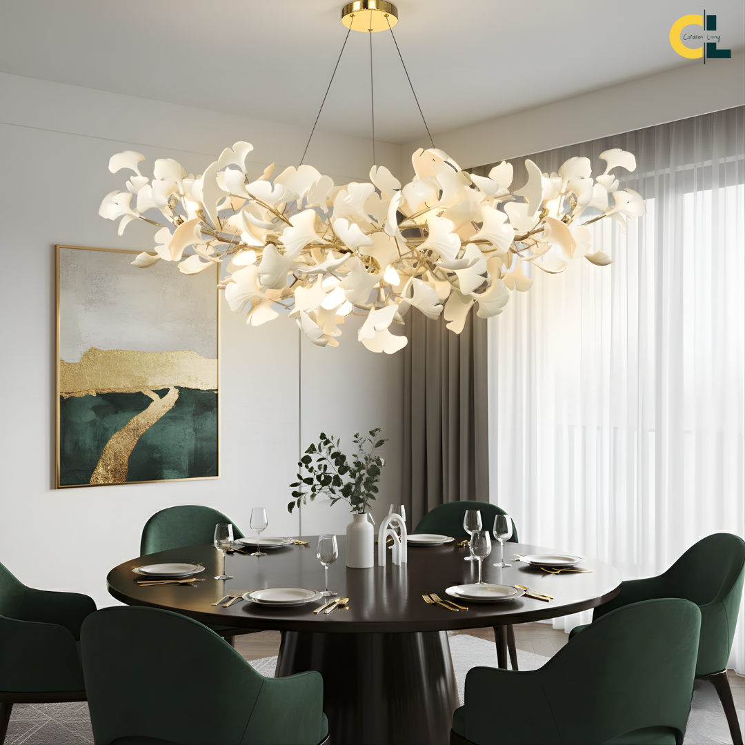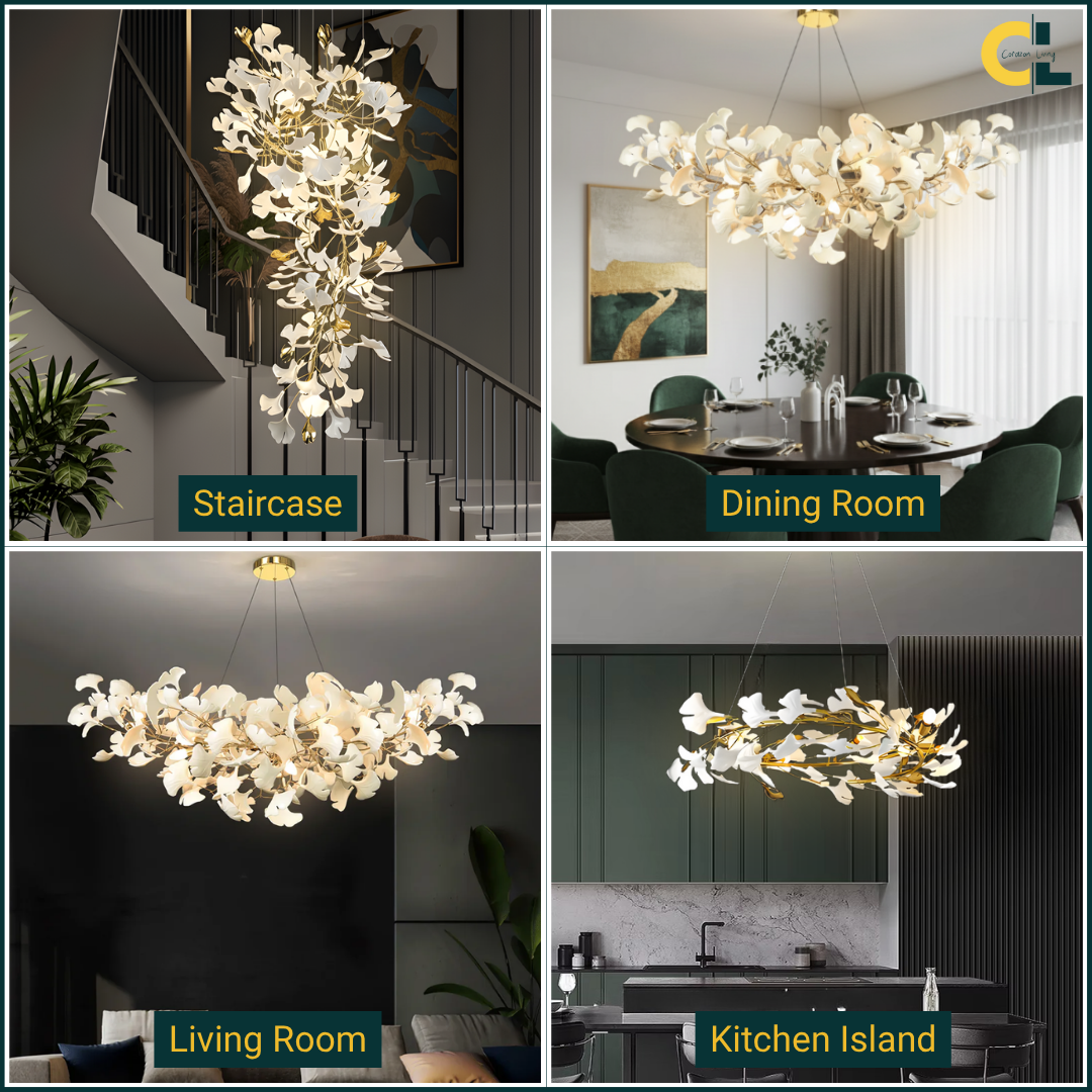 Bring refined elegance and artistic charm to your home with this luxurious Nayomi Nordic Ceramic Ginkgo Leaf Chandelier, a striking blend of nature-inspired design and modern craftsmanship. Featuring an elongated ceramic ginkgo leaves, this statement chandelier adds a sculptural focal point to any interior.